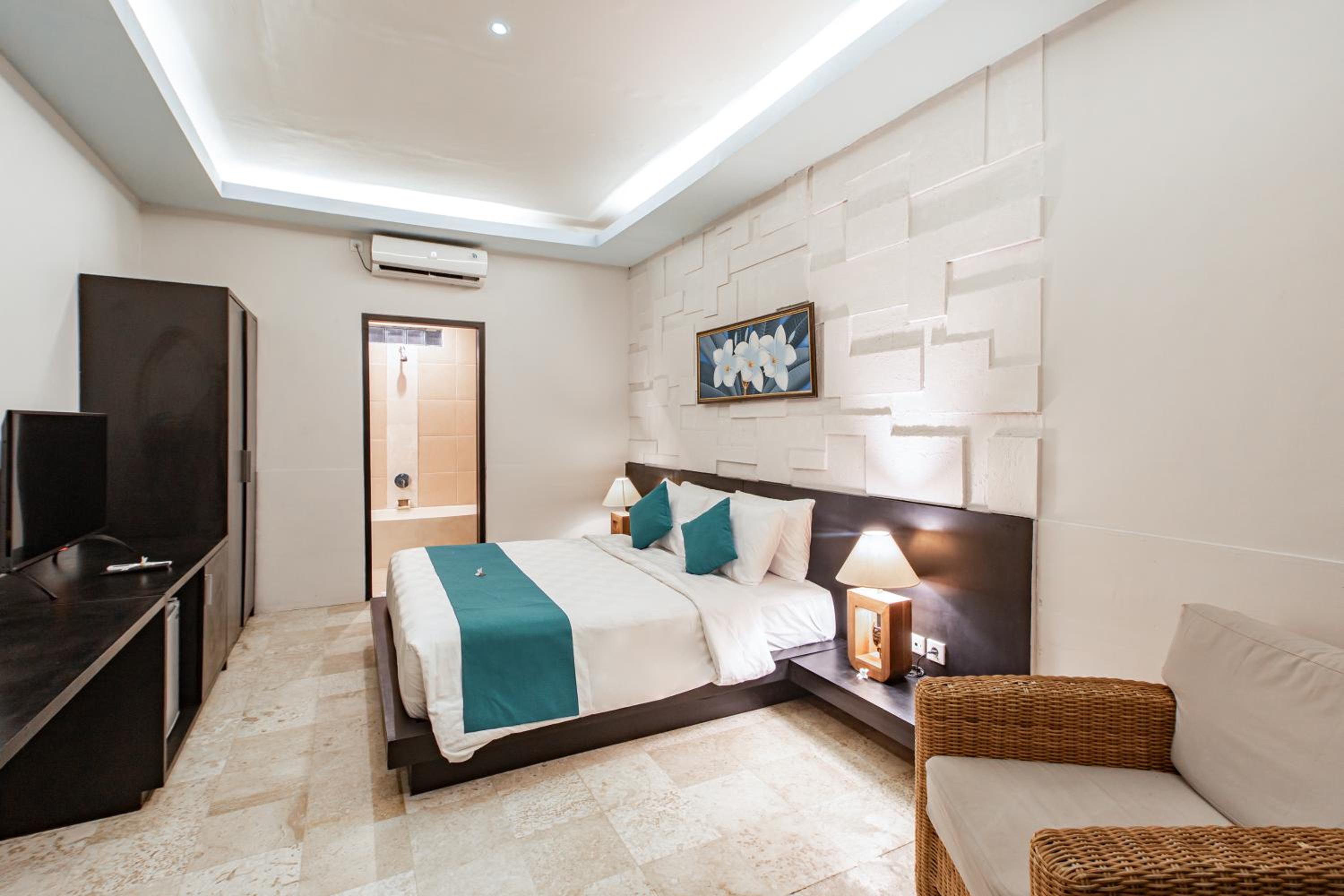 FRIENDLY employee. Each room looking to the CORTYARD with pool. GAZEBO in the garden is so nice to rest and feel the nature. Comfortable BED. Locaion is adequate to buy or eat food, shops and cafes around, also a Temple :)