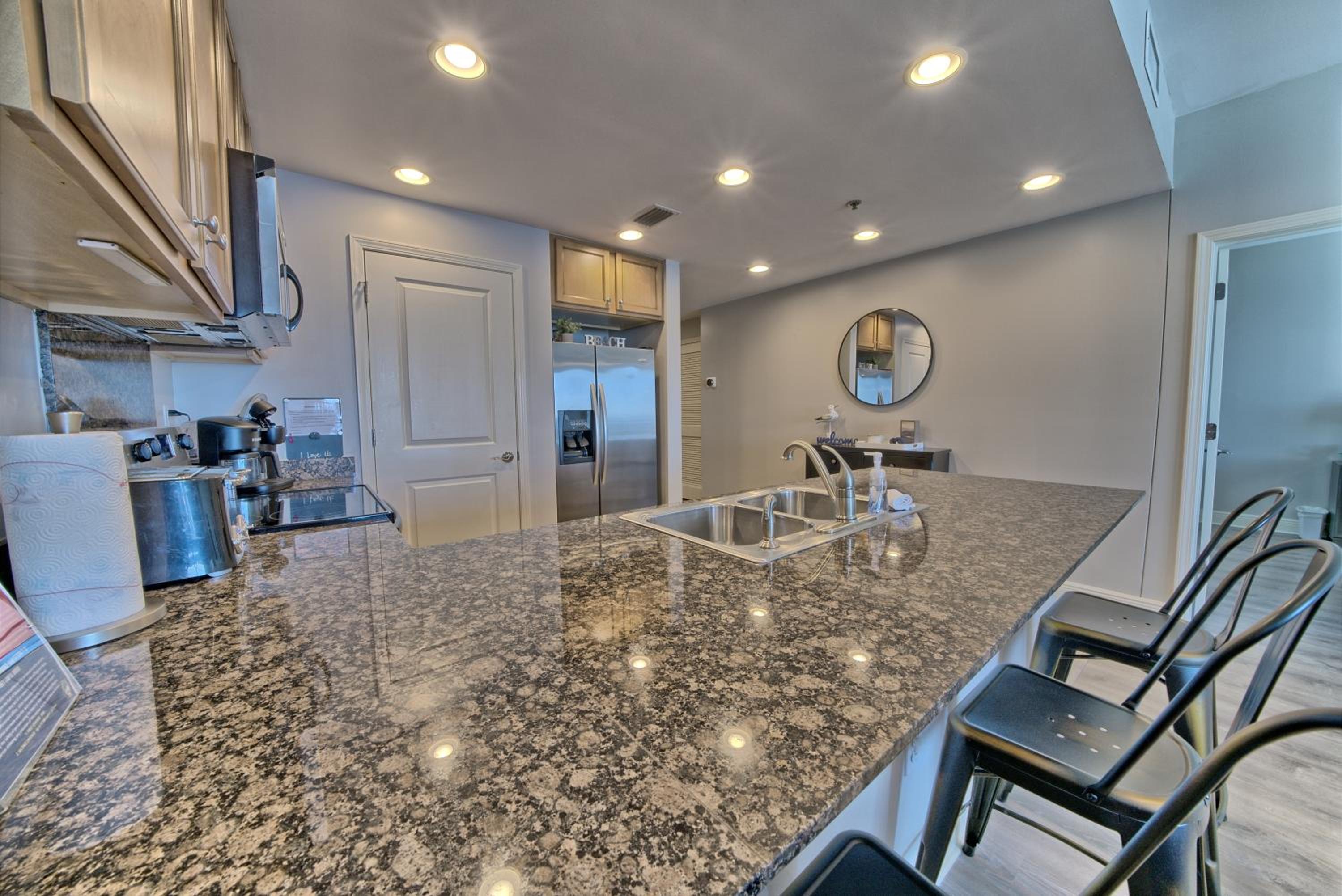The condo is perfect! The view was amazing. We all had plenty of space. There were tons of extra special touches. It really is the best place we have ever stayed. The walk to the beach is short. The elevators are fast. Our host was wonderful. Just perfect!!