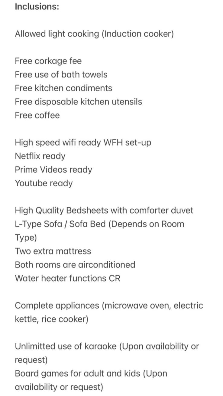 A damage deposit of PHP 1000 is required on arrival. This will be collected as a cash payment. You should be reimbursed on check-out. Your deposit will be refunded in full in cash, subject to an inspection of the property.
