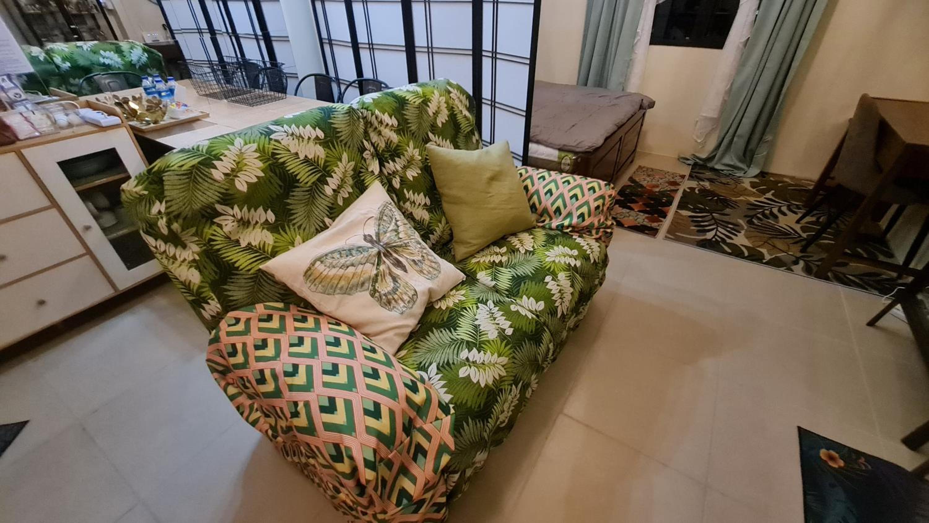 We appreciate the room for its price but there are more to improve like there are things that are just there as extra. The utensils/mugs/plates are quite old and no big glass or mug. The beds quality is not that good and the couch. You can re-design the area with less things or minimalist color and look. The kitchen/range hood is not safe for tall people like my partner, he bumped his head into it and did not notice since he was trying to charge his fone. I think it is safe if you could lower it or place something rubber at the corner part coz it is a bit sharp. The towels and blanket are too old as well, we even bought new one. The tiles in the shower area is a bit slippery, you can place a mat to avoid accident. The price is cheap considering the location of the unit but people might appreciate if you could take my comments and suggestions for improvement. The host Ms. Gina is so warmed and accommodating and helpful. Please take this feedback as a positive criticism so you can improve your place and raise the value of it. I felt like there are termites as well since it is a covered place and the curtains felt and other cloth covers might need to rewash it again or new curtains maybe. But again, the price is great. Thank you and Godbless po ☺️ thanks for the free coffee!!!