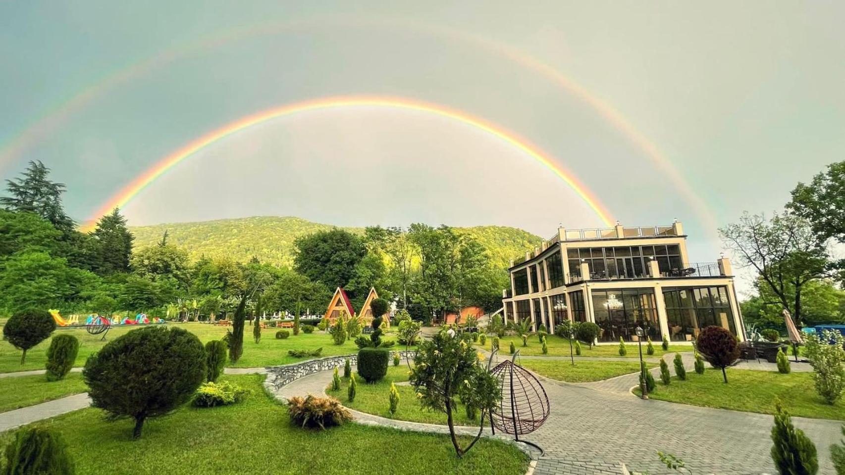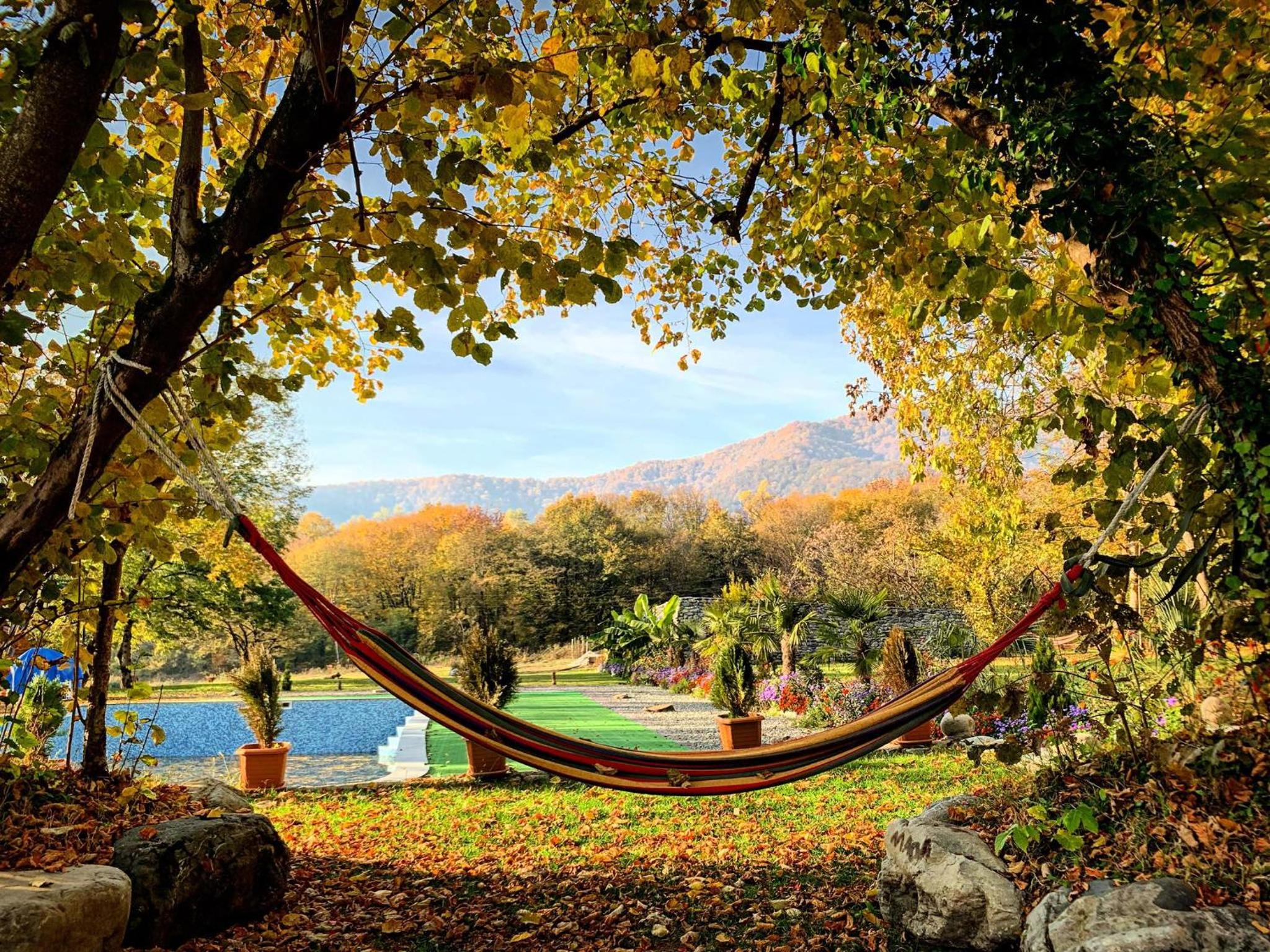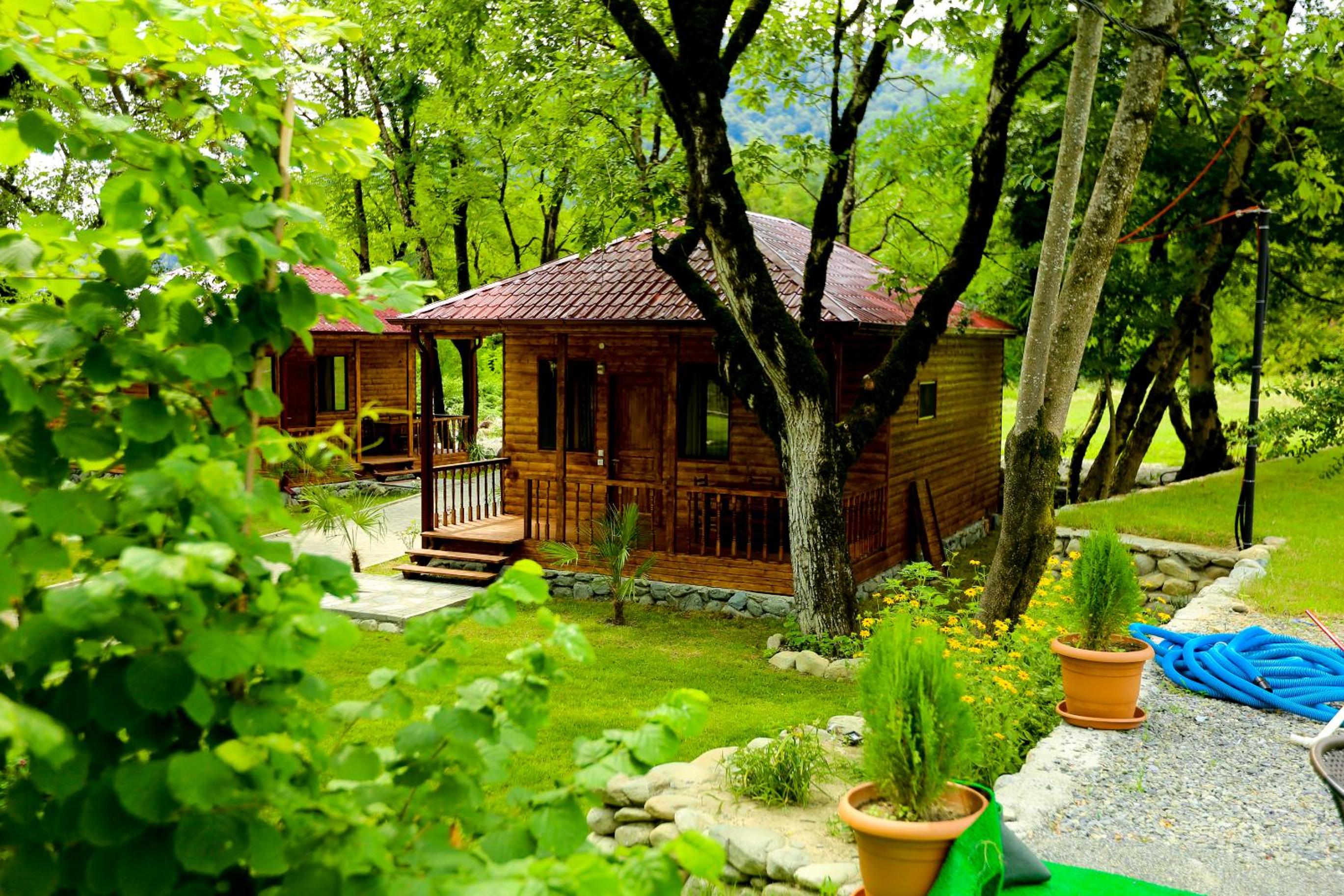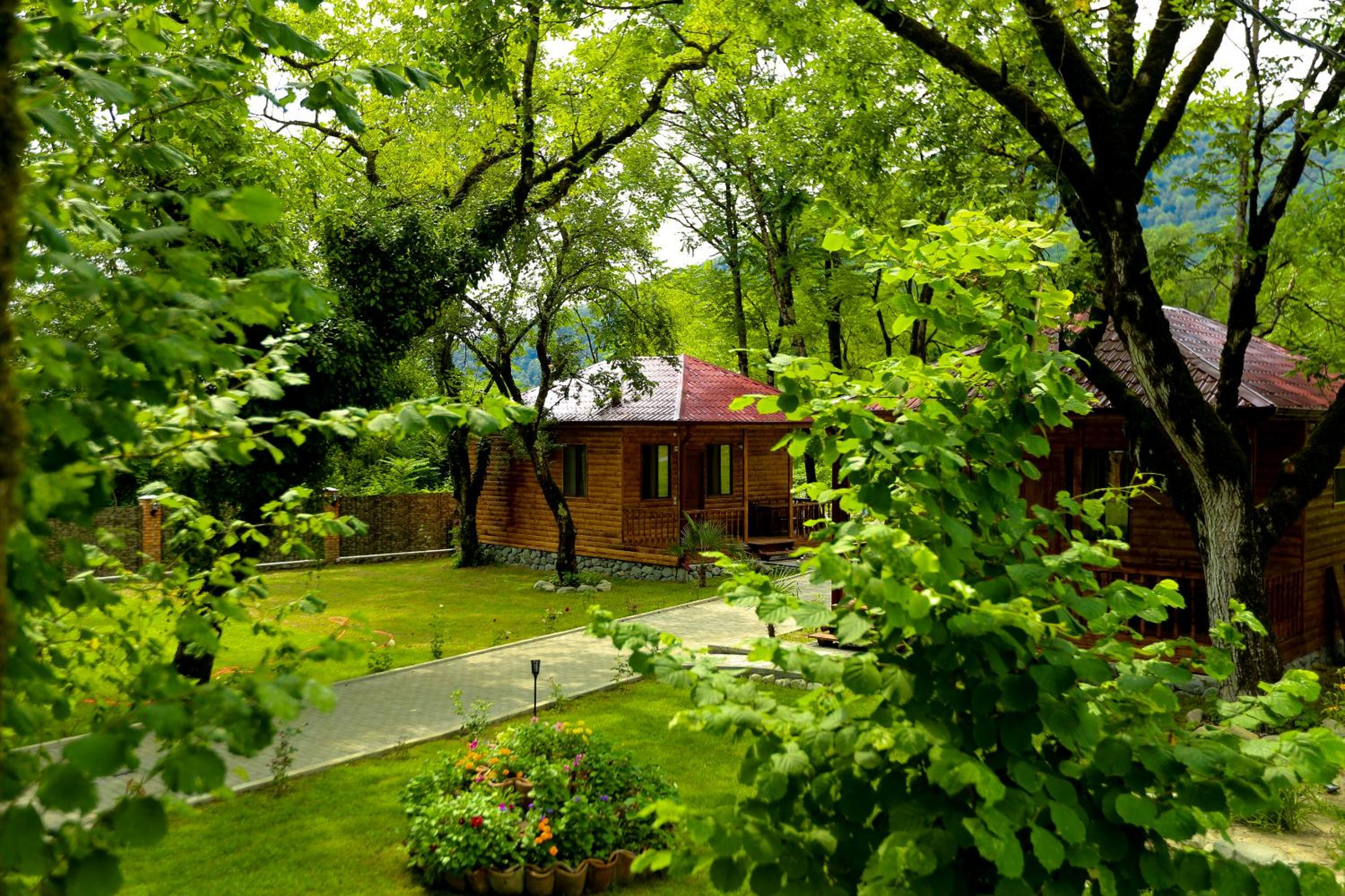 Lovely location surrounded by gardens, 2 large swimming pools, hiking trail starts in the nearby Lagodekhi park.