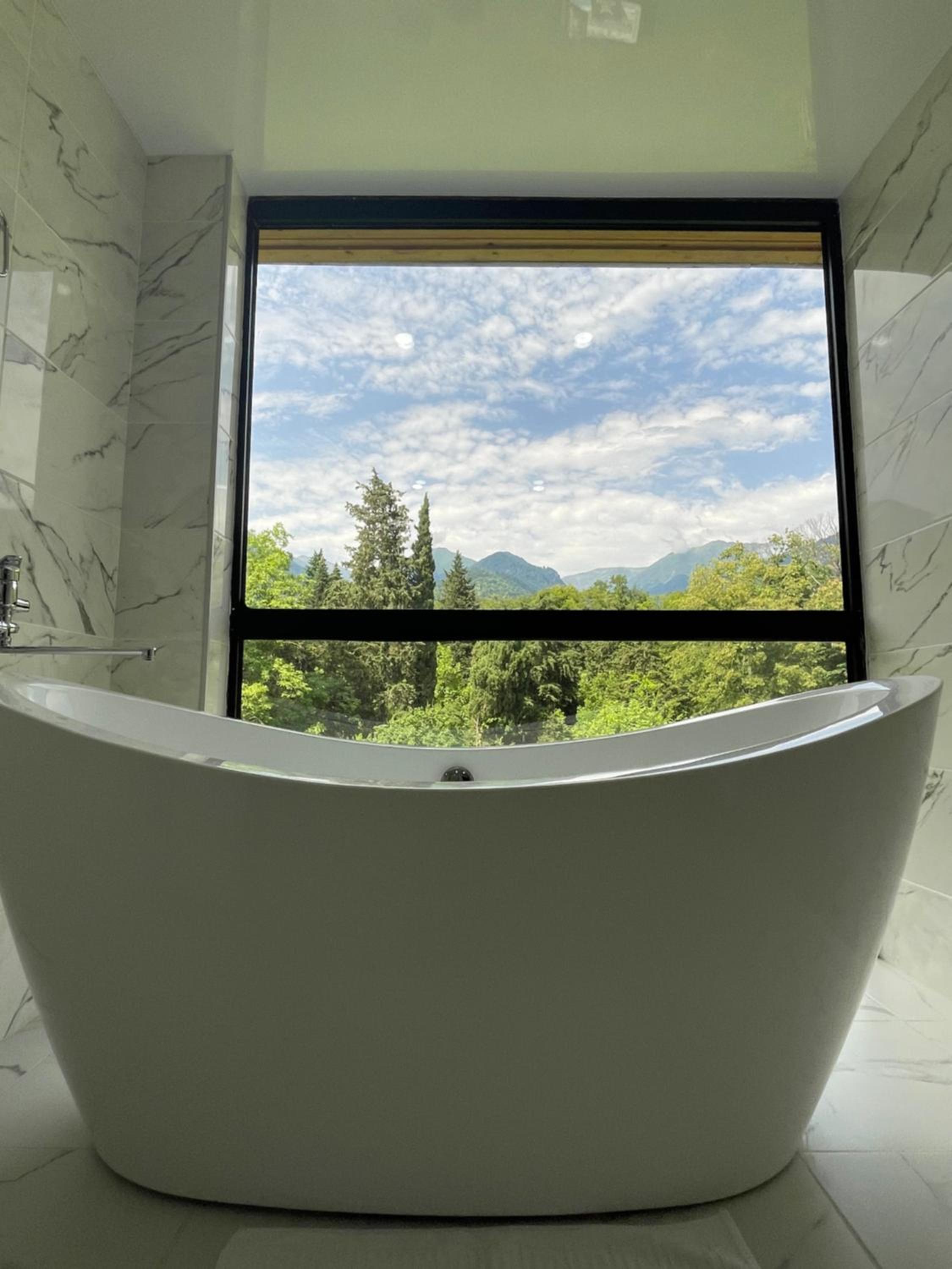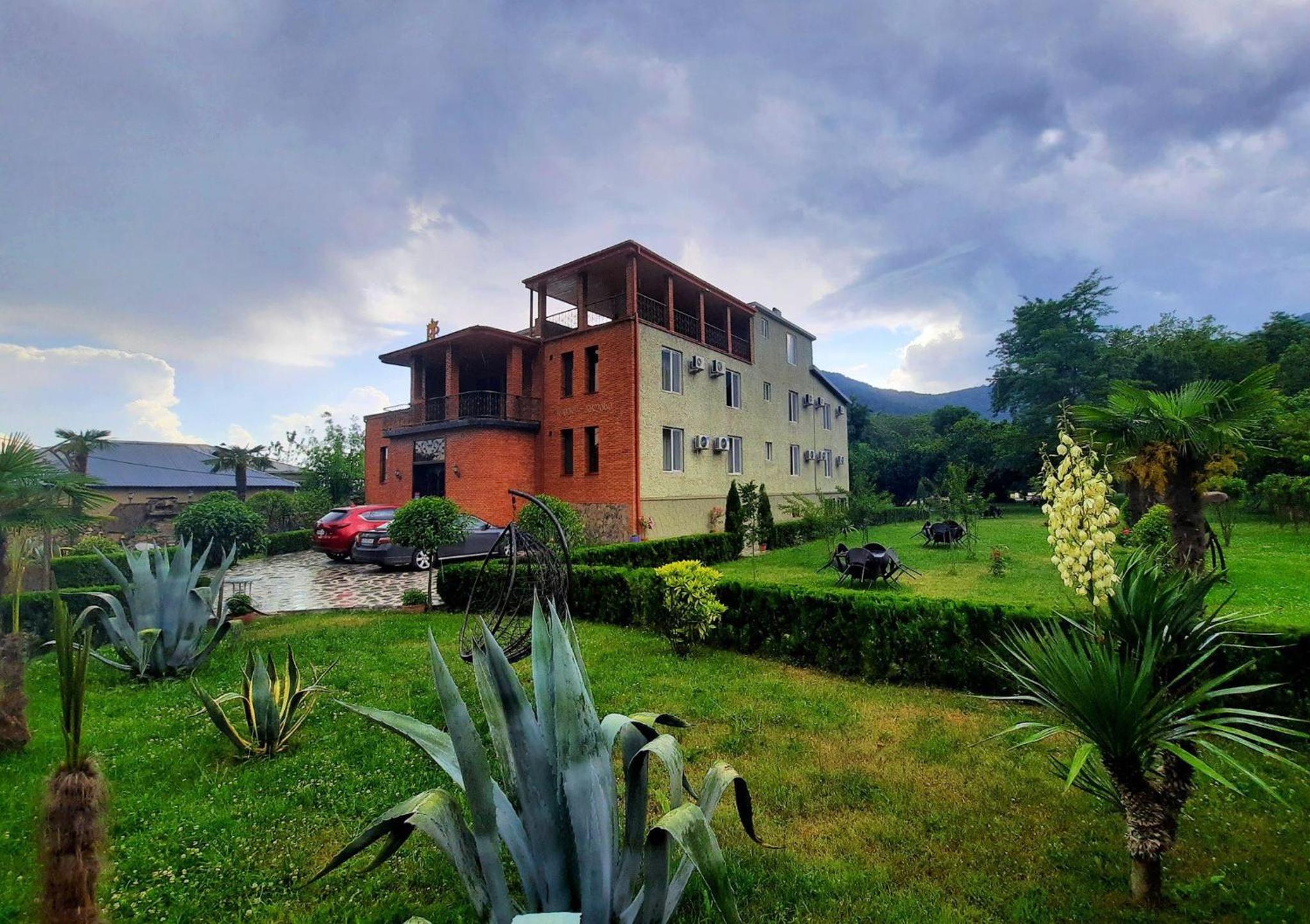 The hotel offers a large, beautifully maintained area with two spacious swimming pools and breathtaking mountain views. There are 22 cottages as well as rooms in the main building. The breakfast is hearty and satisfying, and the entrance to Lagodekhi National Park is just a short walk away, which makes it a great base for nature lovers.