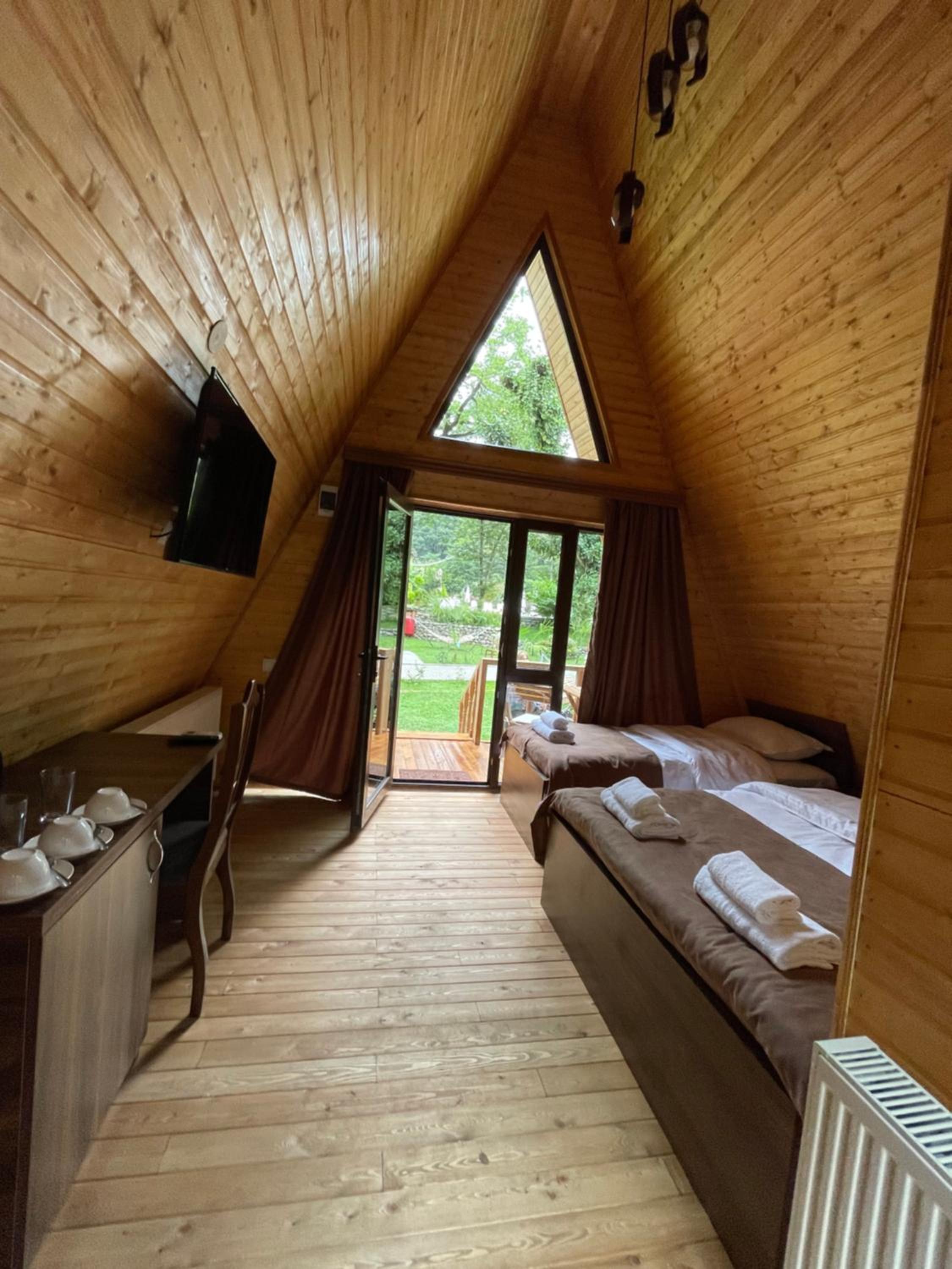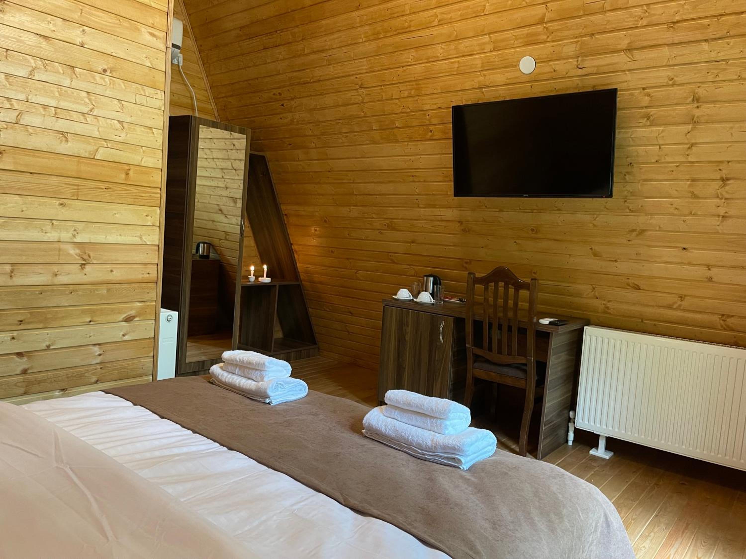 We arrived late, and that’s the only reason we stayed. We had booked an A-frame cabin, but on the way it already became clear that a cozy romantic evening wouldn’t be possible: loud music was playing, and there were lots of people everywhere. Our cabin turned out to be the closest one to the building where the wedding was taking place. I asked how long it would last, and was told—uncertainly—that it would go until midnight. I asked to be relocated, and was offered a room in the main building. It was on the top floor, unbearably stuffy, with tiny windows, a broken sink, a broken shower door, and poor water pressure.