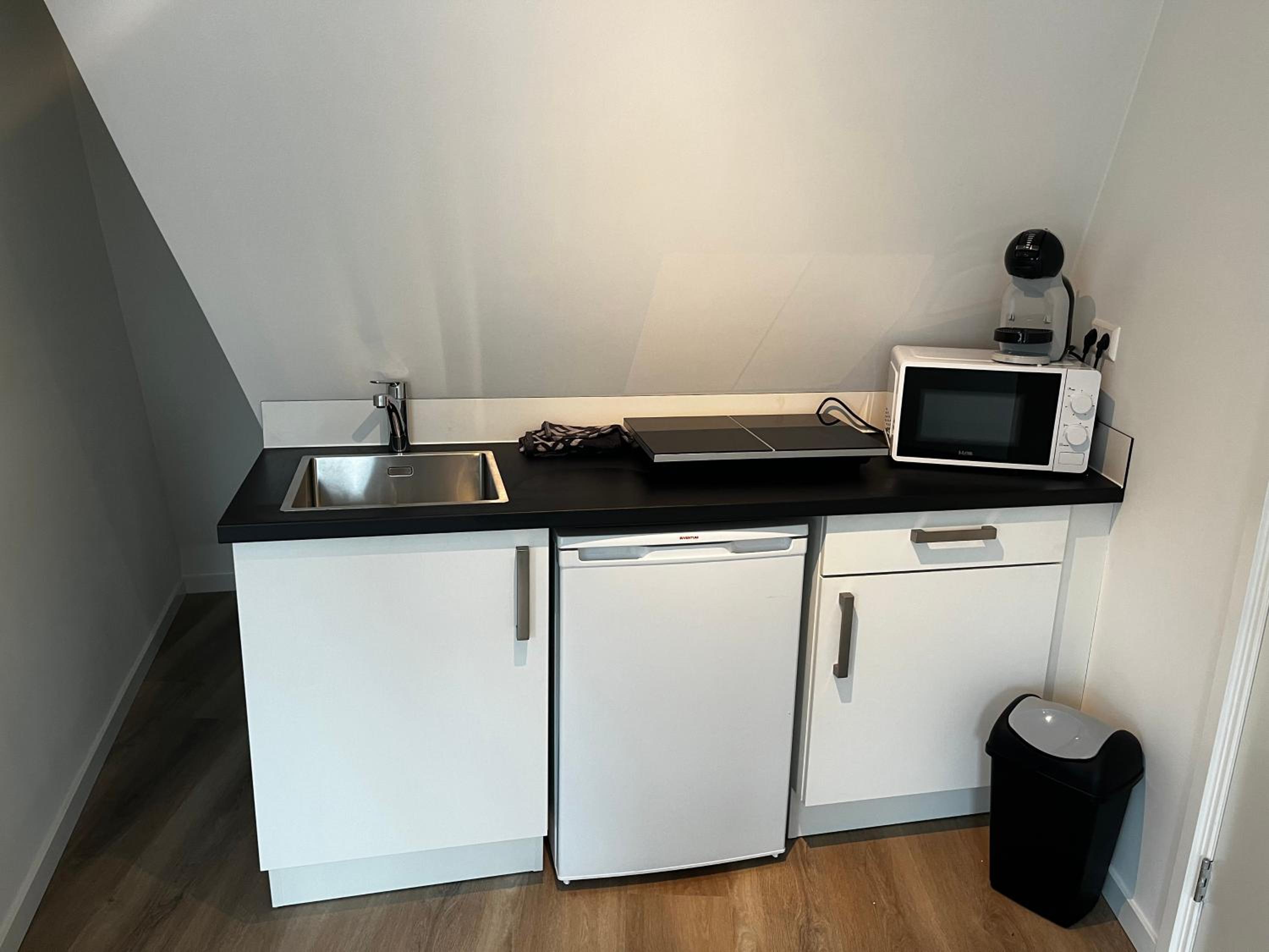 Er was een kookplaat, maar niet veel kookgerei. Bij het koken moest een raam opengezet worden om activatie van het brandalarm te vermijden. In de wintermaanden is dat niet heel aangenaam, we hebben dus niet gekookt, hoewel de keuken één van de redenen was om voor deze accomodatie te kiezen. Desondanks zouden we een volgende keer niet twijfelen om hier terug te komen!
