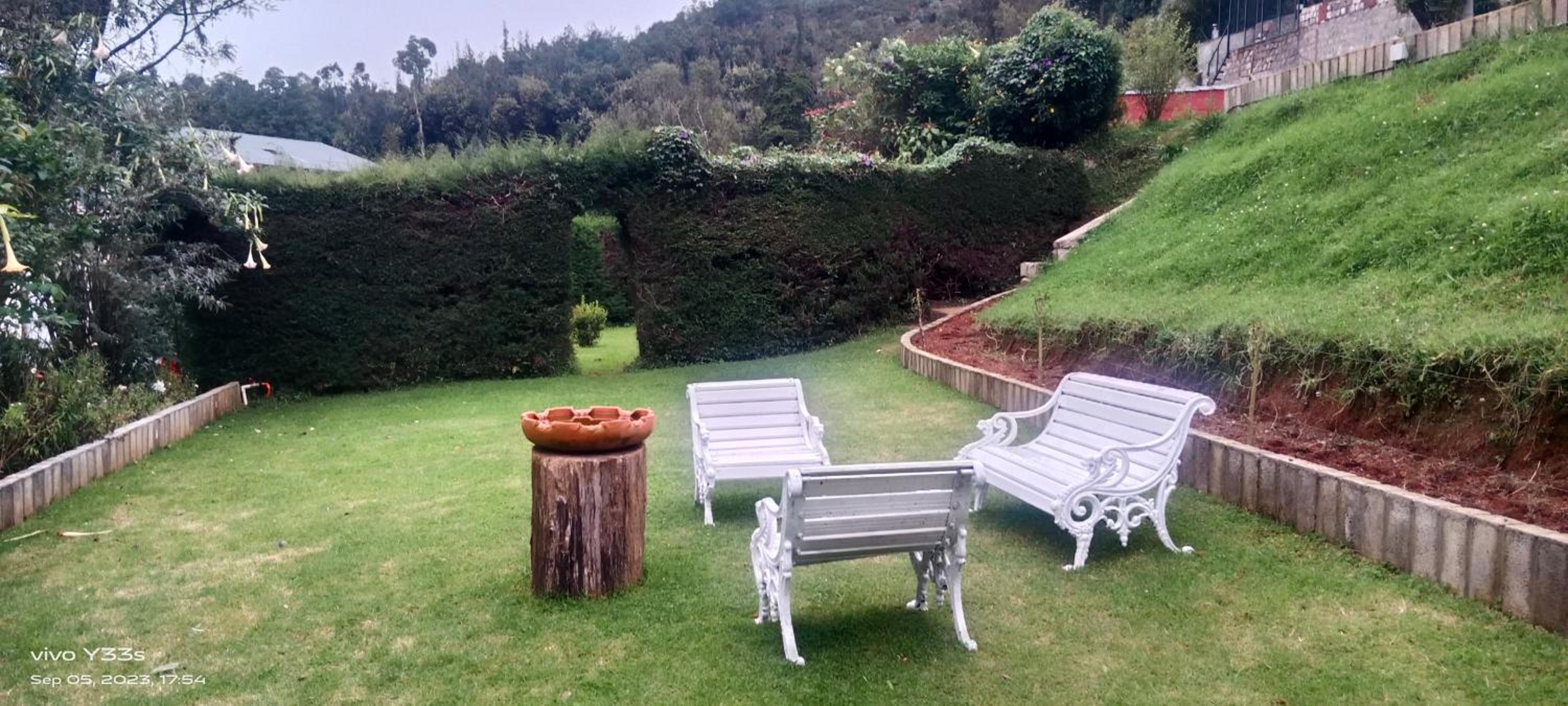 We already booked for 2 nights(fir) but then managed to book a night in spathodia as we decided to arrive a day earlier. The accommodation is fantastic. Spathodia is ground floor and you have a lovely garden. The location was perfect for us. Out of the city noise but you can walk into ooty (footpath just up hill to right, just a few tricky steps at the start, or walk on the road, photo taken from the footpath) it is easy to get a tuktuk back. Also the hotel will arrange transport. The views are stunning and there is a lovely garden. The staff are very helpful. The restaurant serves good food but there is also a lovely restaurant opposite with a beautiful old bar.. You can hike near monarch at the top of the hill