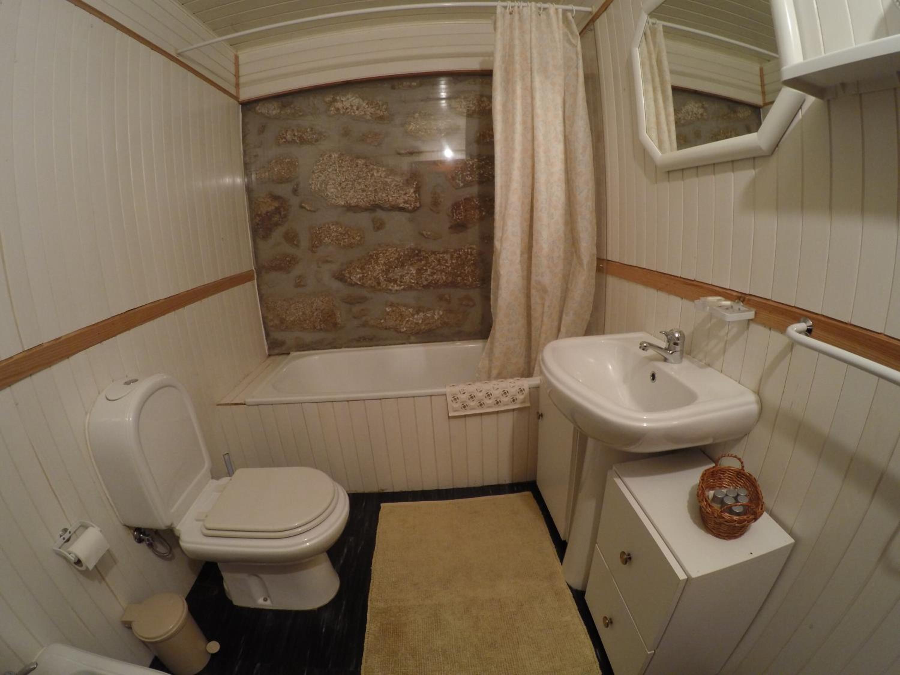 Da acústica, pelas paredes serem de madeira, dá para ouvir tudo de um quarto para o outro.