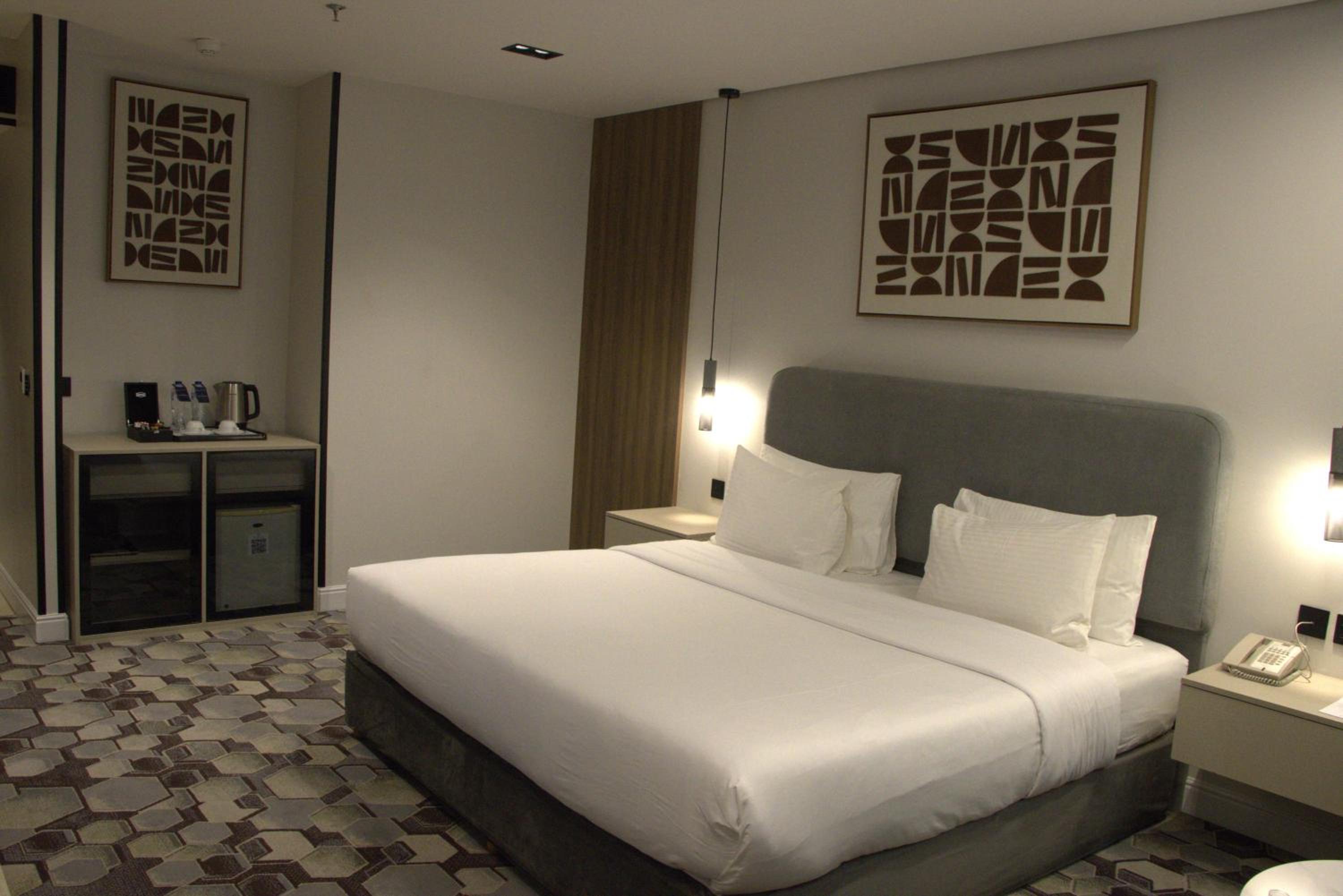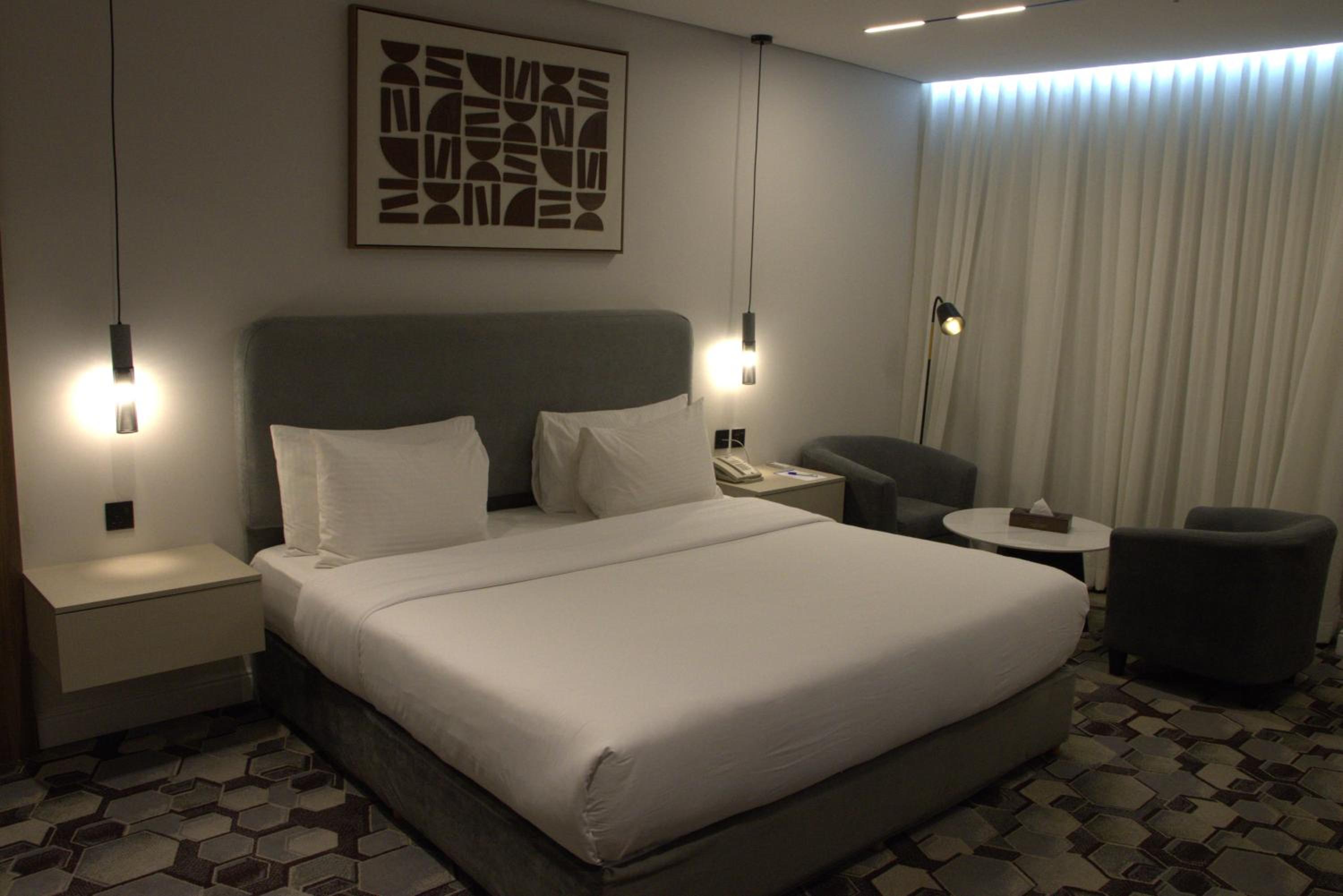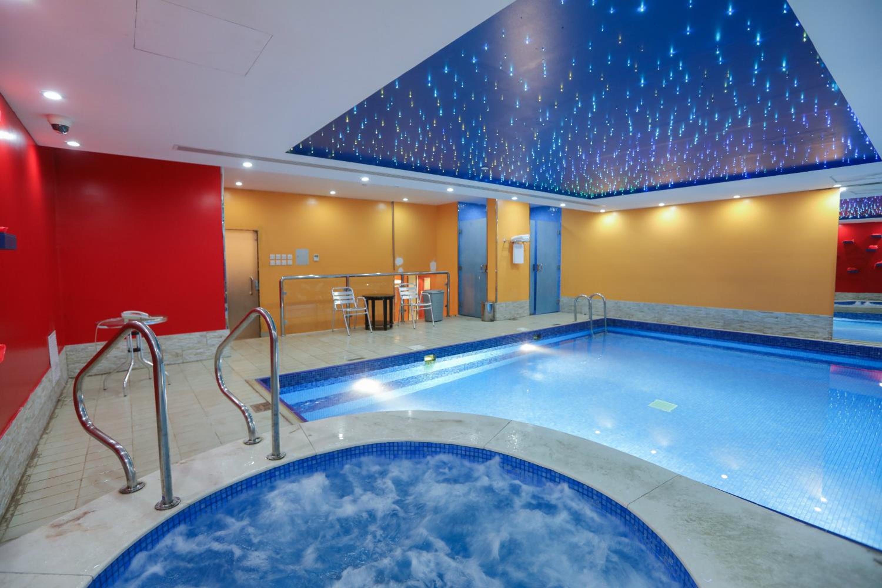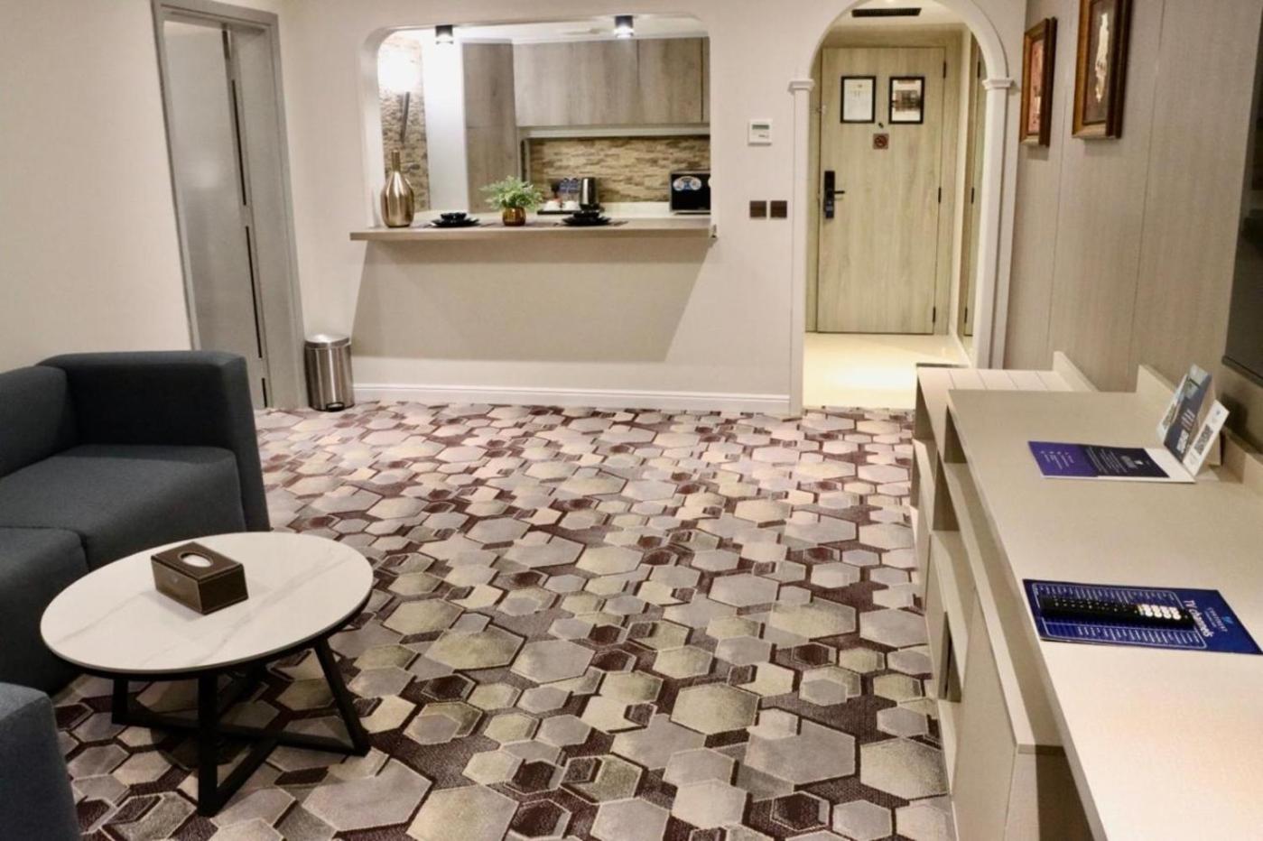 Lovely hotel. Would recommend if you are in Riyadh. Front desk service is really friendly and helpful. Thank you Mohammed for your help since I arrived! The breakfast is great- there is an egg station and lots of choice in the buffet area (falafels, salad, fruit, meat etc). There is a good choice of pastries too and juice, coffee tea etc. Rooms are kept clean and tidy and room comes with toiletries, towels, safe, iron, complimentary water everyday, kettle etc. The lounge is very peaceful and good to have coffee. The location is good and very easy to get uber from. There is a good shisha lounge next door too separate to the hotel). Pool is small but clean and there is a jacuzzi. There are separate hours for women which is helpful. Same goes for the gym which is very well equipped. I’d highly recommend this hotel.