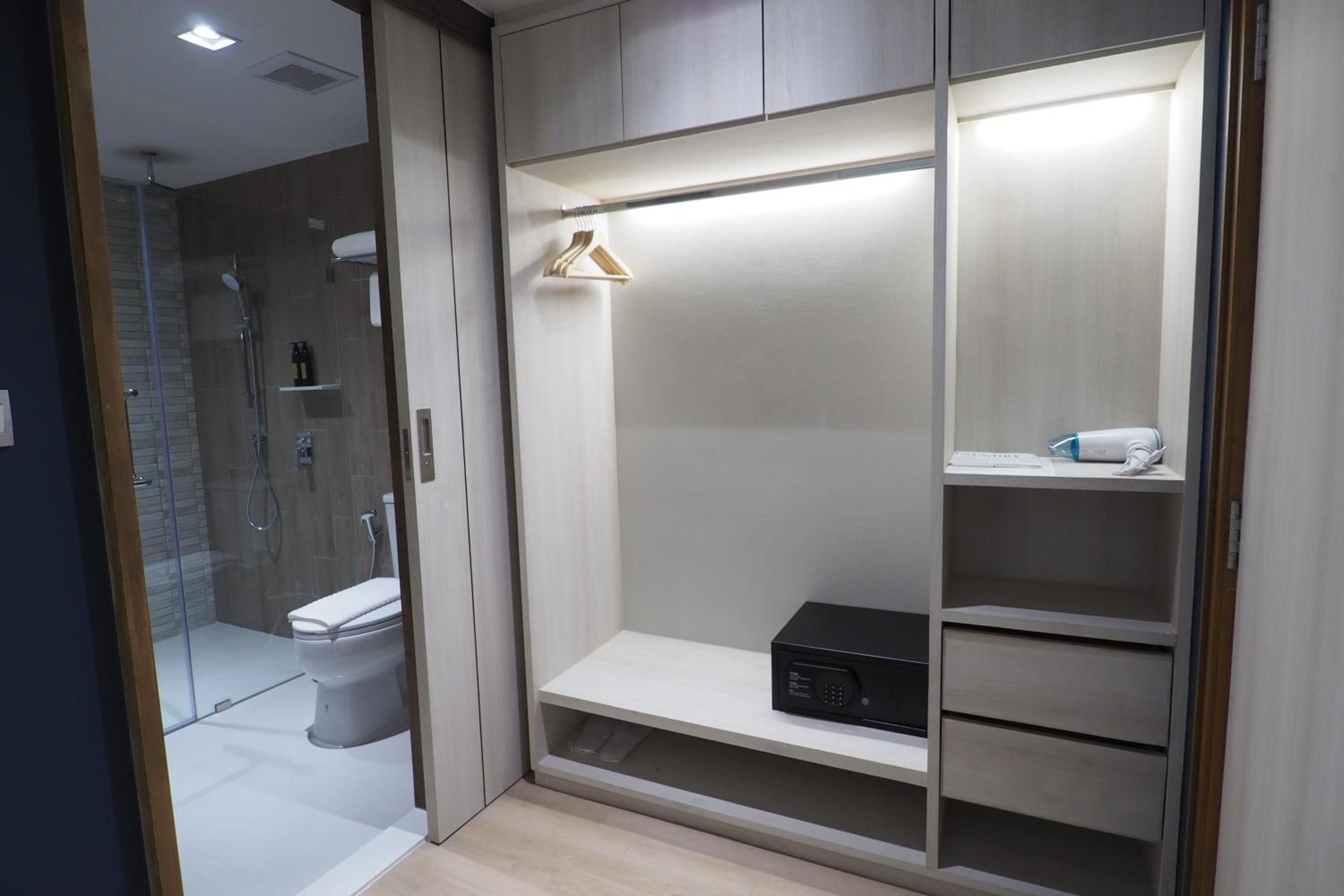 all though its central, the nearest BTS station (Asok) is still around 15 min walk. I had a room with a balcony but for "safety reasons" its locked and the reception will not unlock it. Swimming pool closes at 9pm which is unfortunately as the temperatures are around that time finally pleasant to sit outside. My room had zero closets.