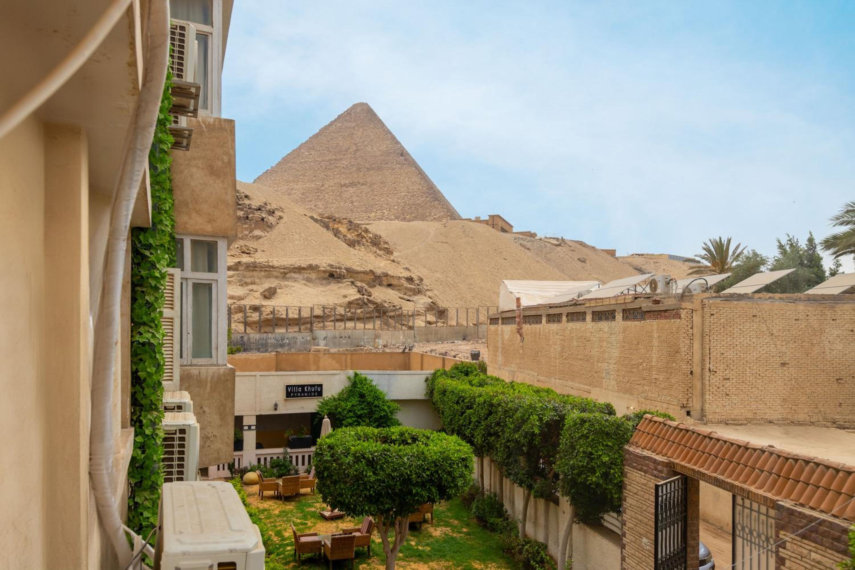 El nombre del hotel no es ese, se llama Villa Khufu. Hay otro hotel llamado Gran Pyramides view. Todo lleva a confusión y debería ser retirado de booking por irregular