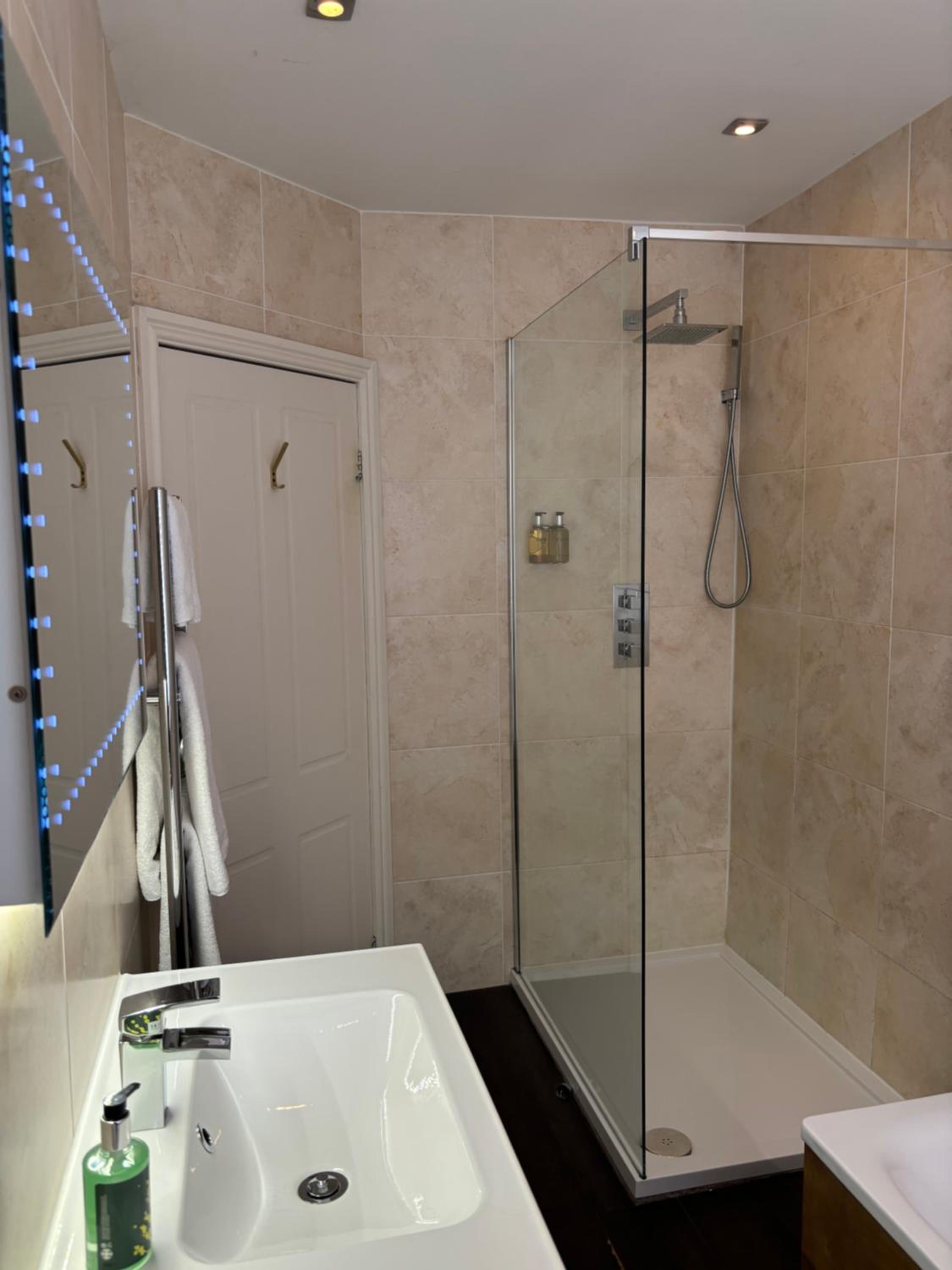 Terrible shower, more of a trickle and luke warm.