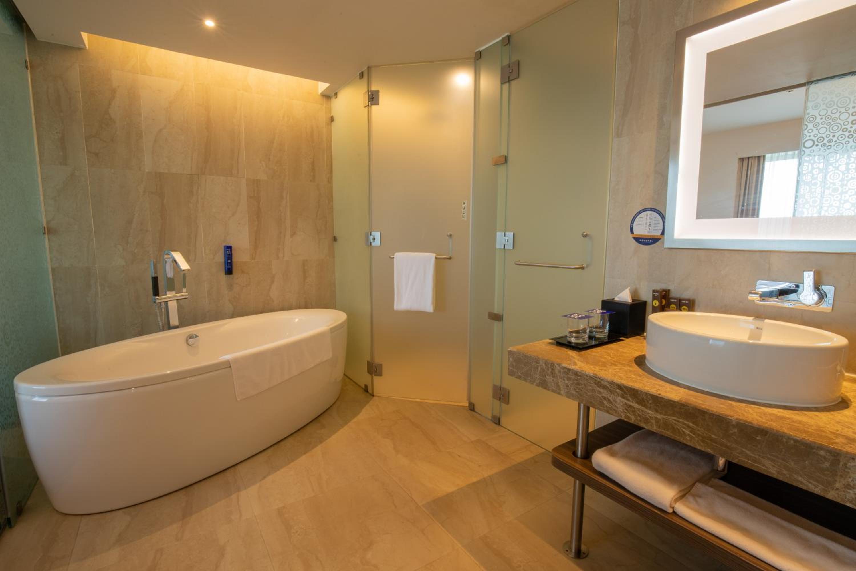 Featuring an open-air swimming pool and a fitness centre, Novotel Pune Nagar Road offers a luxurious stay just minutes away from Pune Airport and Phoenix Market City. The air-conditioned rooms are equipped with modern amenities including a flat-screen TV, minibar, and tea/coffee maker. Private bathrooms come with complimentary toiletries and slippers.
