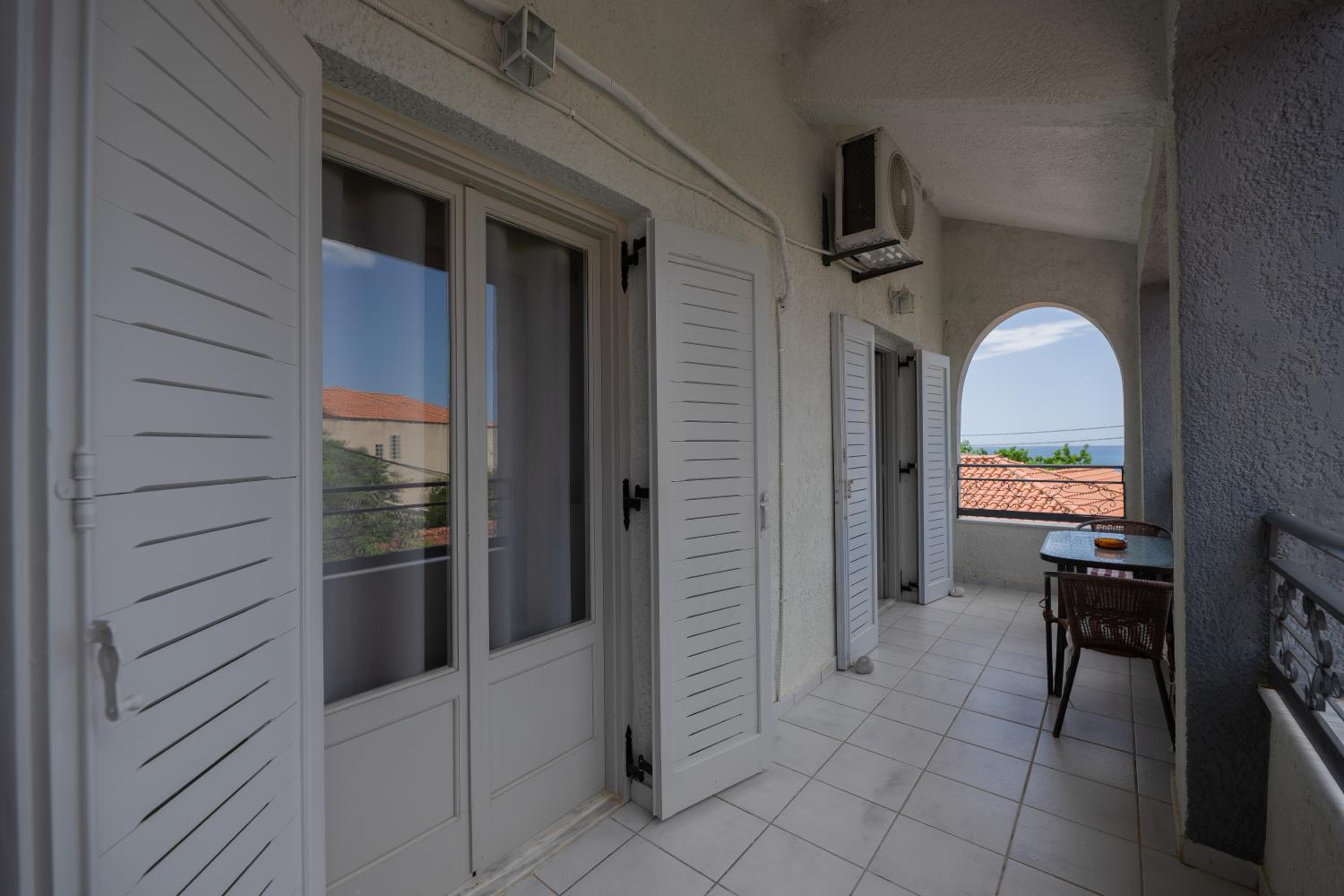 Experience the convenience of air-conditioned units with modern facilities, a fully equipped kitchen, and a private patio. Enjoy the breathtaking sea and mountain views while staying connected with free WiFi. Indulge in comfort with a flat-screen TV, safety deposit box, and cozy seating area.
