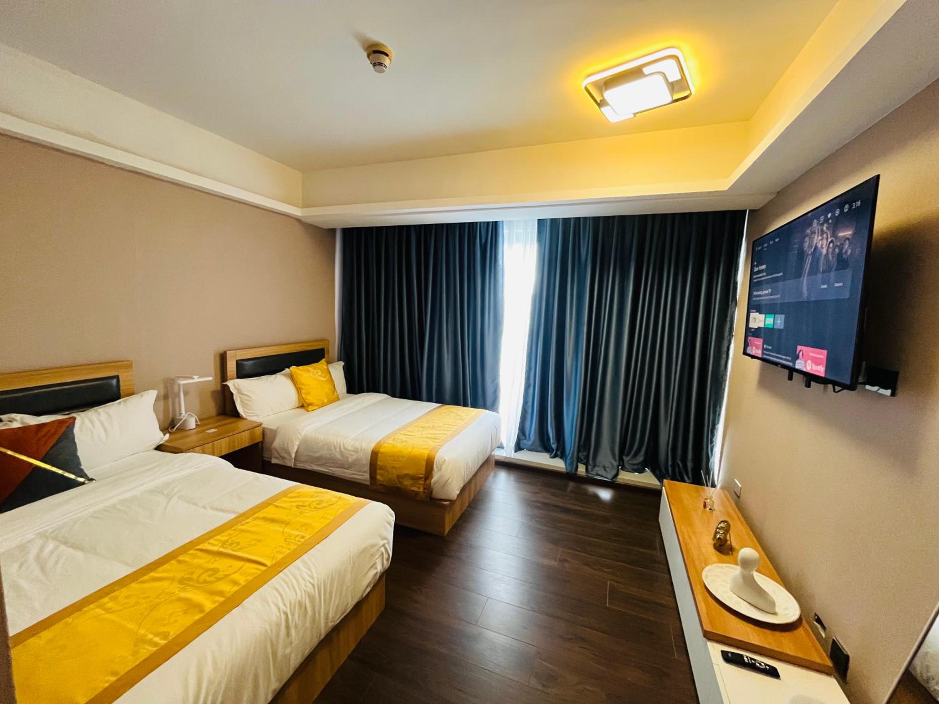 Indulge in spacious rooms with modern amenities, some featuring stunning city views. Selected rooms even come with fully equipped kitchens, perfect for extended stays.