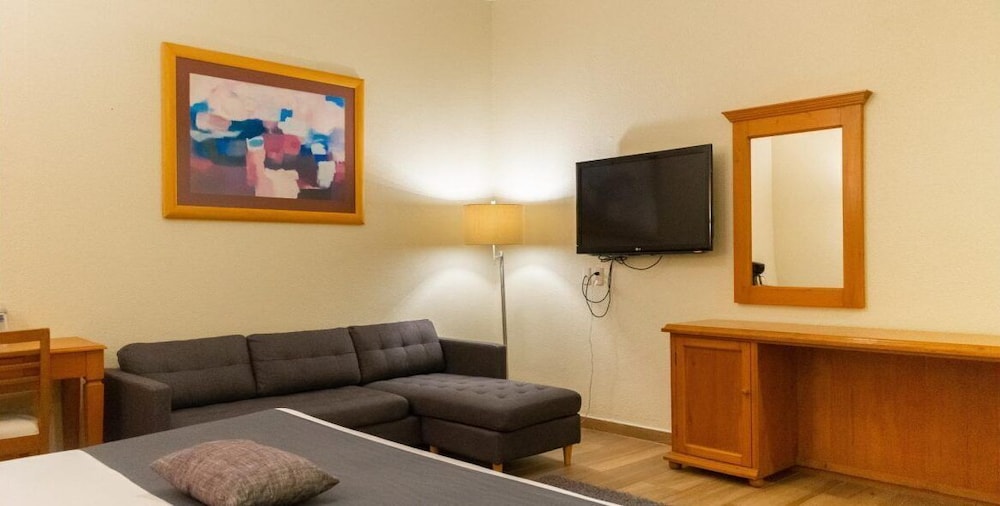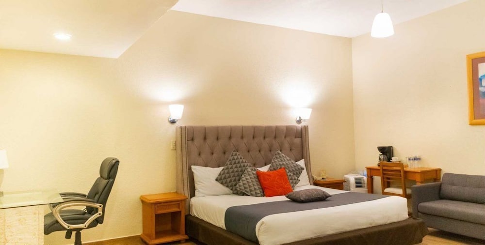 Quartos espacosos e cama maravilhosa. Chuveiro espetacular. Muito confortavel. O hotel tem piscina e esta bem.localizado com um restaurante Vips e ao lado do Oxxo.