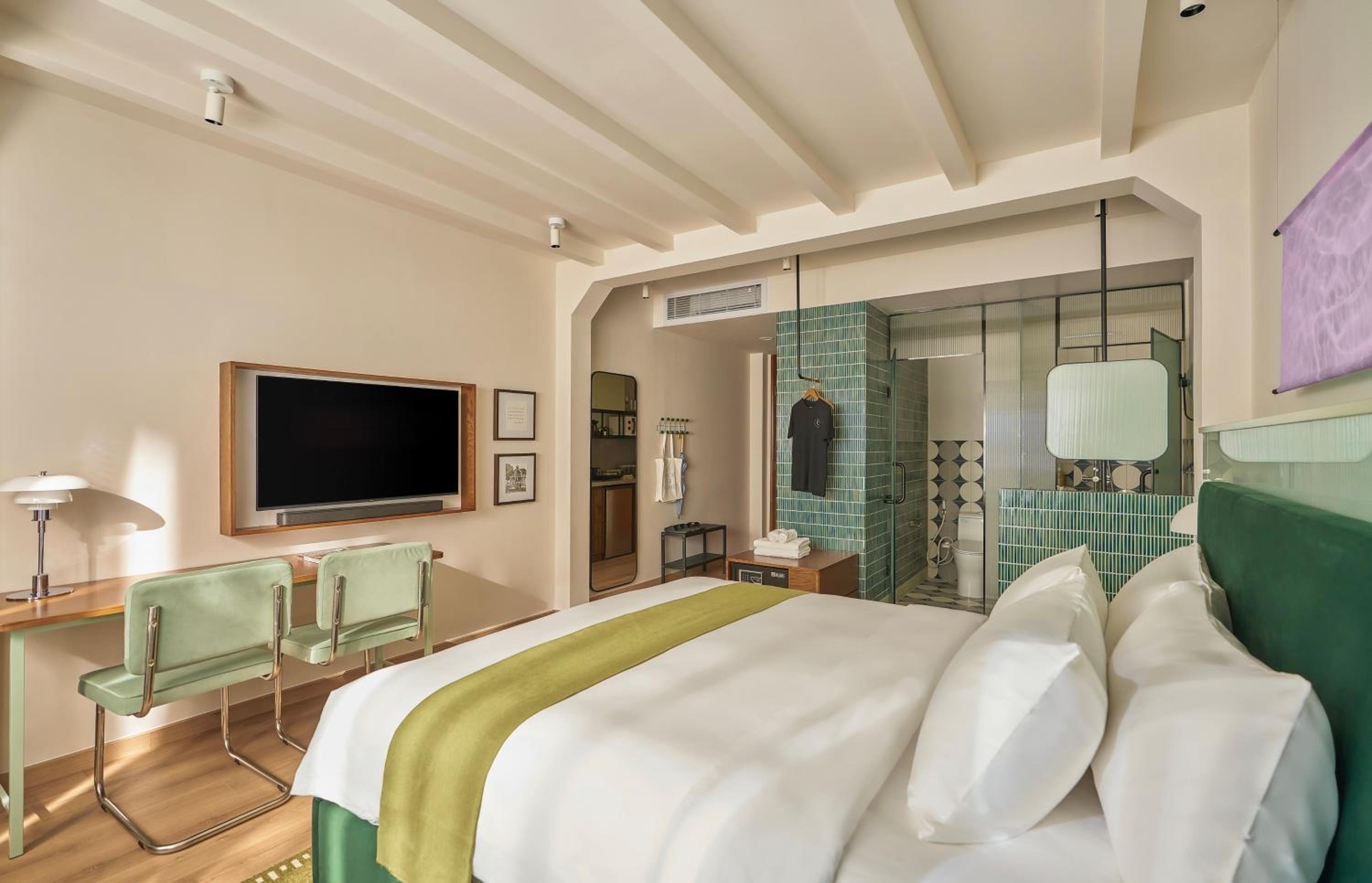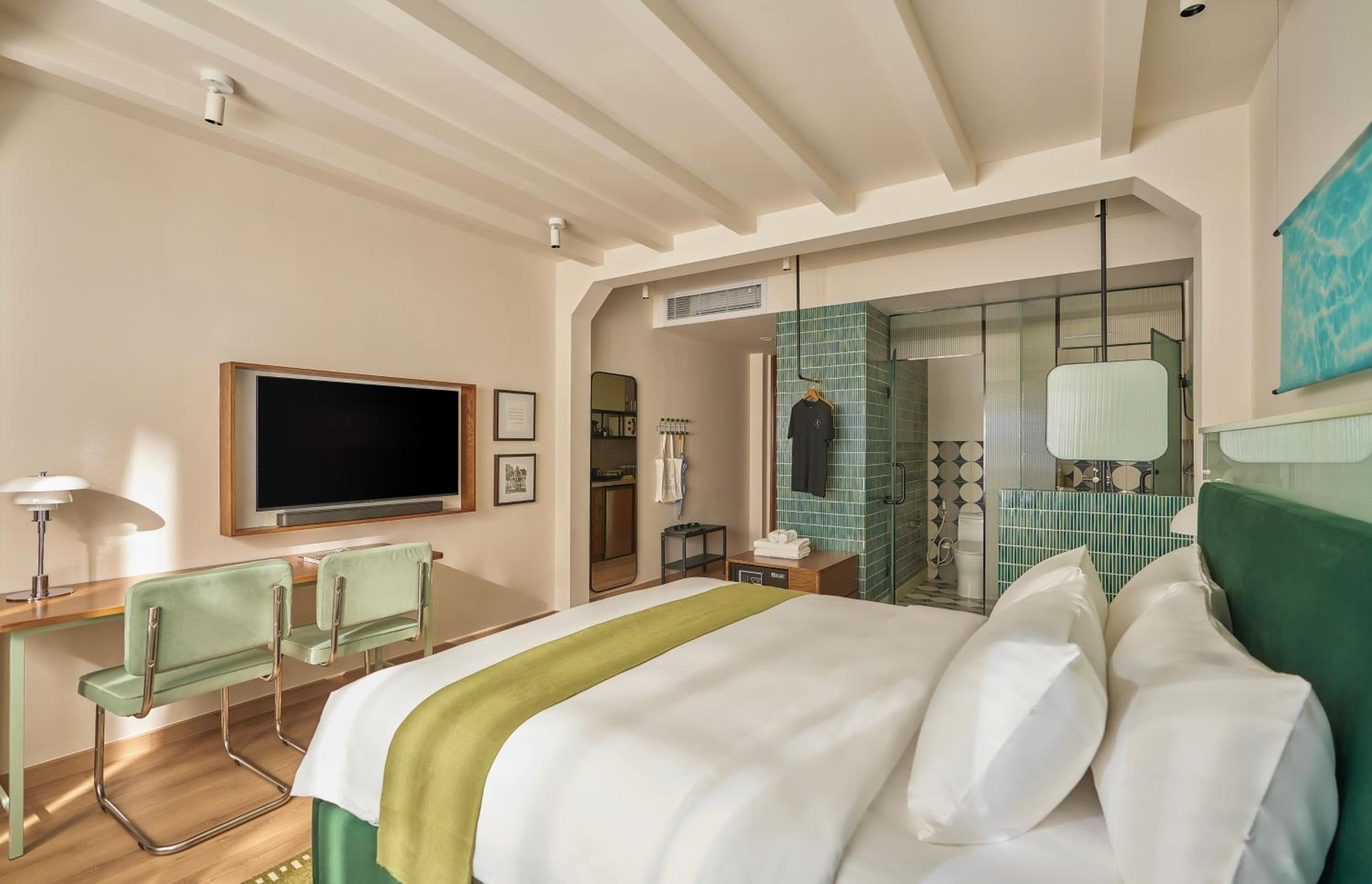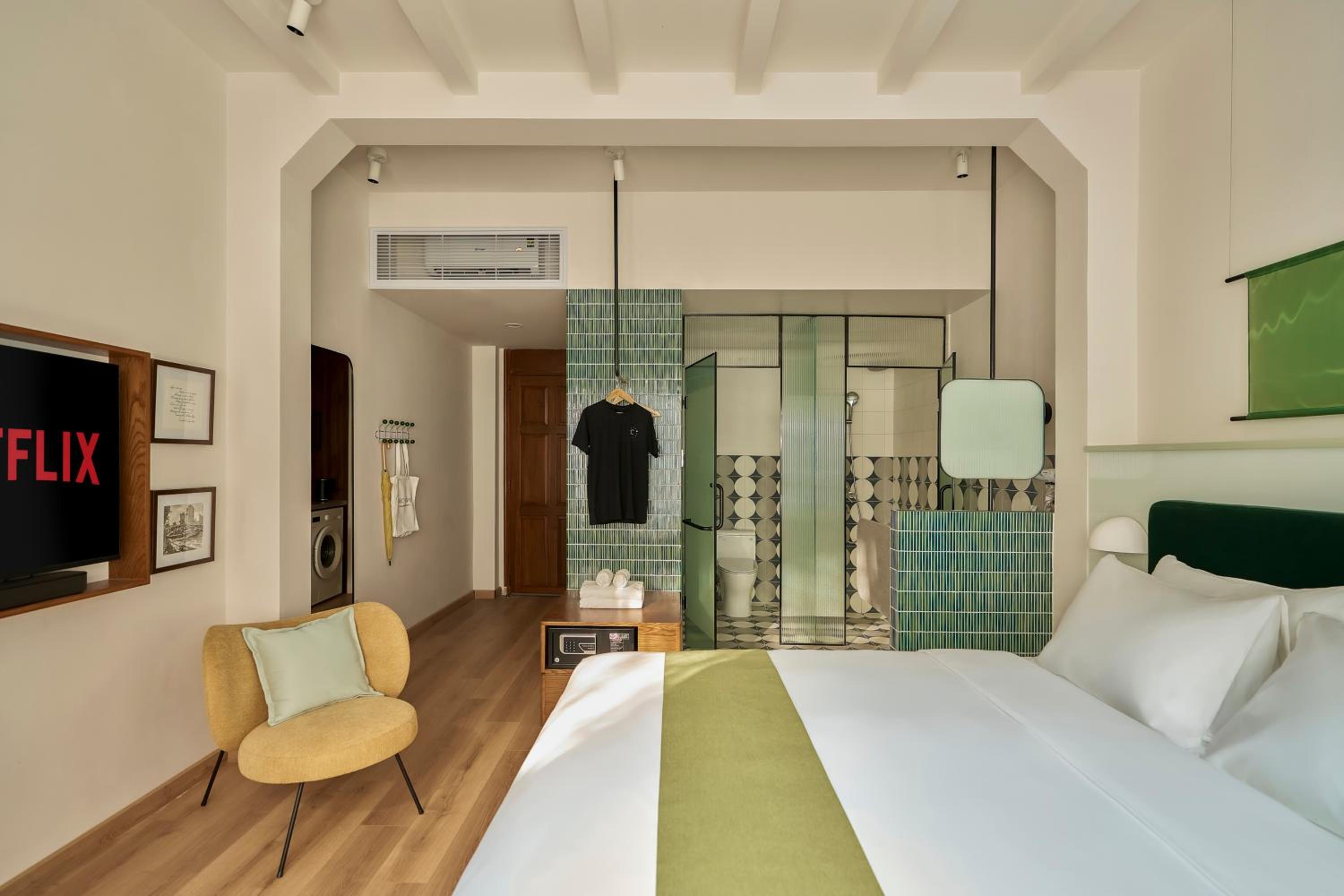 We really loved our stay and were very happy. The apartment was very spacious, with a separate bedroom and a comfortable living room. It was stylish, warm, peaceful, and very practical, with every detail thoughtfully designed. The bathroom was spacious and convenient, with excellent water pressure and temperature, and the bed was extremely comfortable. The lighting throughout the apartment created a very pleasant atmosphere. The air conditioning worked perfectly, and having a fan was especially useful at night.