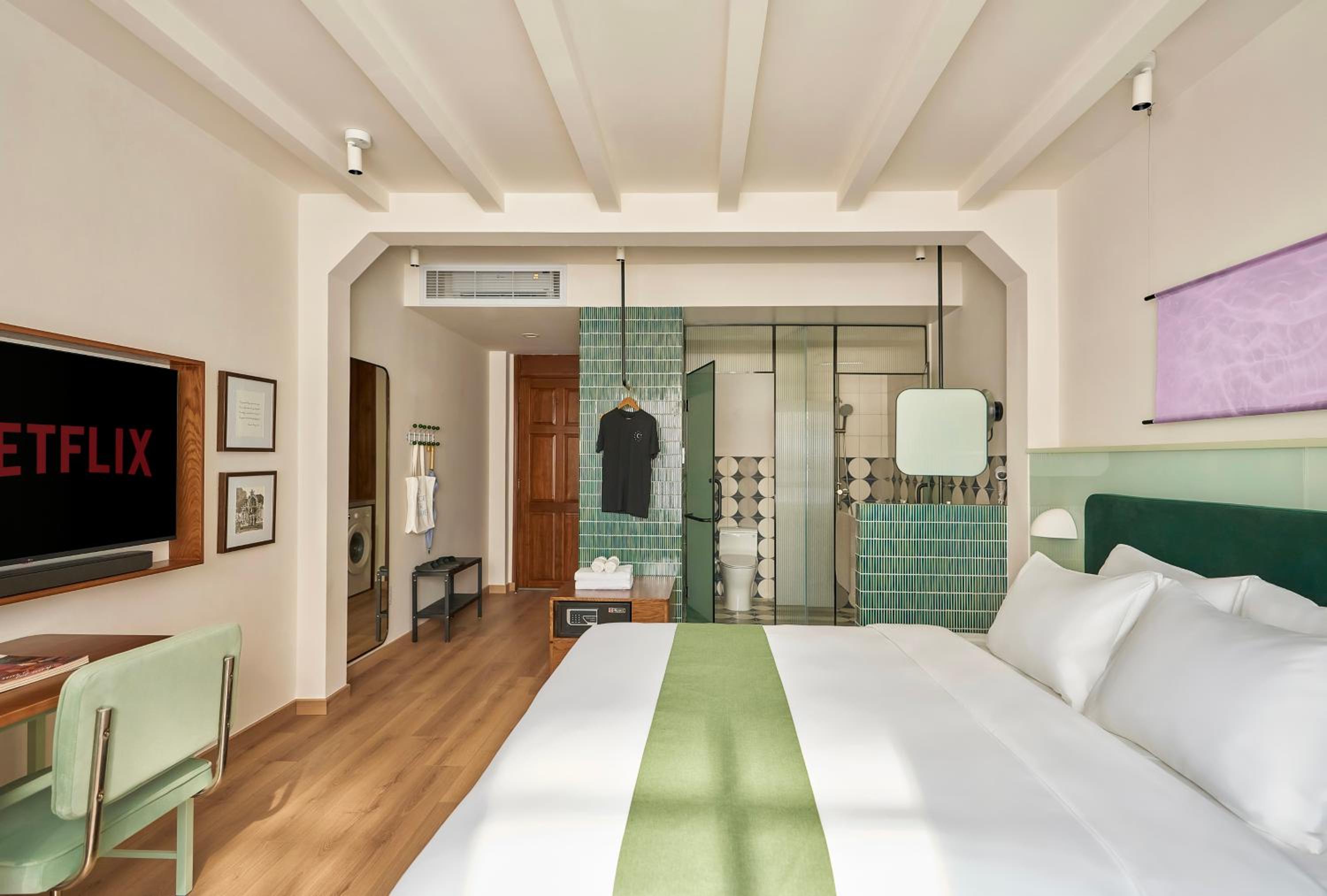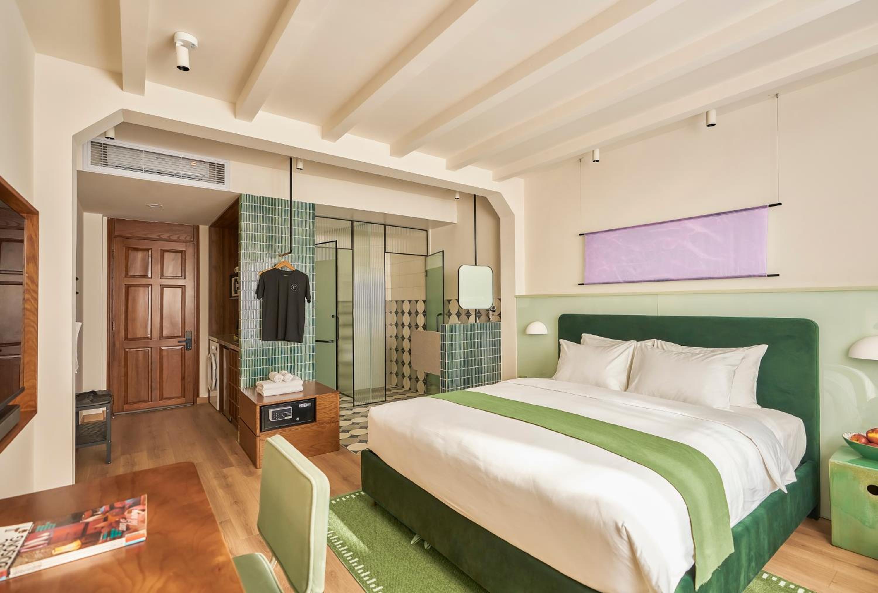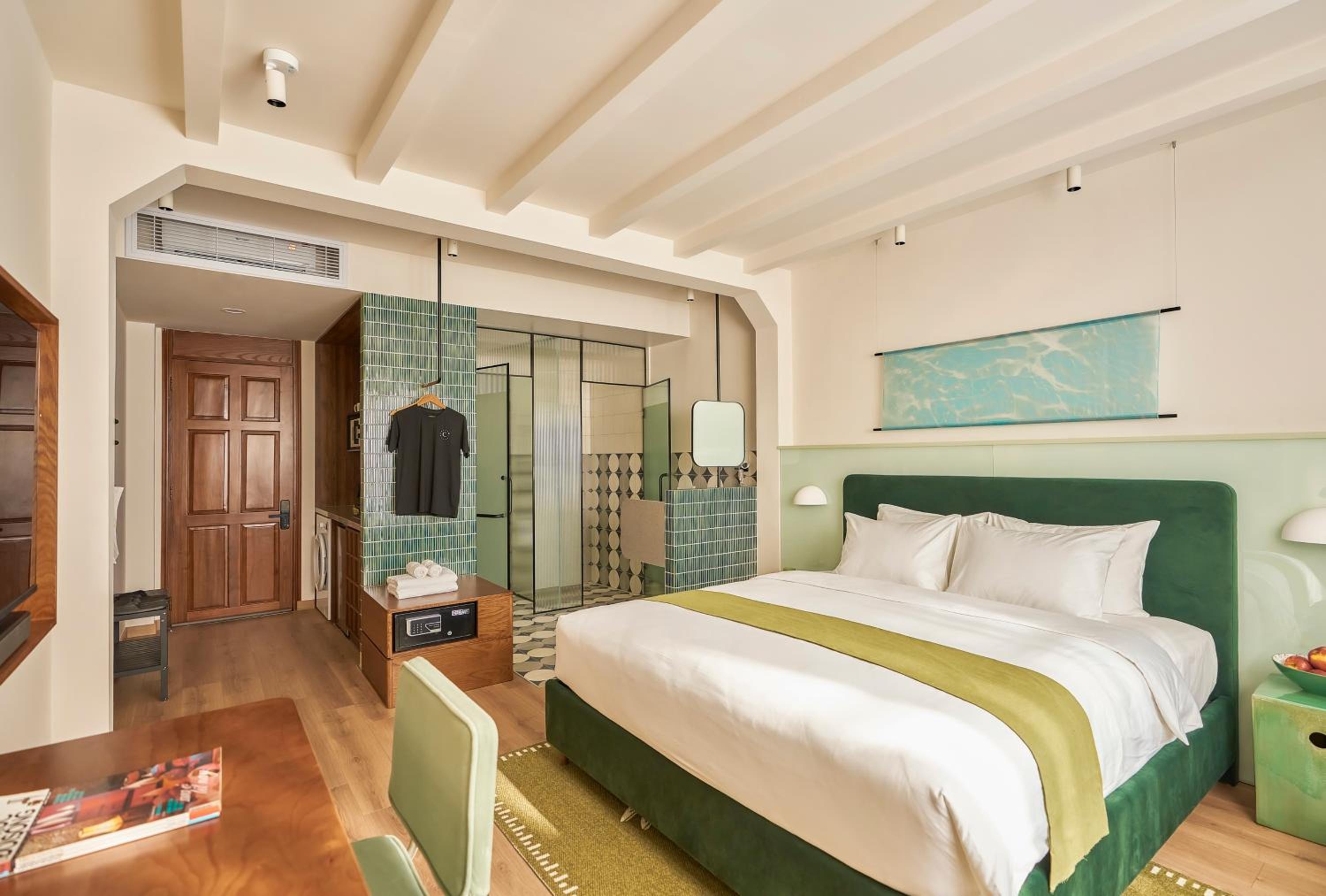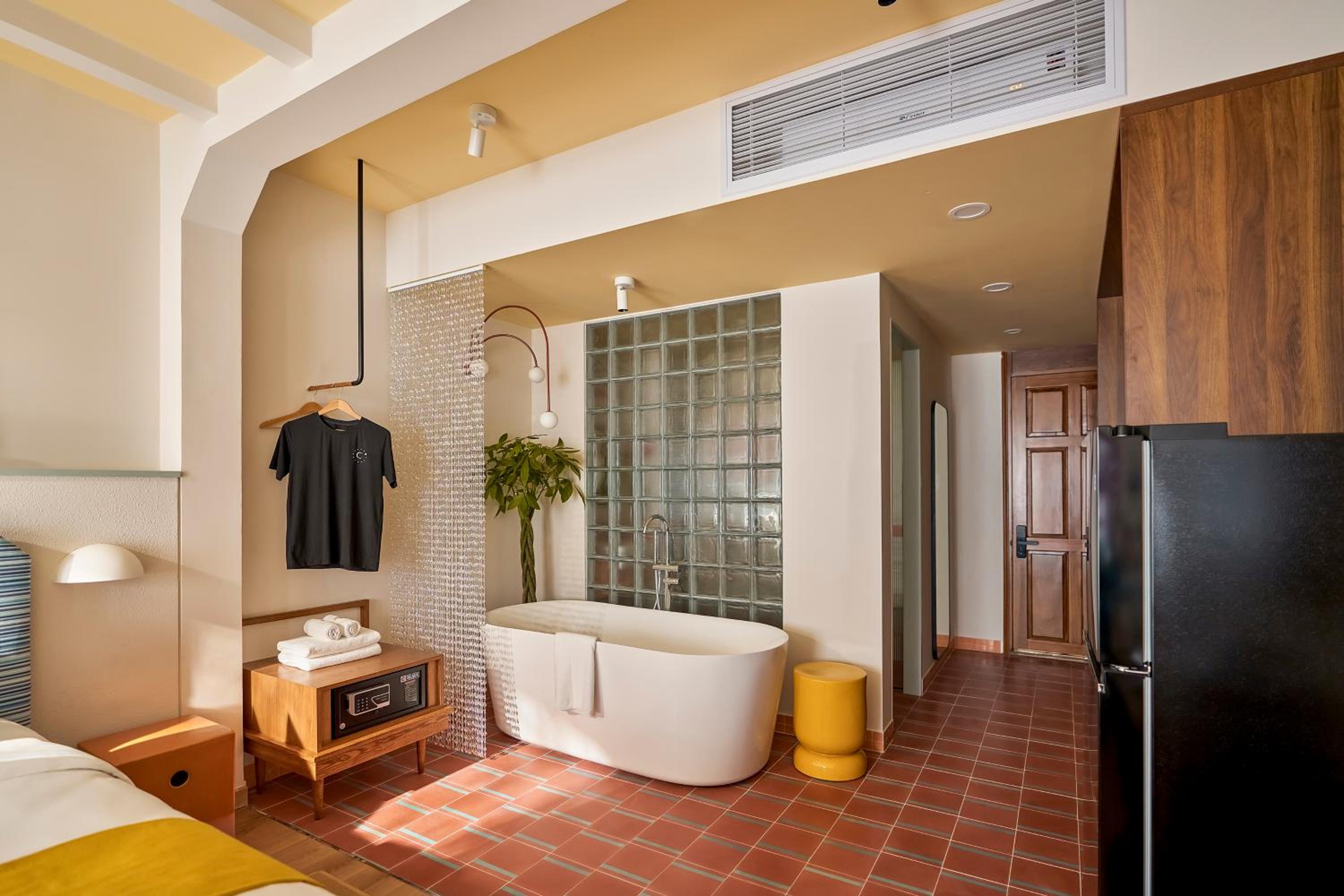 We really loved our stay and were very happy. The apartment was very spacious, with a separate bedroom and a comfortable living room. It was stylish, warm, peaceful, and very practical, with every detail thoughtfully designed. The bathroom was spacious and convenient, with excellent water pressure and temperature, and the bed was extremely comfortable. The lighting throughout the apartment created a very pleasant atmosphere. The air conditioning worked perfectly, and having a fan was especially useful at night.