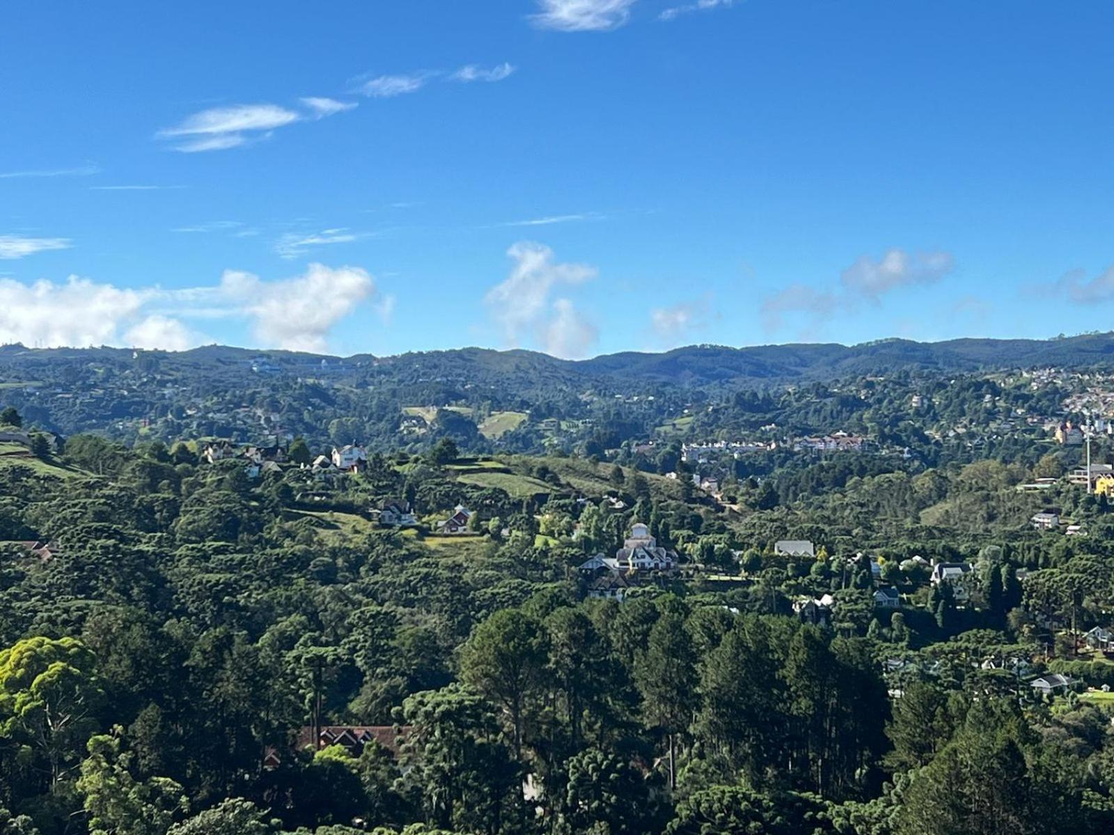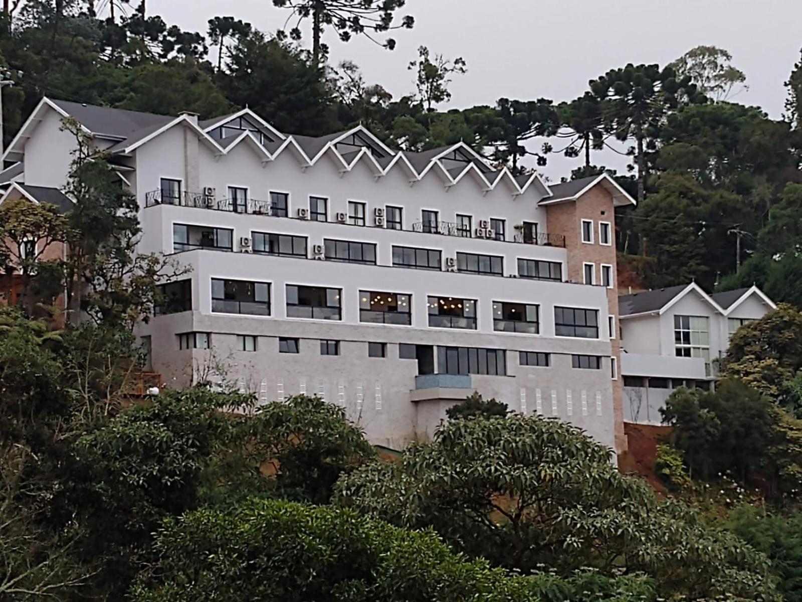 A localização é muito boa, super tranquila, no alto da montanha. Uma vista linda do salão de café da manhã.
