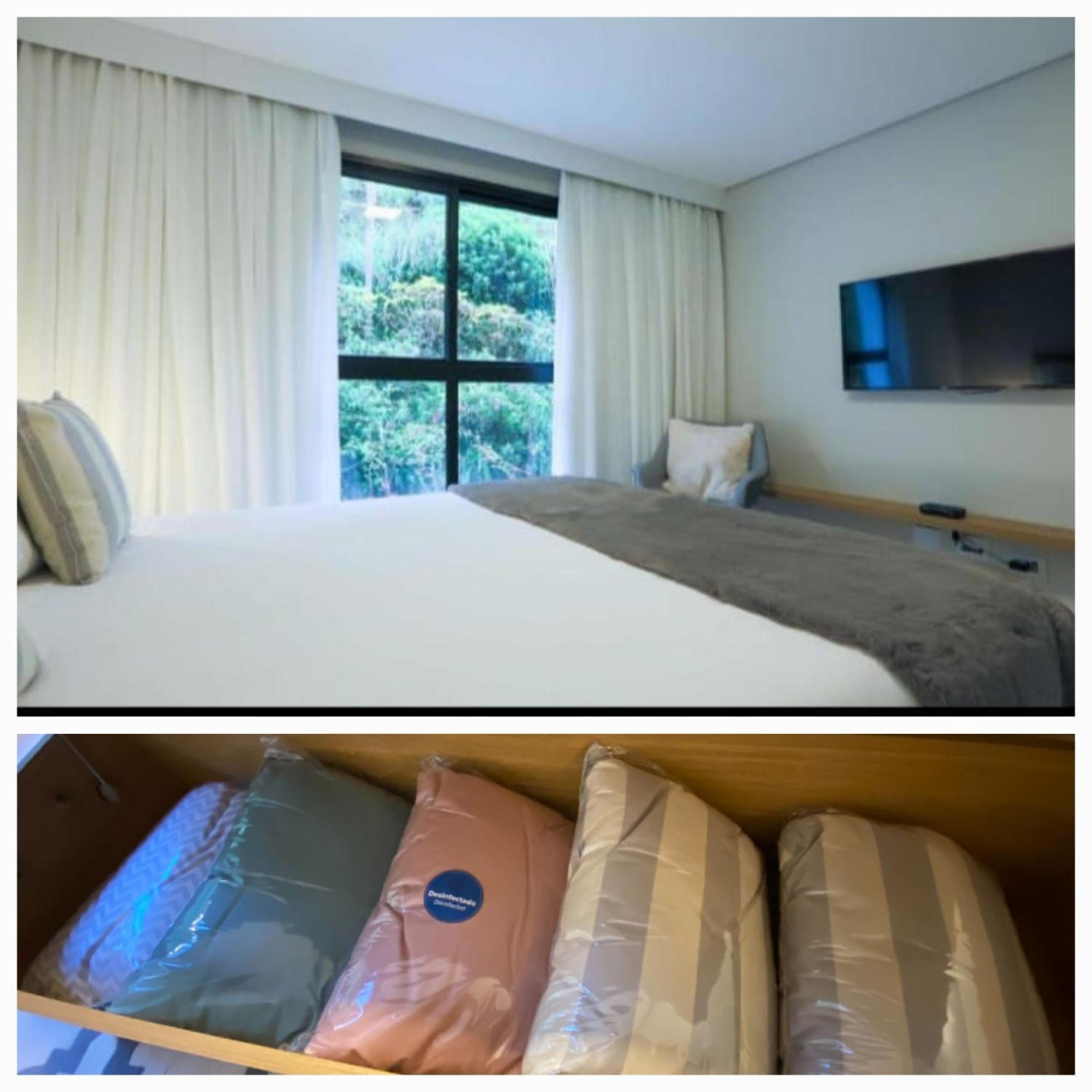 Camas muito confortáveis, vista da piscina incrível.