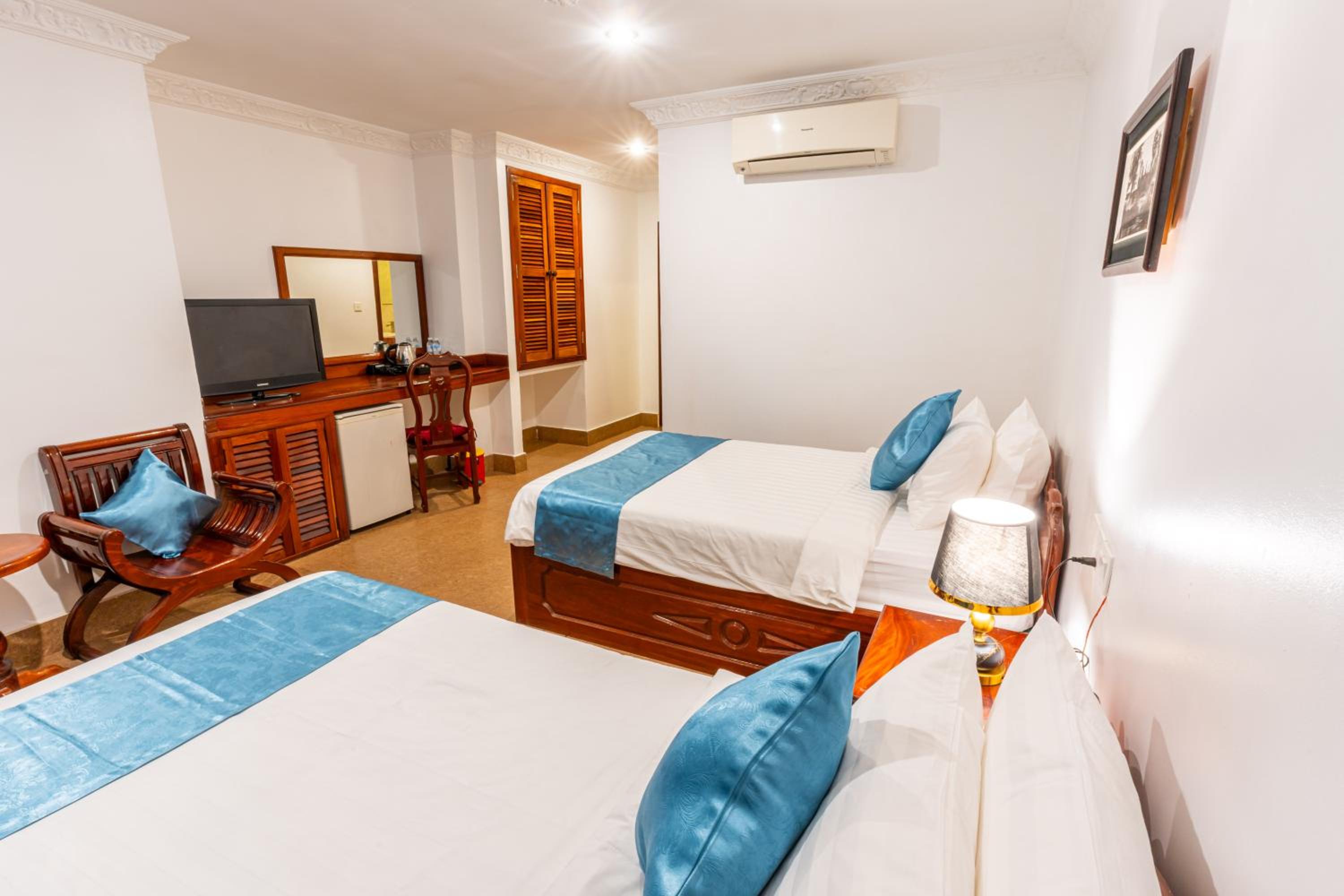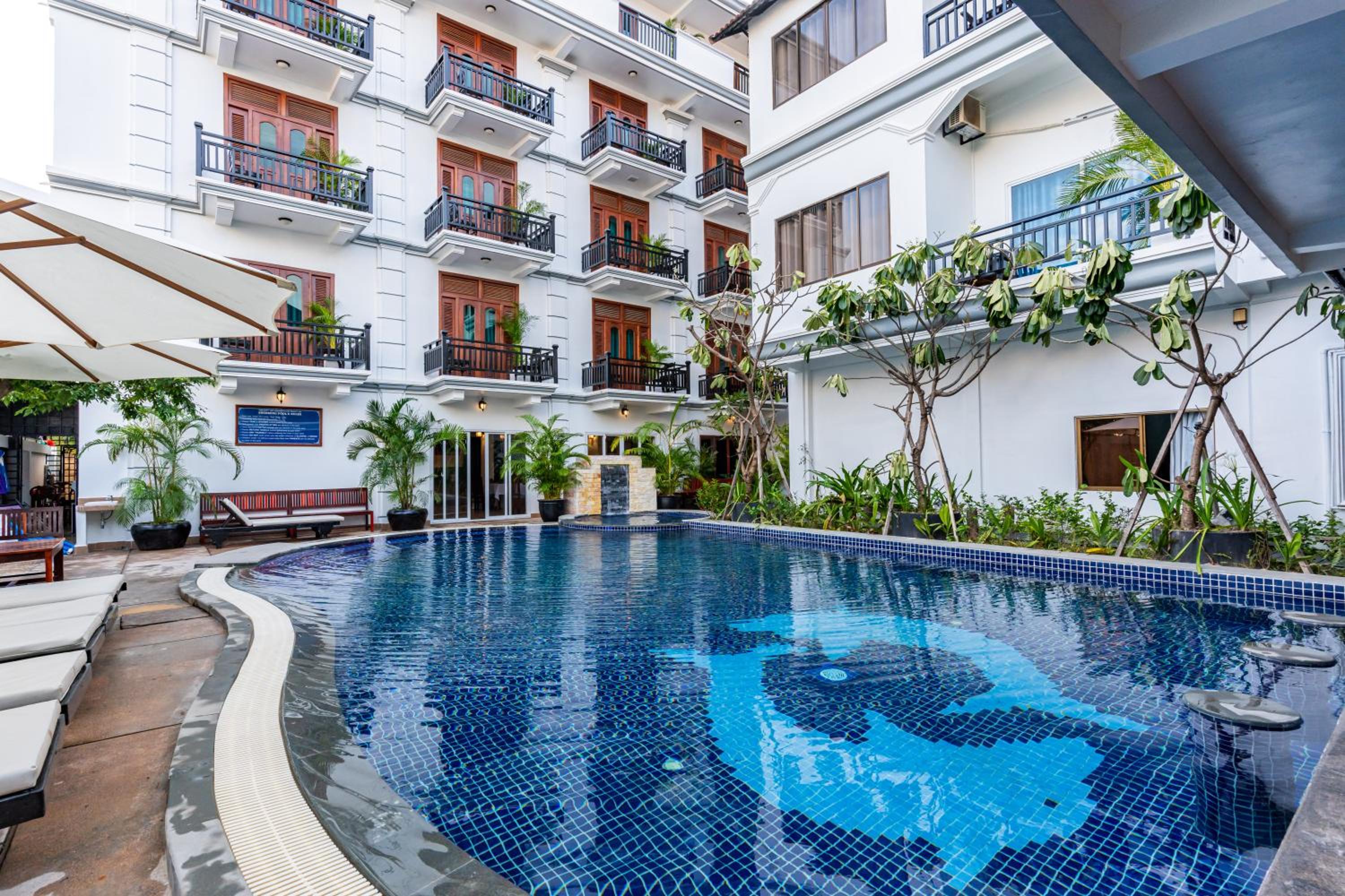 This charming hotel is new (Nov 2024) with a Khmer influence. The teak staircase is magnificent. The rooms are very spacious and comfortable. The linen is extra white and crisp. I thoroughly enjoyed the balcony overlooking the pool. The included breakfast has eastern and western choices with a selection of fruits.