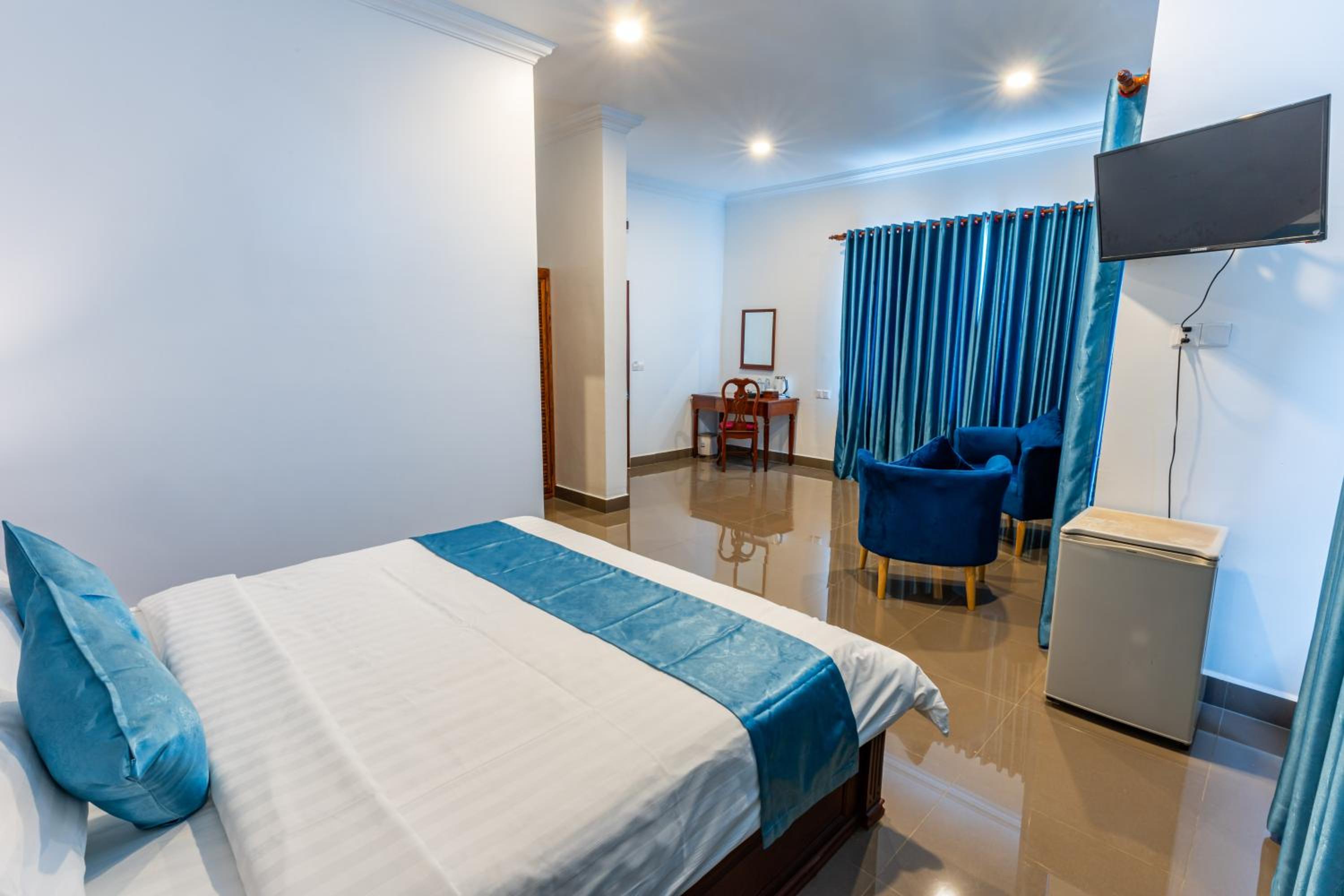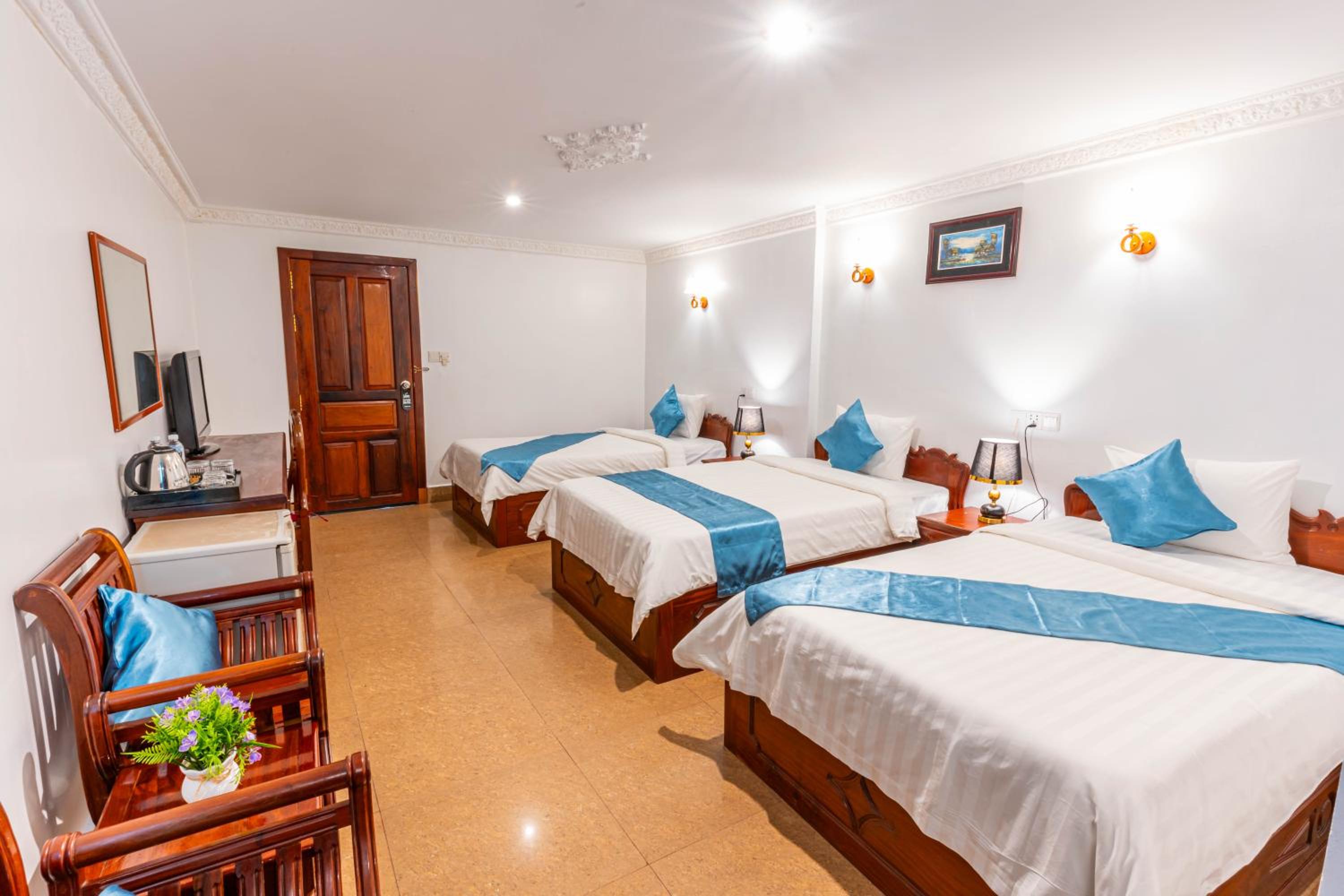 Grande chambre d'hôtel dans un quartier tranquille situé près du centre de Siem Reap et des marchés. Le personnel était toujours très gentils et serviables. Le lit était trop dur pour moi et on m'a offert de le changer.