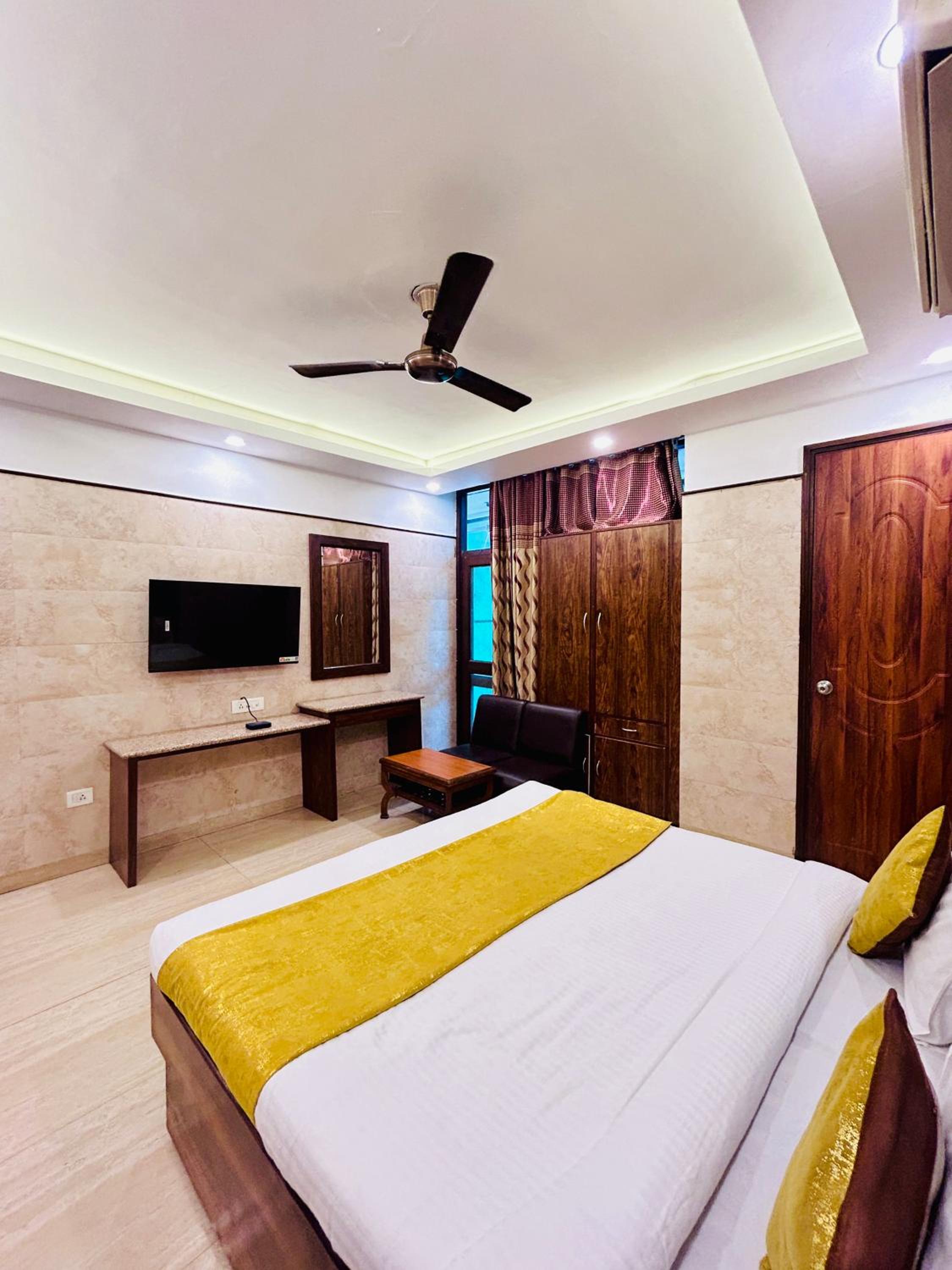A convenient location.. Loved being near Bhogal. The guys who helped us in our rooms were very nice.