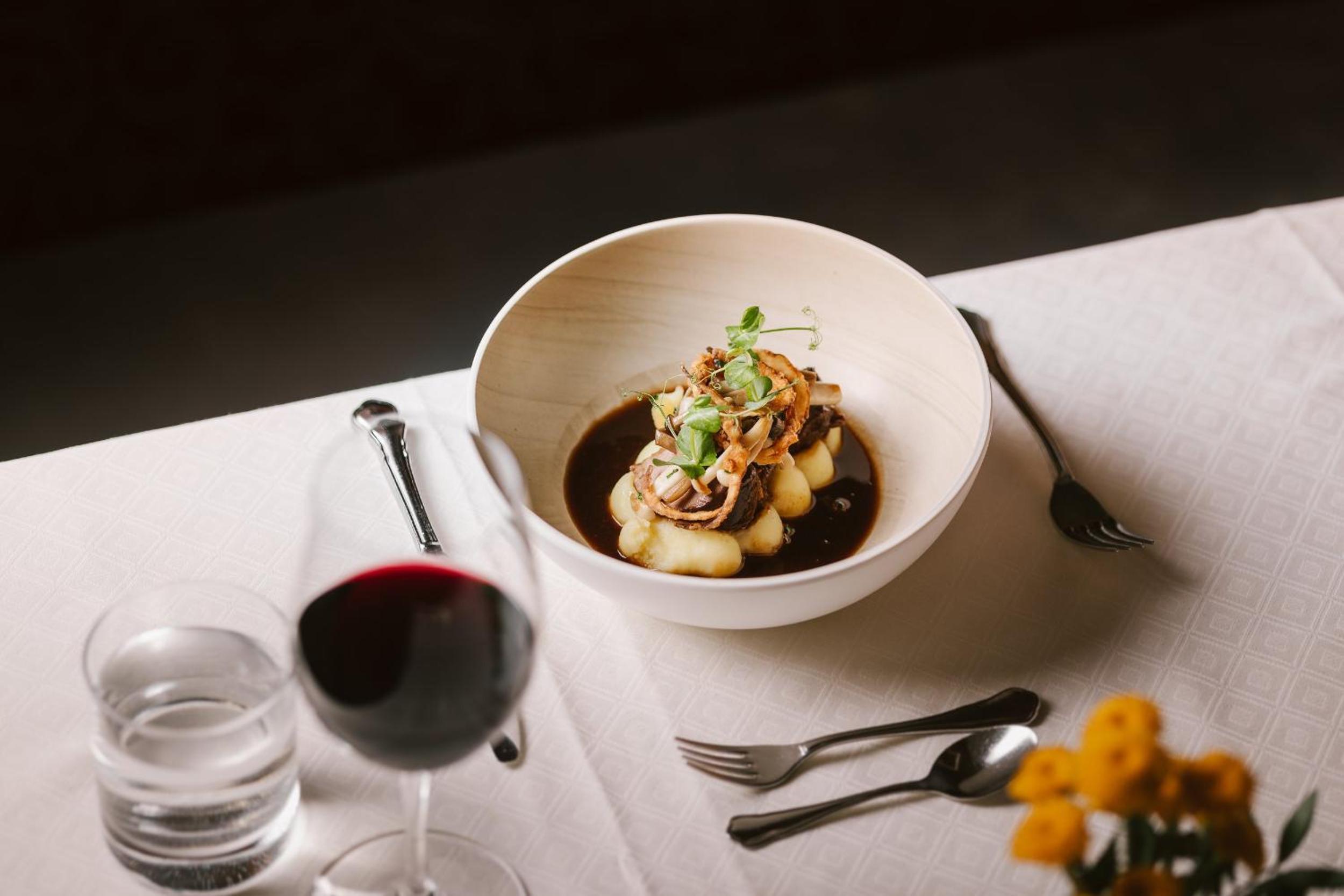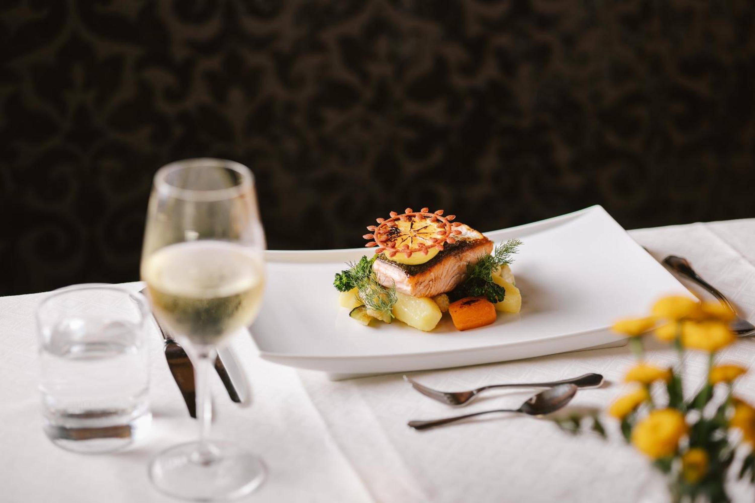 ontbijt prima. kwaliteit eten diner voldoende. relatief duur voor wat je krijgt. kamer interieur outdated en bedden te hard.