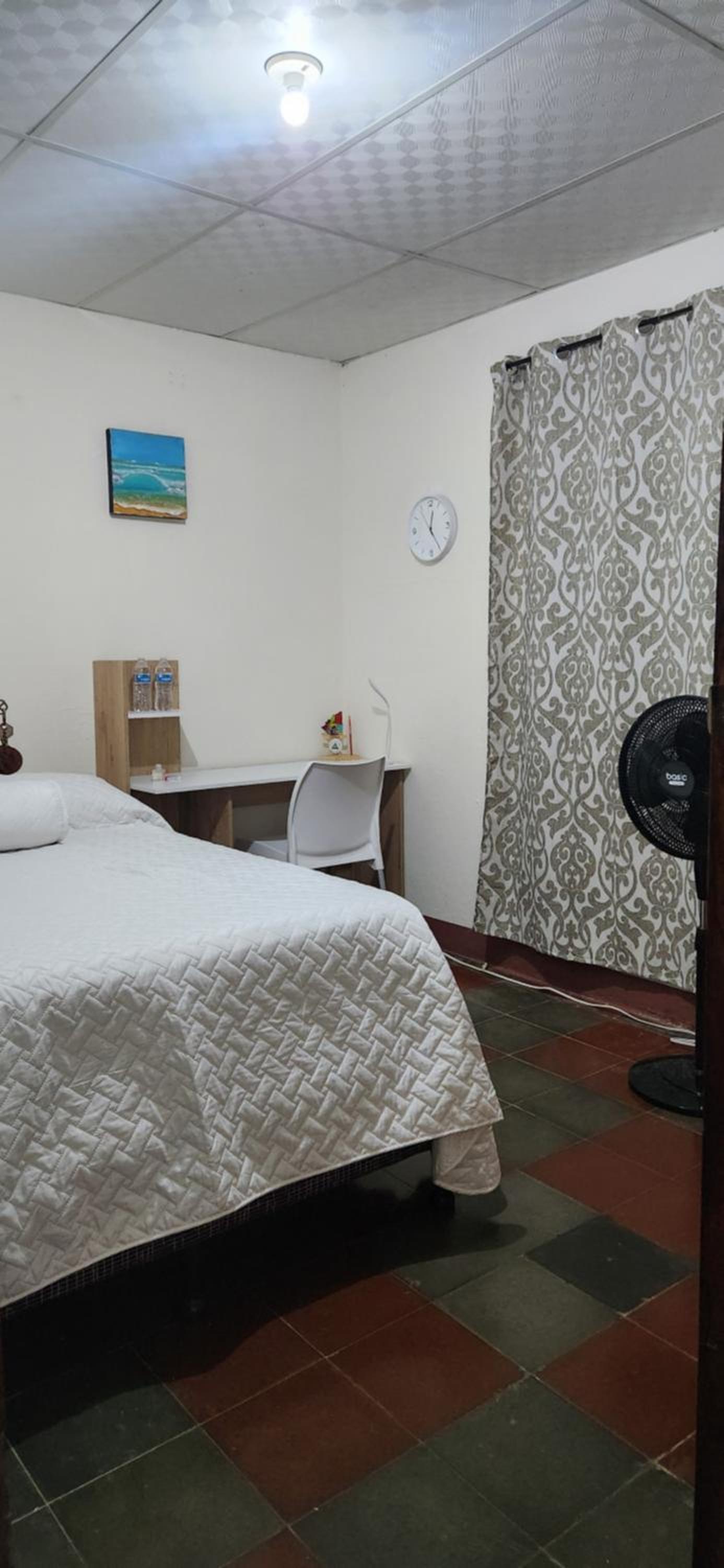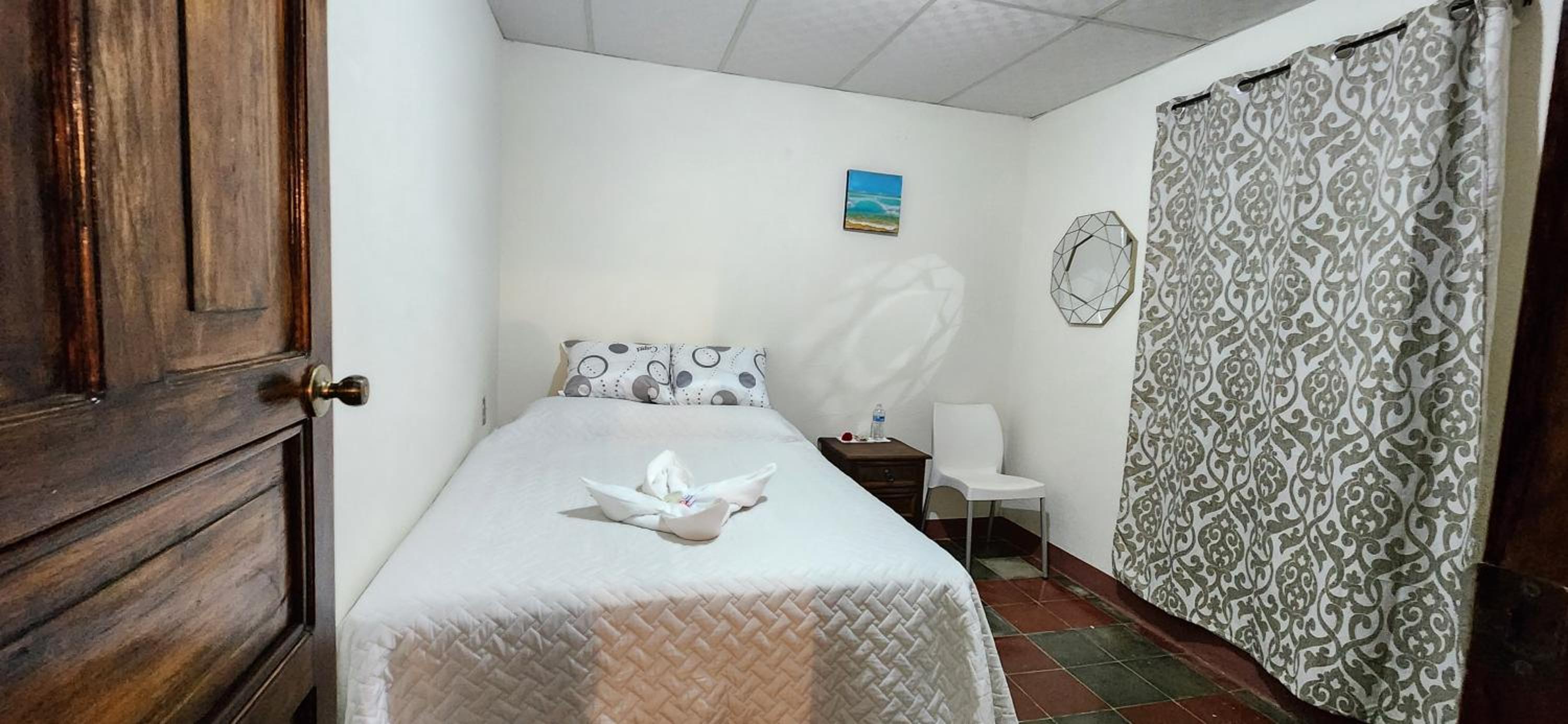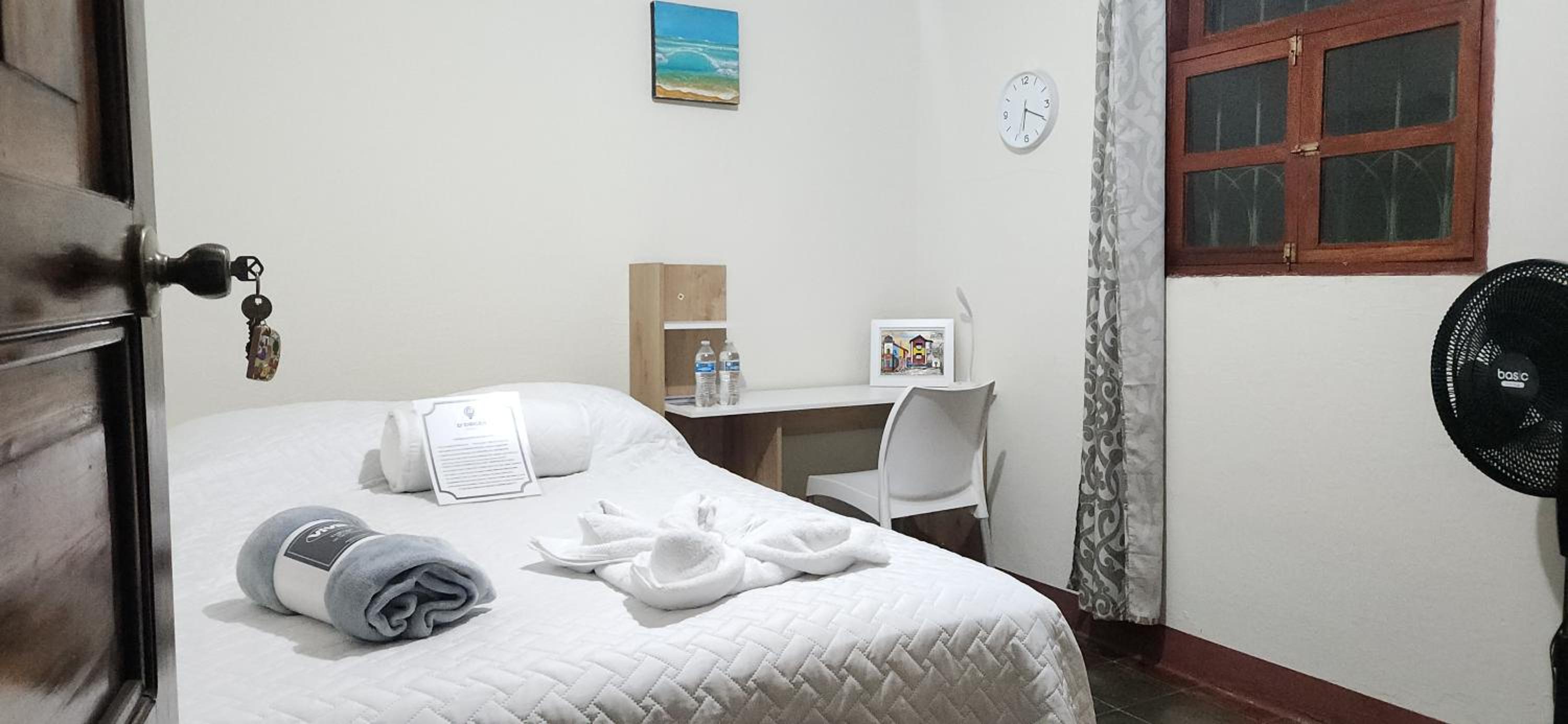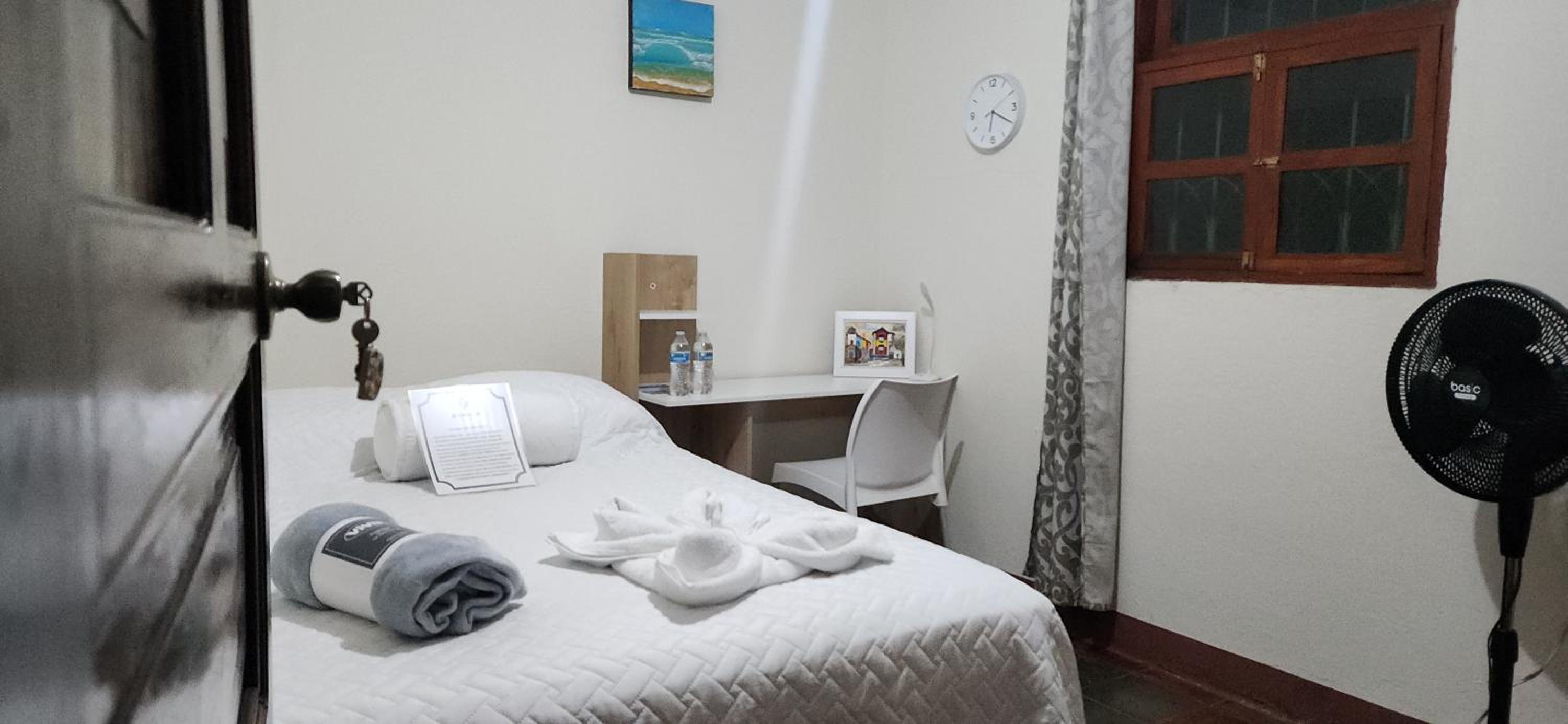 A neighbor had to call him, and when he arrived he stated that he called us several times (which he did not) to ask if we were coming and that we were lucky he had not give our rooms away. Further, he did not accept our service pet, although this was not mentioned on the booking. We had to leave our doggie in the car with the windows down. They also lock the parking gate and no one has access it to it. It was a scary situation but it was late and we did not know where else to go. Also, they charged us a $10 fee for my 12 year old and suggested that he slept on the couch in the lobby. Luckily we had a portable hammock for him to sleep in.