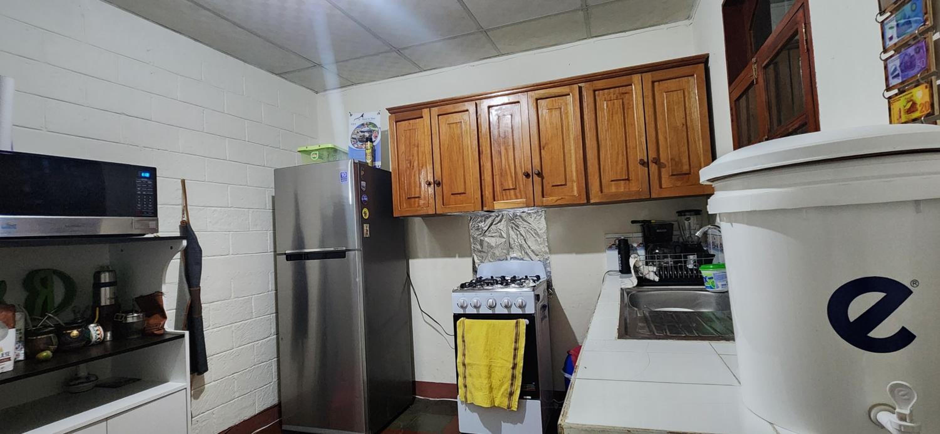 There is a charming little garden where you can relax or hang wet clothes. The kitchen is a reasonable size, equipped with plenty of utensils and appliances for preparing meals, plus a good fridge-freezer and a free water dispenser. We didn’t cook, but it looked well set up.