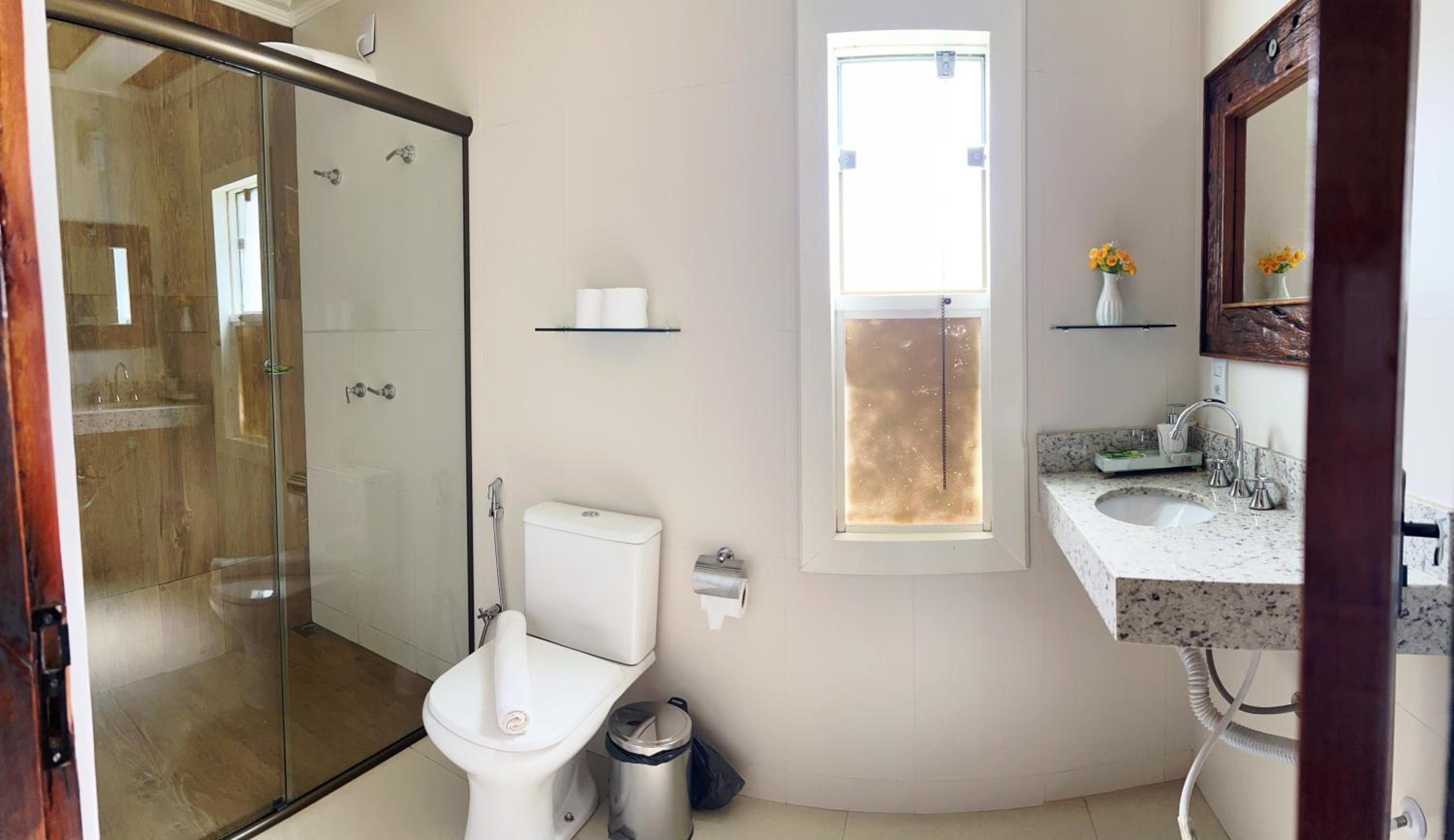 INCRÍVEL! Café da manhã impecável, chalé confortável! Primeira recepção que tivemos foi pelo wpp com. Paula, no qual foi muito atenciosa! A segunda recepção que tivemos já foi quando chegamos ao chalé, recebidos pelo Leonardo e a mãe dele, gente fina eles. Super acolhedores do início ao fim! Ficamos extremamente encantados com cada detalhe do lugar!