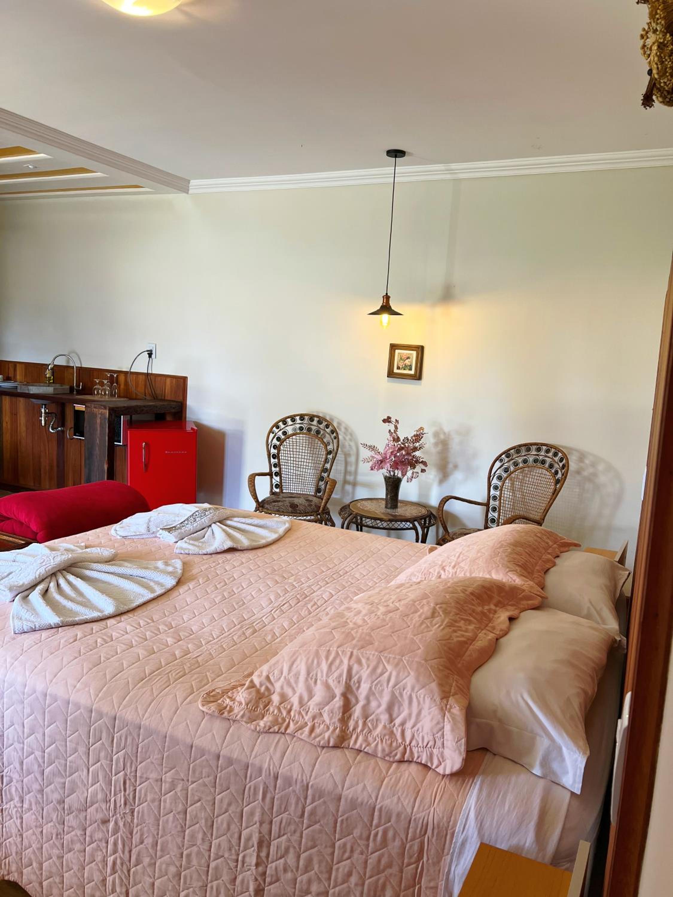 Ótima opção em Lavras Novas!! A acomodação é bem ampla e confortável! Possui uma pequena "cozinha" que foi útil para nós. A equipe foi atenciosa, e fomos muito bem recebidos pela dona Leila, que preparou tudo com carinho. O café da manhã é completo e muuuito bom! Tivemos uma estadia tranquila. Recomendo!!