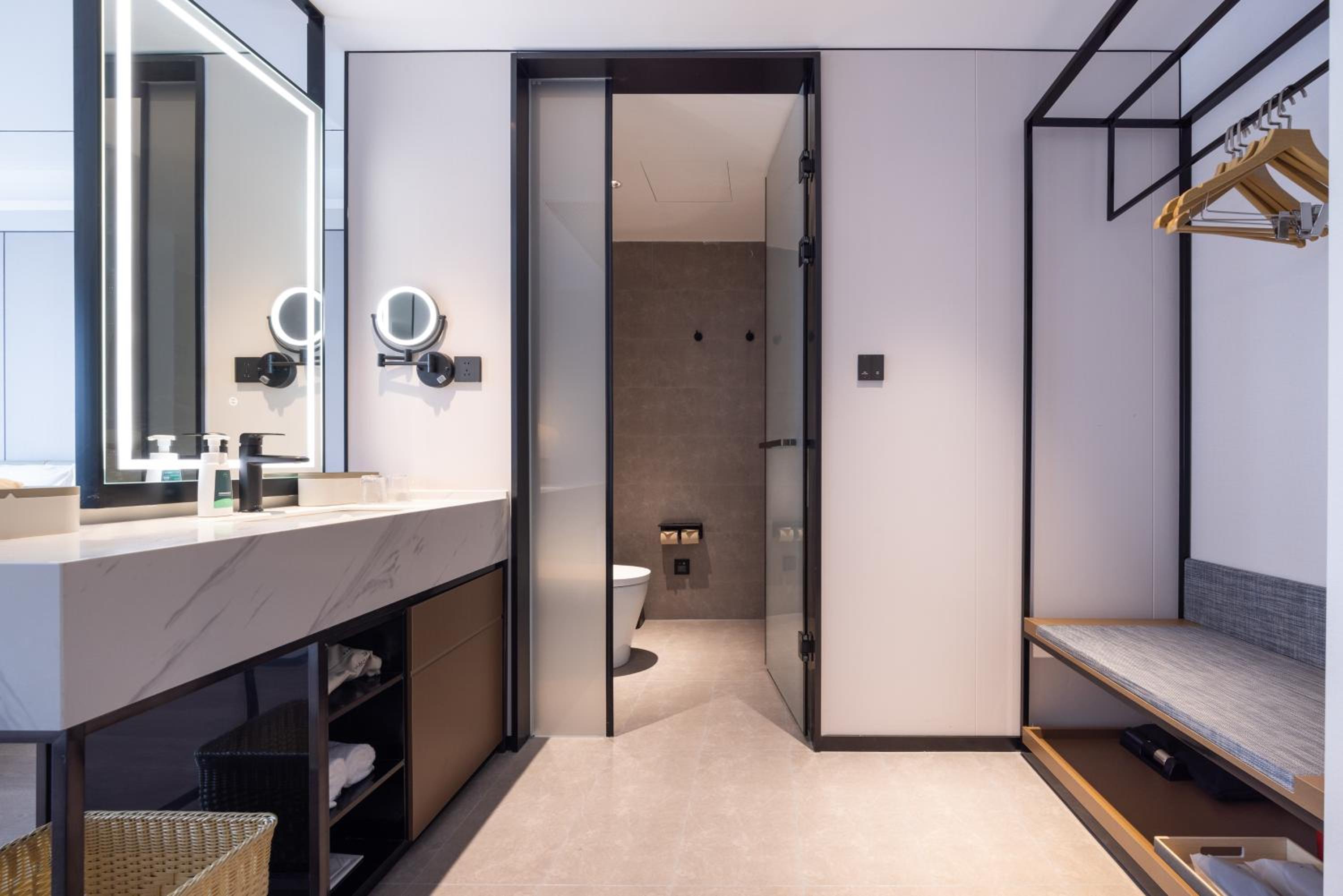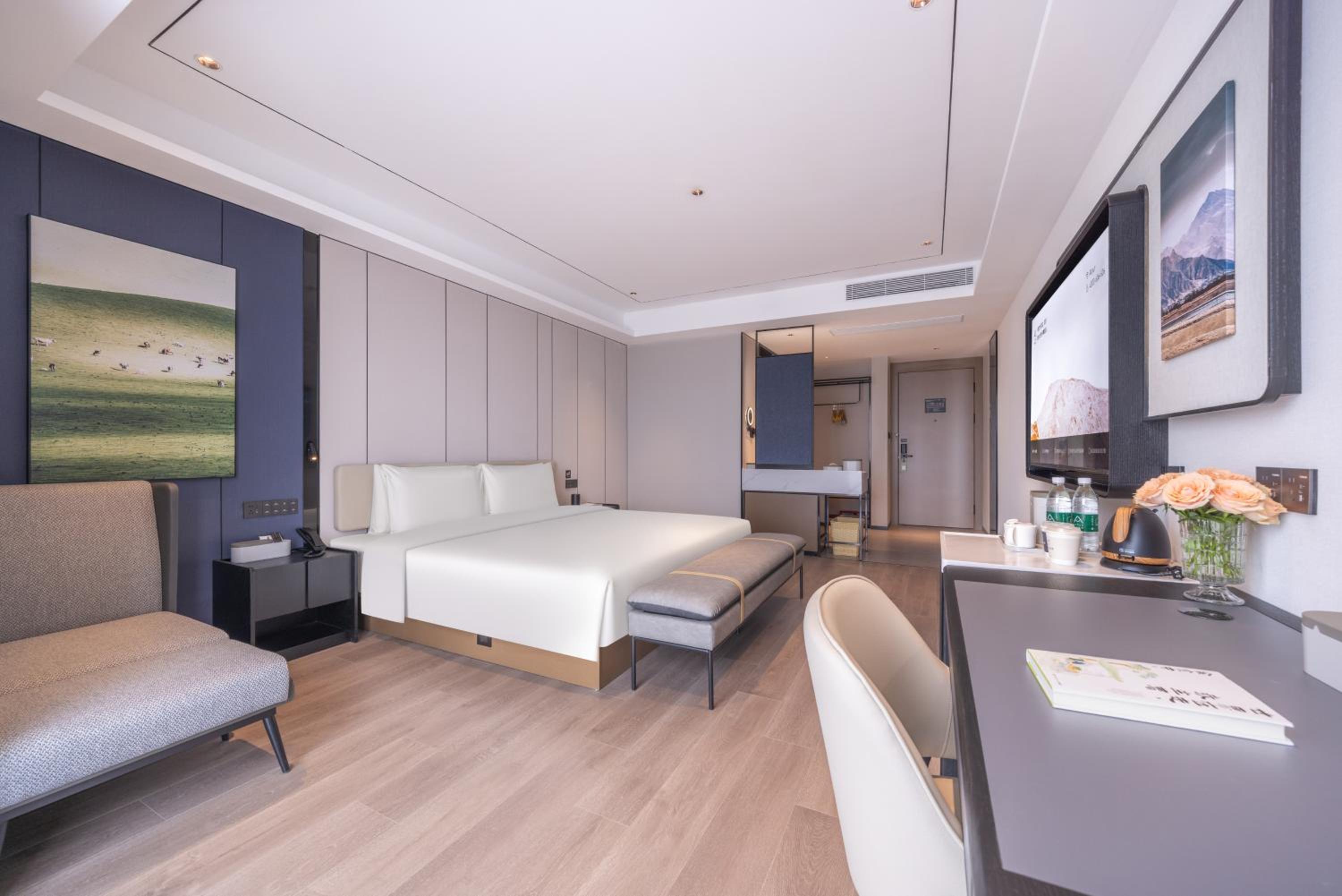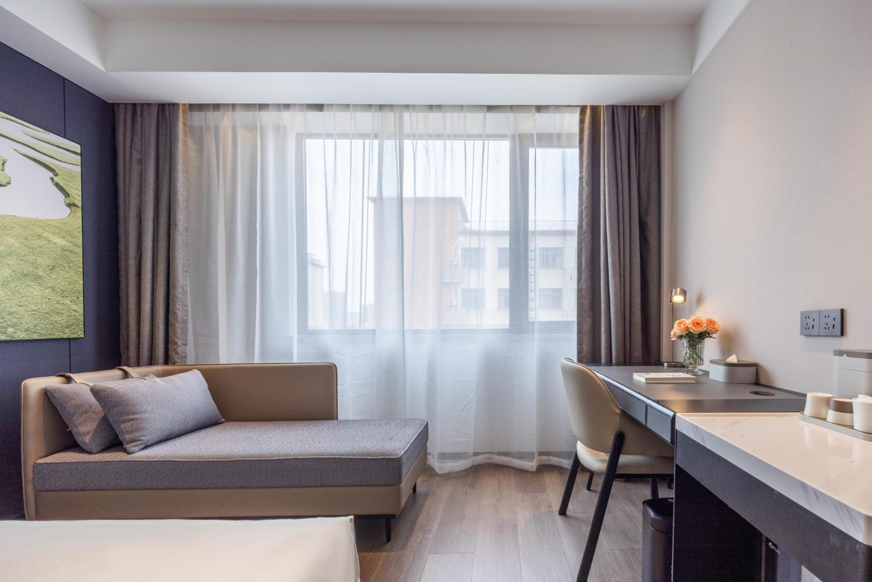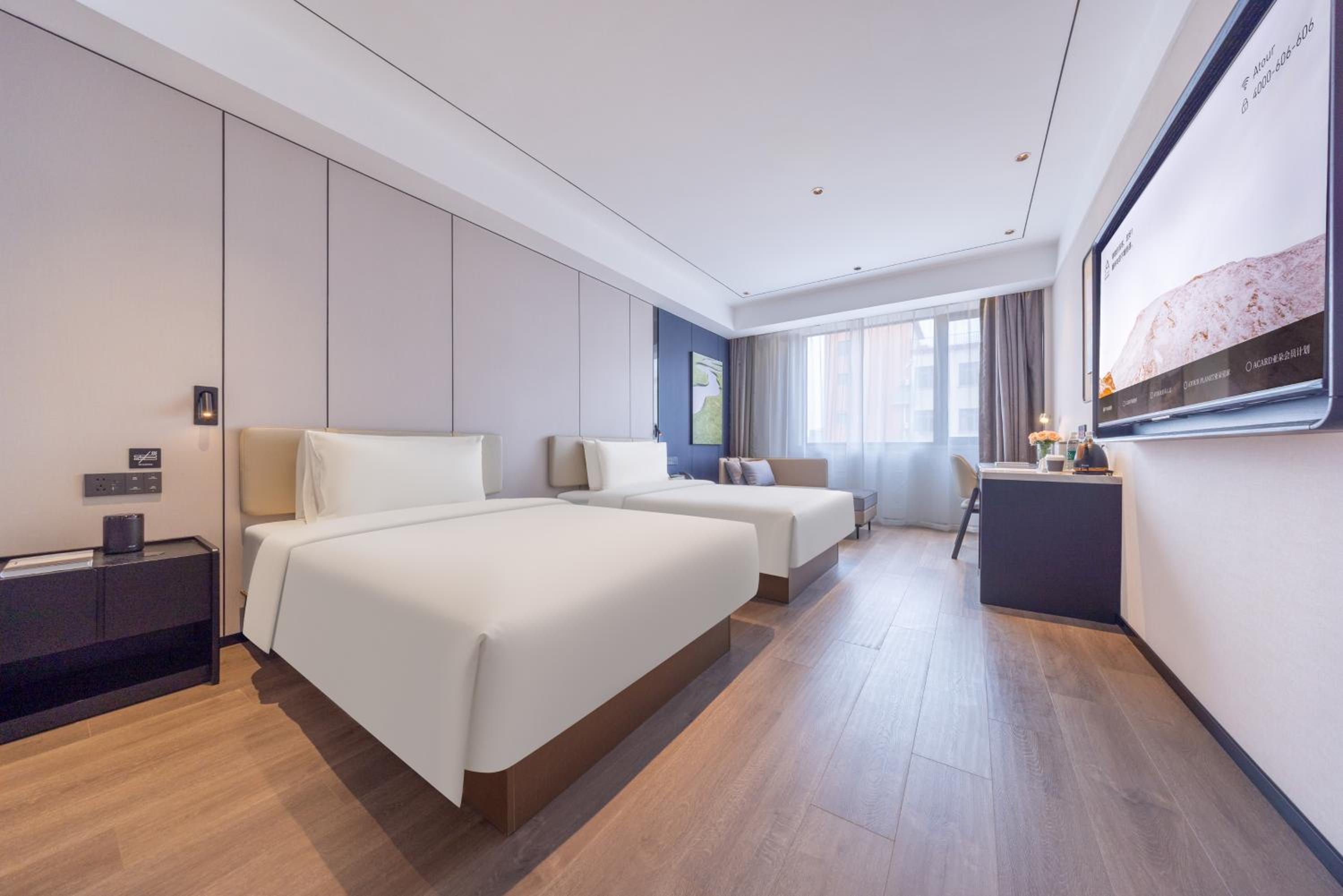 Experience comfortable rooms with flat-screen TVs, work desks, and cozy seating areas at Atour X Hotel Shanghai Pujiang Lianhang Road.