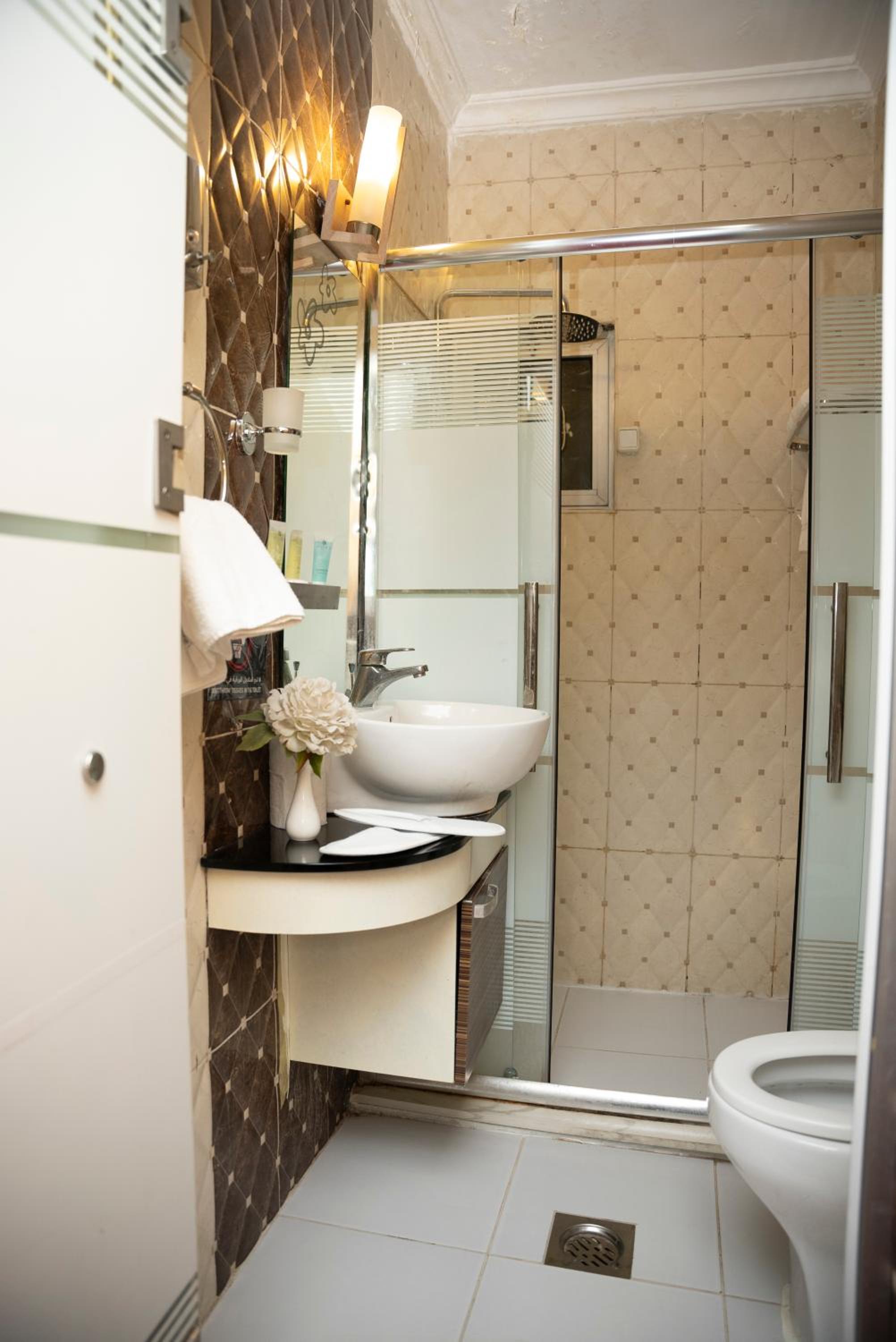 الغرف قديمة جدا ومهترئة حجمها صغير جدا ليس كالوصف وكانت غرفتنا طابق -1 مثل القبو والمرافق سيئه جدا جدا جدا تحتاج التجديد حيث سيفون الحمام لا يعمل جيدا