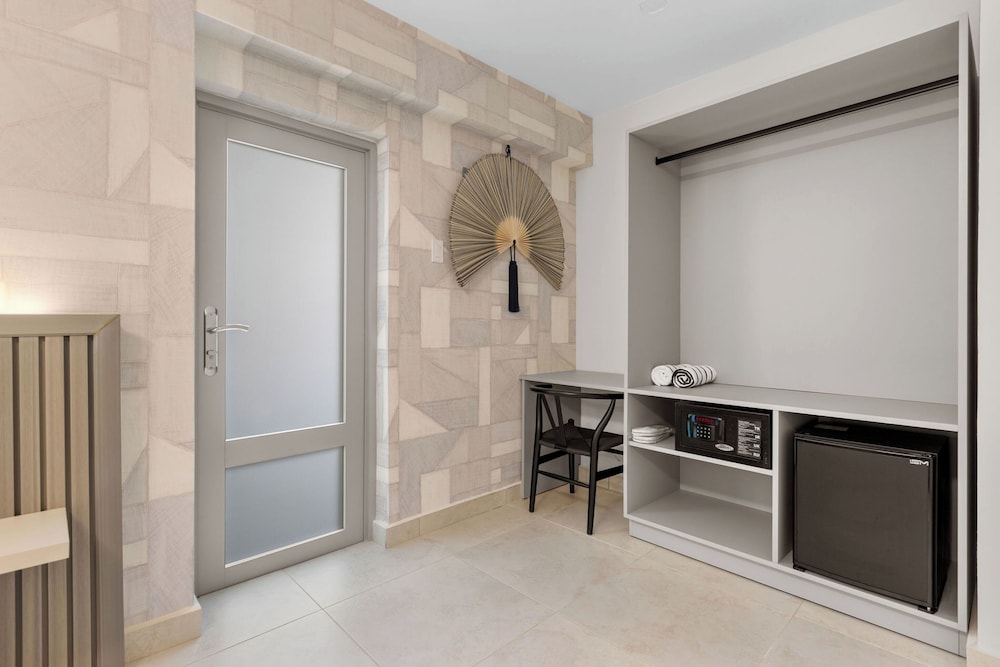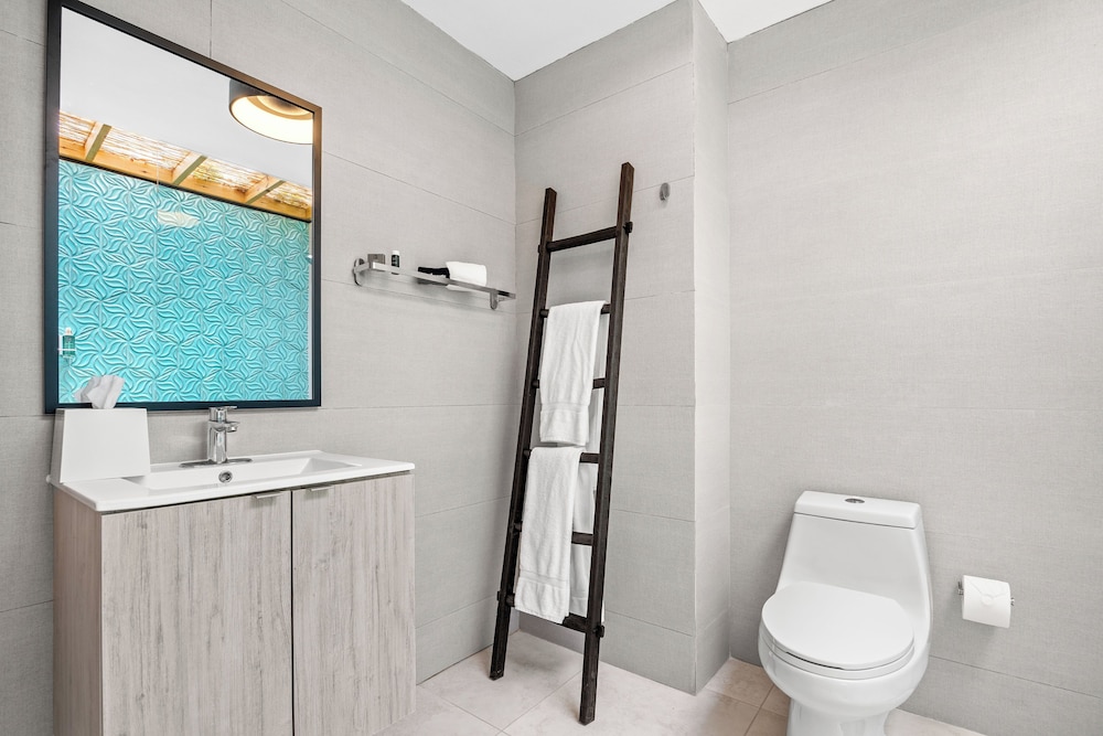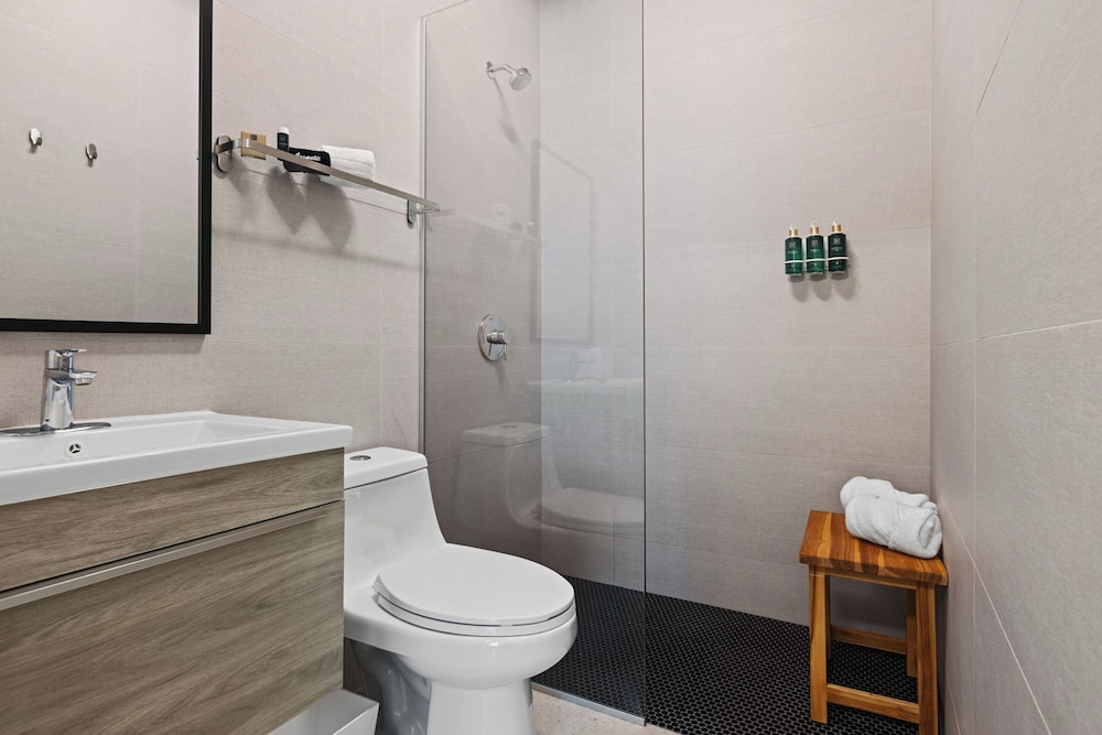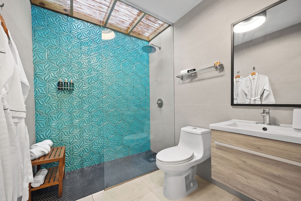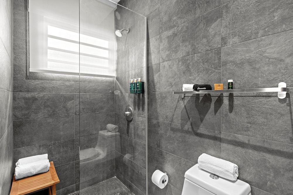 The property is very nice and modern. Amenities were nice like the pool, gym, patio furniture and bar. Staff was friendly and helpful with local recommendations. I would rate this place as 5/5 stars but the restroom set up in our room wasn’t ideal. There was no door to the shower or restroom so everything gets wet and stays wet given the climate of the area (hot and humid). The ac worked great but there was no ventilation to let out the moisture. The floor gets very slippery. Also, we stay for 5 nights and didn’t get our roomed cleaned. We kept putting the sign out on the door to get cleaning service while we were out for the day and nothing. When I asked about it, staff said they were short staffed and would get to it but they never did. The room next to us got cleaned everyday we were there so it didn’t make sense. That is why I can’t give it an excellent rating. Other than that, we enjoyed our stay.