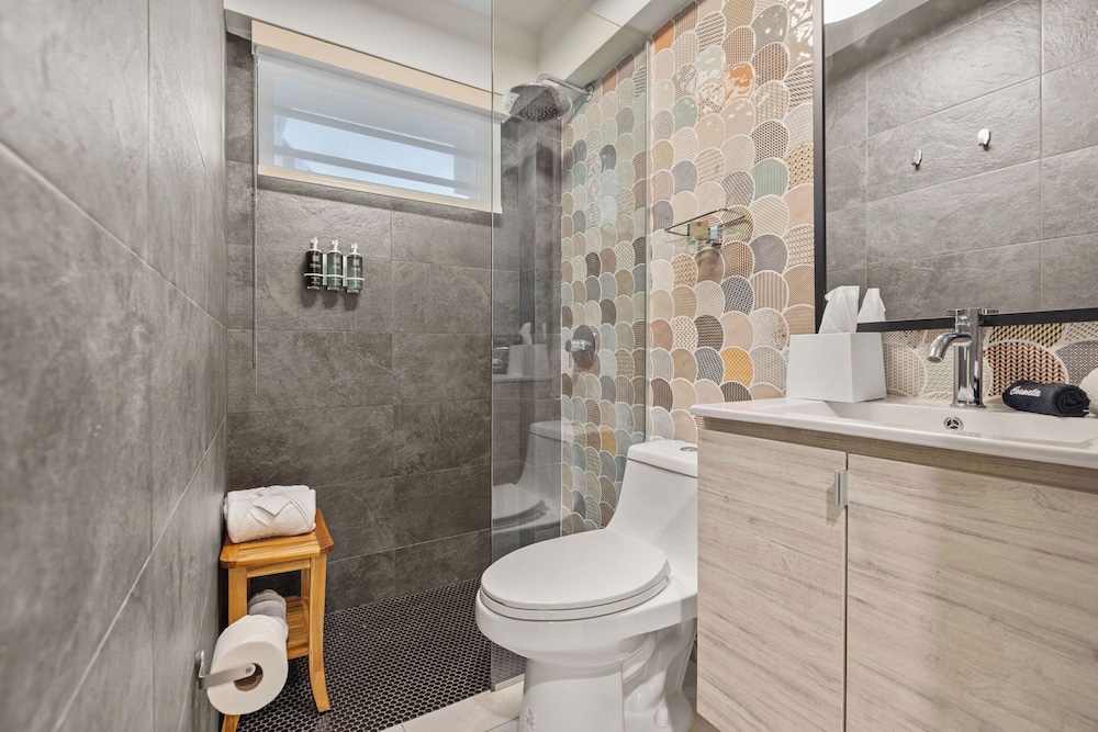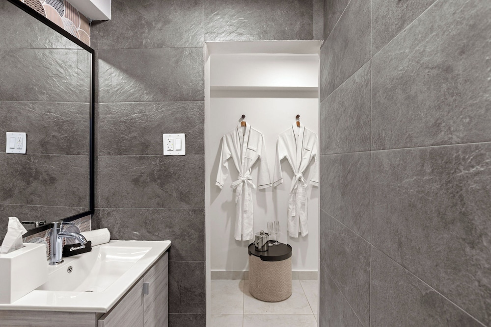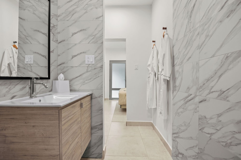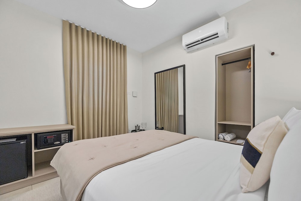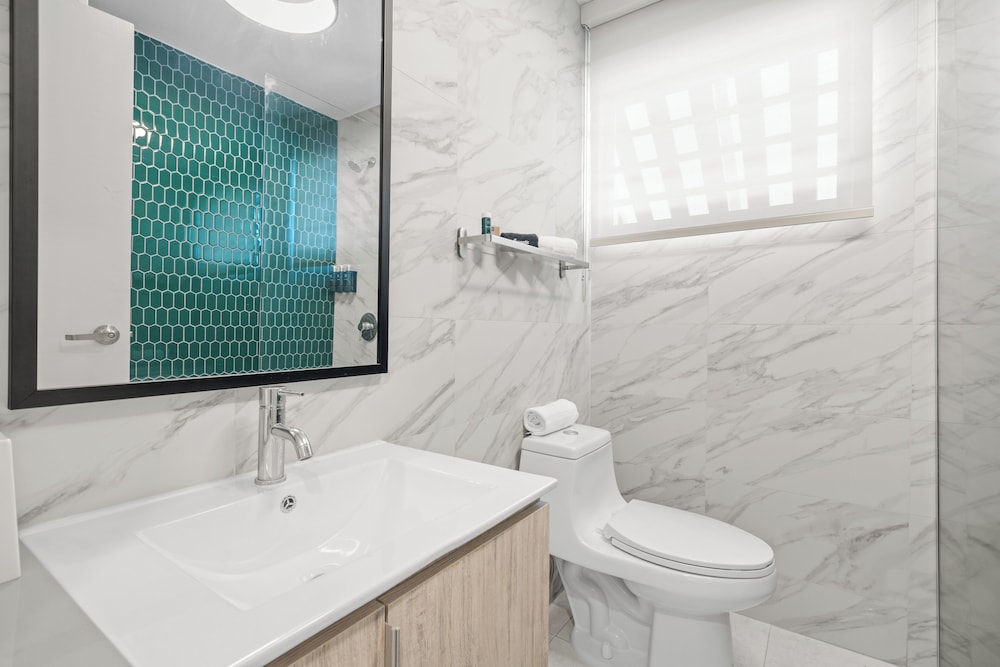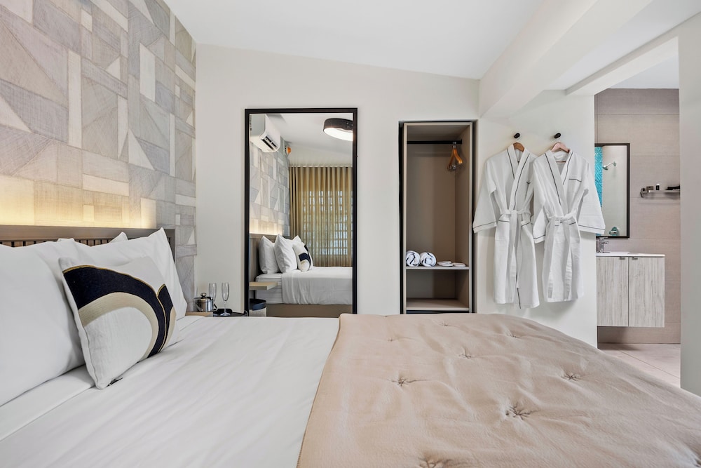 The property is very nice and modern. Amenities were nice like the pool, gym, patio furniture and bar. Staff was friendly and helpful with local recommendations. I would rate this place as 5/5 stars but the restroom set up in our room wasn’t ideal. There was no door to the shower or restroom so everything gets wet and stays wet given the climate of the area (hot and humid). The ac worked great but there was no ventilation to let out the moisture. The floor gets very slippery. Also, we stay for 5 nights and didn’t get our roomed cleaned. We kept putting the sign out on the door to get cleaning service while we were out for the day and nothing. When I asked about it, staff said they were short staffed and would get to it but they never did. The room next to us got cleaned everyday we were there so it didn’t make sense. That is why I can’t give it an excellent rating. Other than that, we enjoyed our stay.
