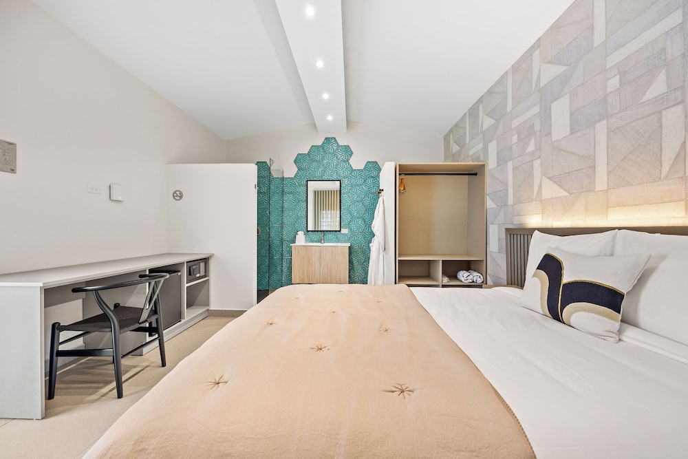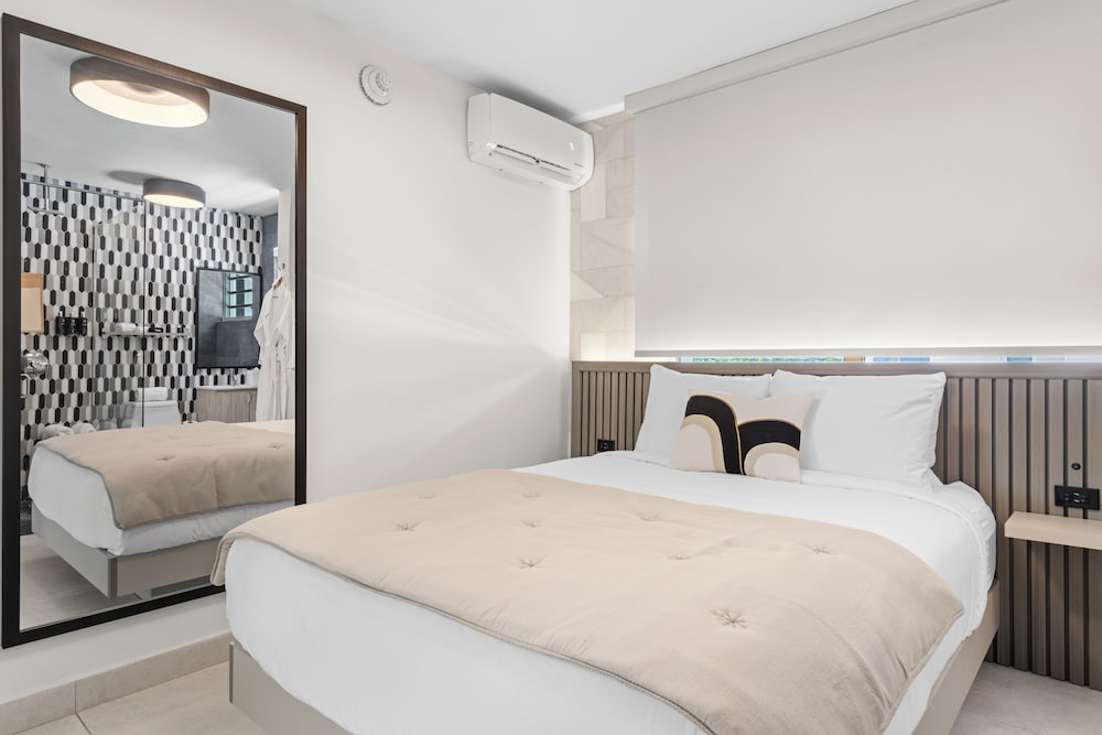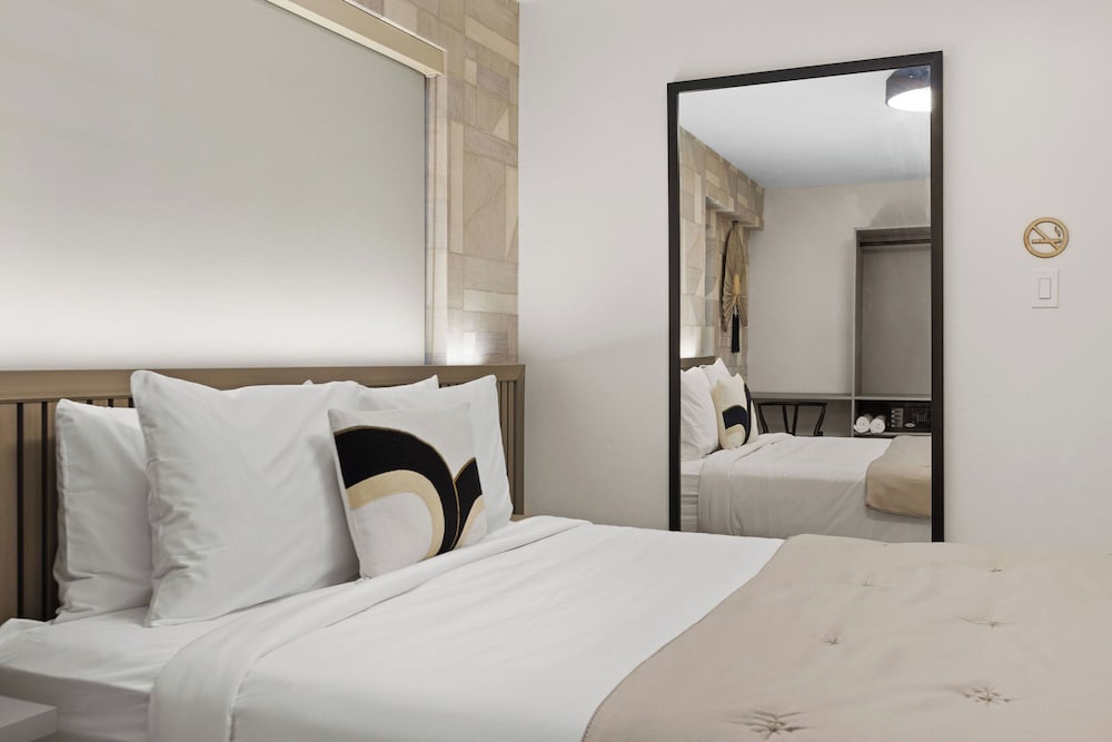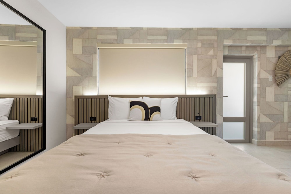 Modern feel. Small property. Attentive staff and they were all friendly. Oh my original room had a small issue and without me event seeing the problem, the woman that check me in on Tues the 15th @ 4pm( i forgot her name) long hair....upgraded my room. We really appreciated her taking matters into her hands and resolving it before it bacame an issue. WELL DONE. We'll be back.
