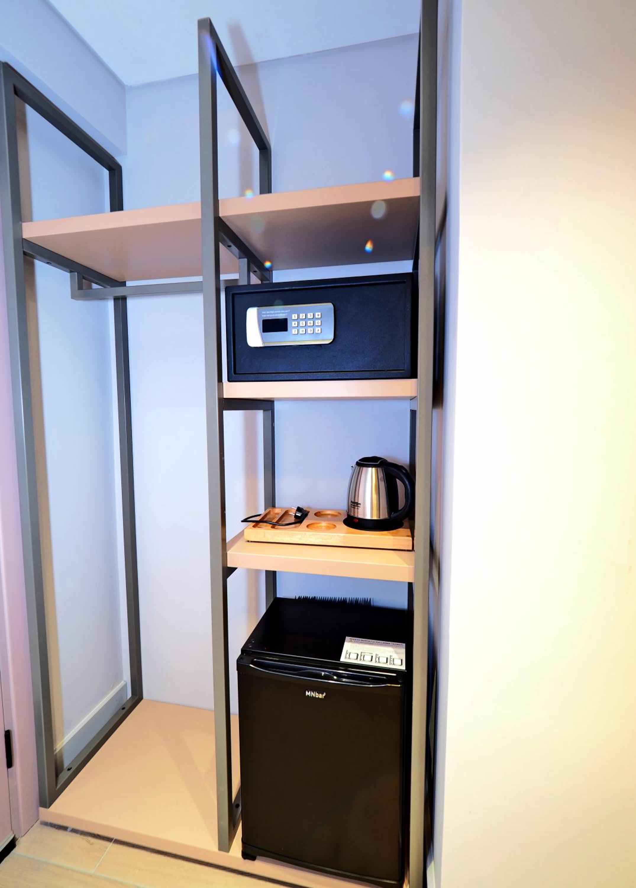 テレビ、エアコン、冷蔵庫、セーフティボックス、湯沸かし器、ドライヤーあります。(インスタントコーヒーは持参)