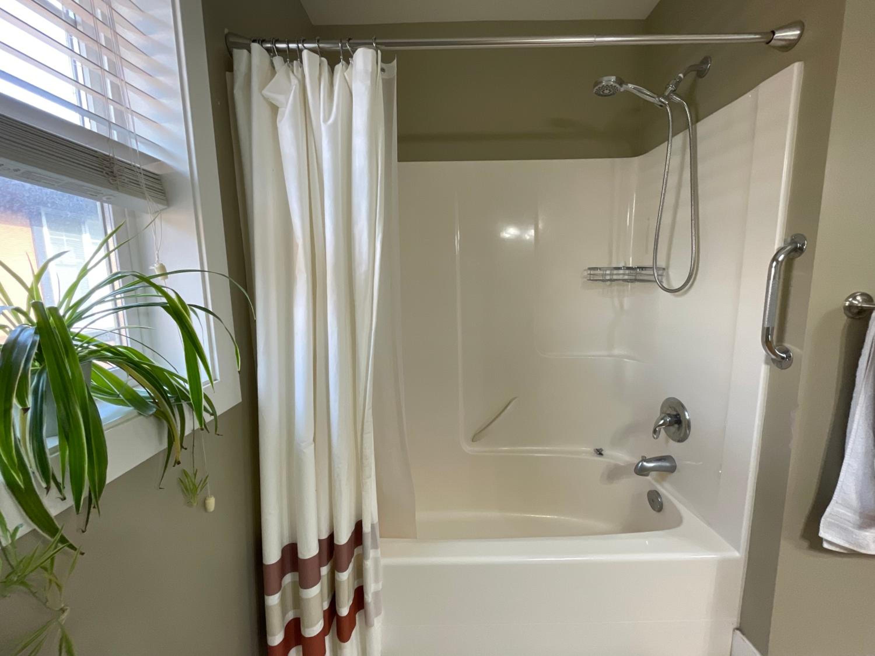 The room had all the facilities we needed for a short stay - fridge, kettle, microwave etc. The bed was comfortable. The bathroom had a powerful shower.