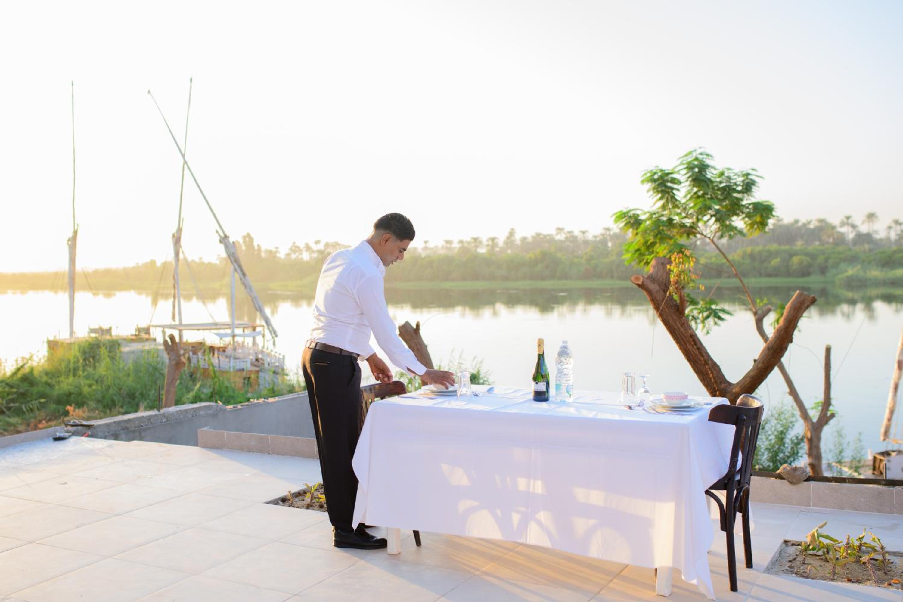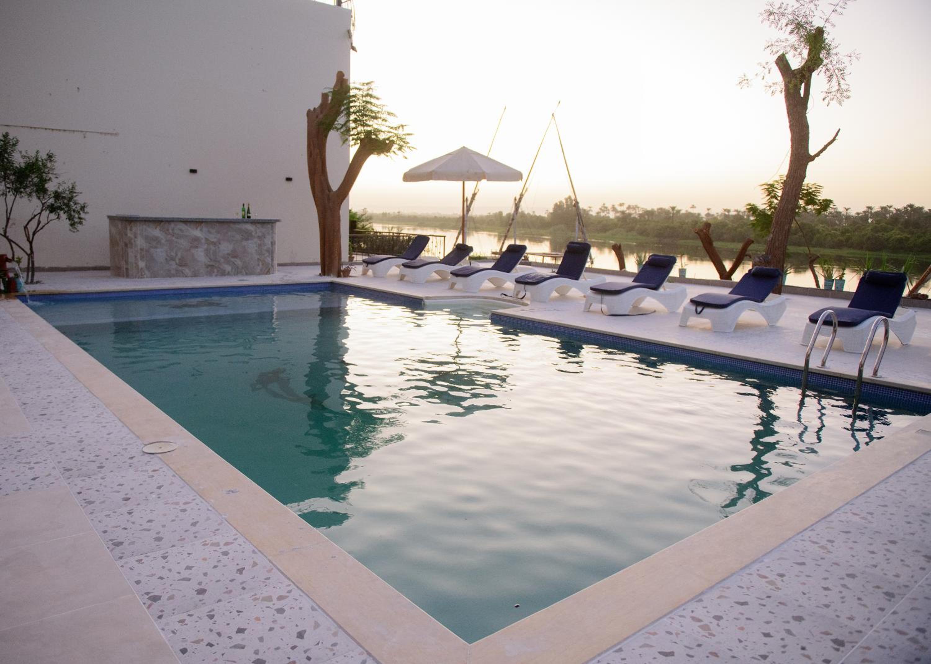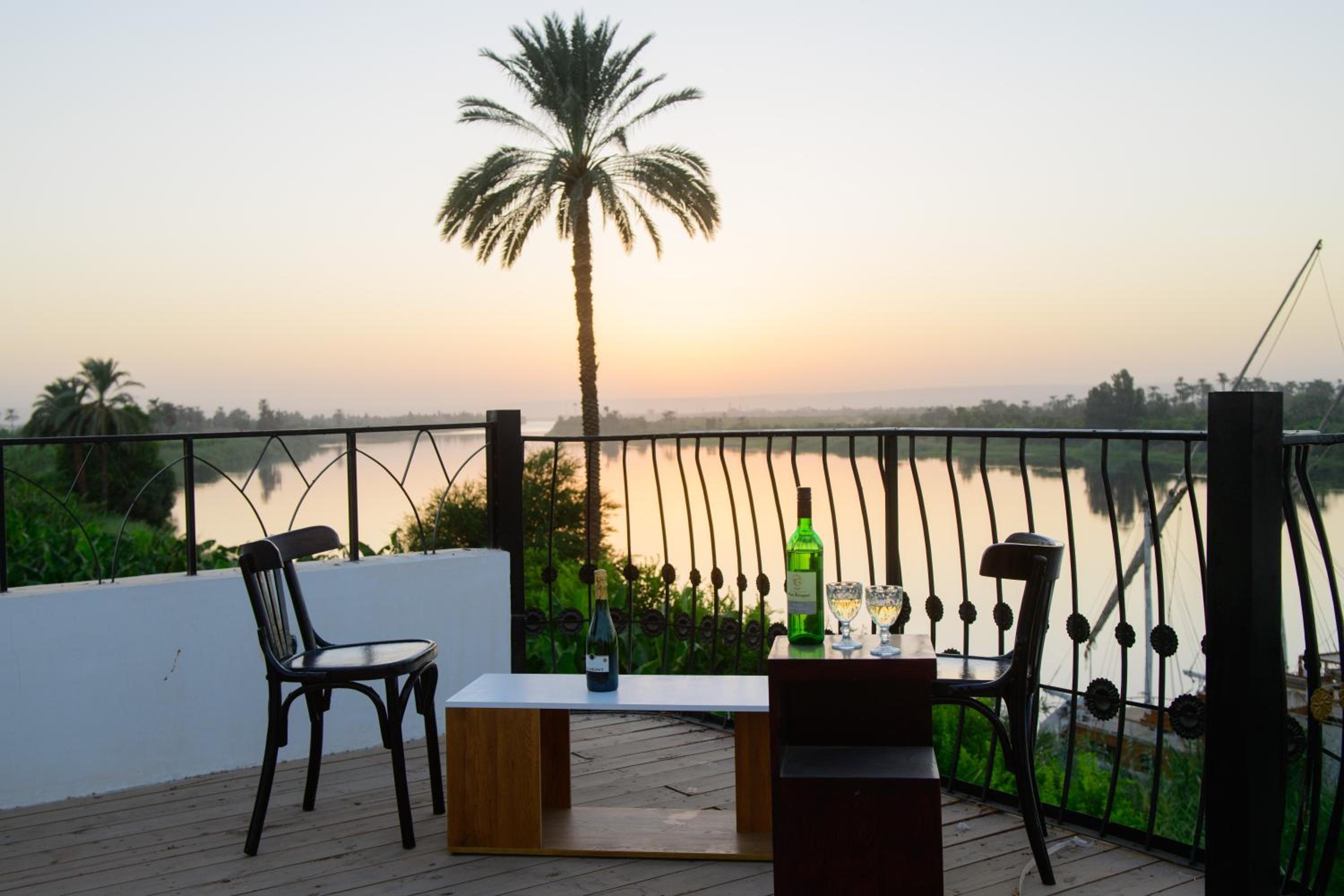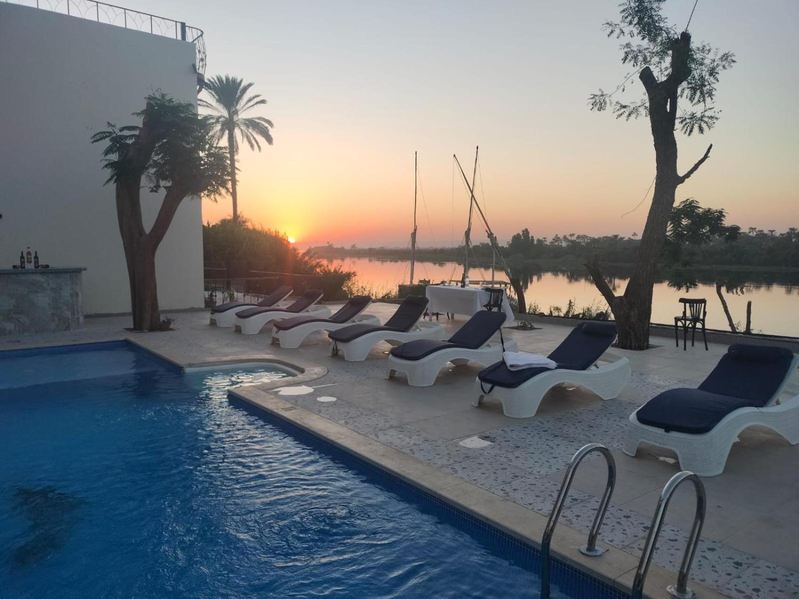 Nur, der Manager, und sein Team waren sehr freundlich und hilfsbereit. Der Manager hat uns geholfen unsere Tagestouren zu organisieren. Das Frühstück war sehr gut, es gab auch herrliche frisch gemachte Omeletts. Die Zimmer waren großzügig und sauber und die Lage (15 km südlich von Luxor-Zentrum) war perfekt. Die Aussicht auf den Nil war traumhaft. Am Abend kann man sich auf der Terrasse wunderbar entspannen. Diese Sonnenuntergänge am Wasser sind unvergesslich.