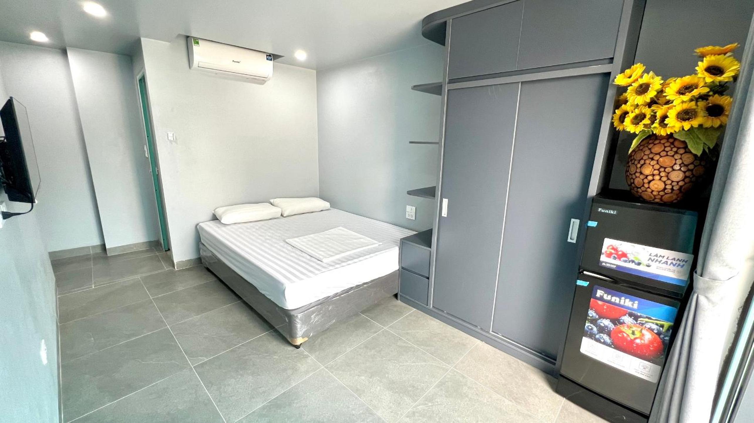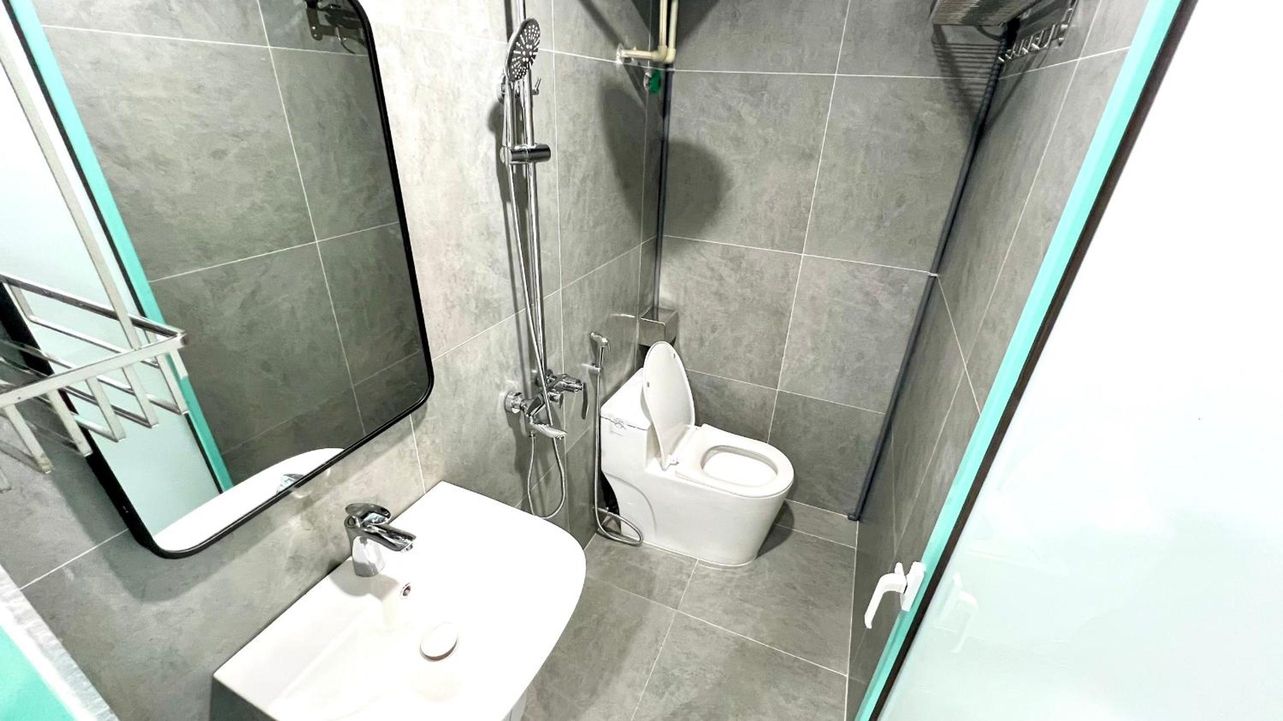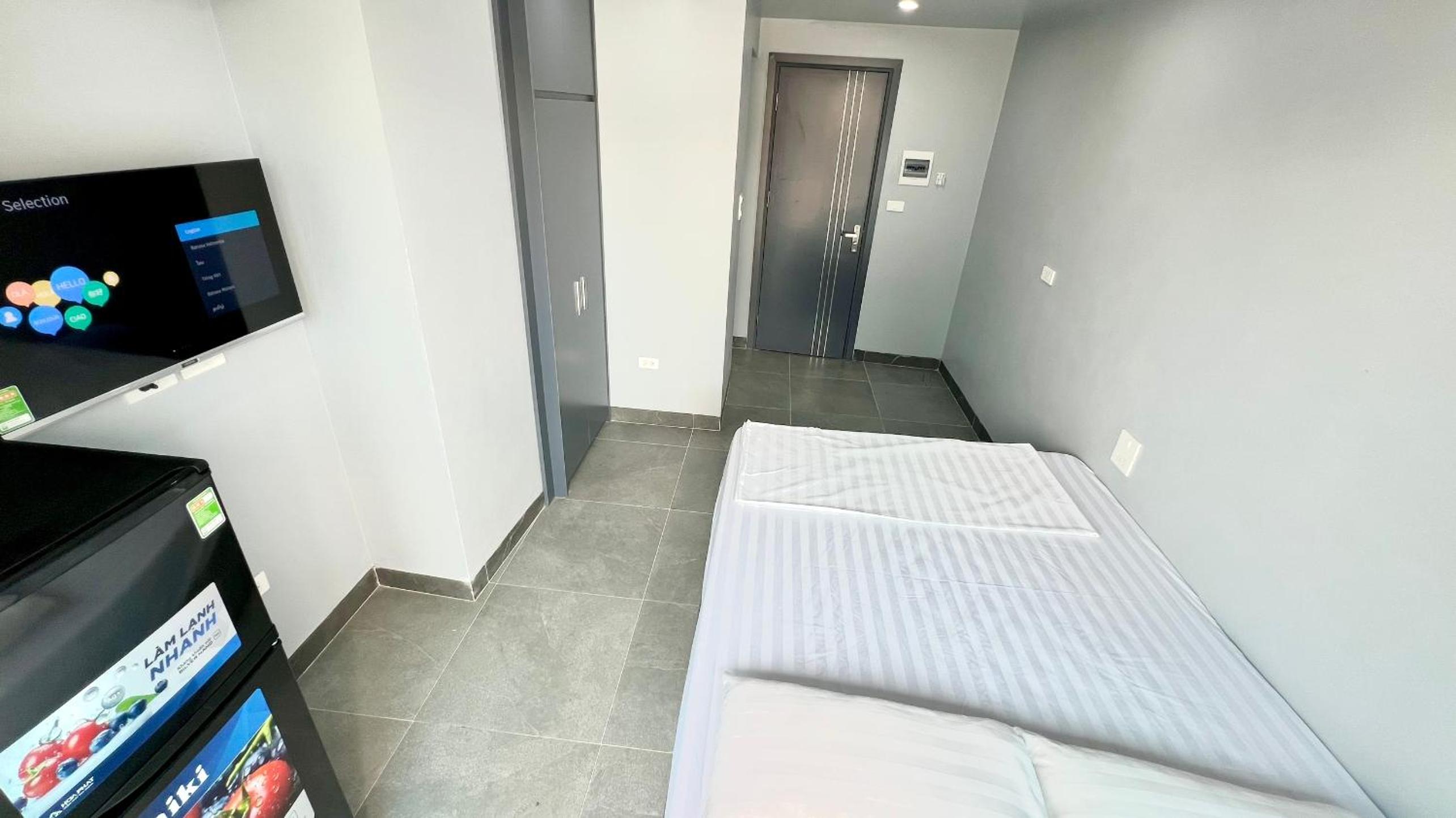 Phòng rộng, tiện nghi. Có tivi, 2 ghế đơn và giường rộng. Phòng tắm thiết kế hiện đại, sạch sẽ. Dễ dàng checkin.