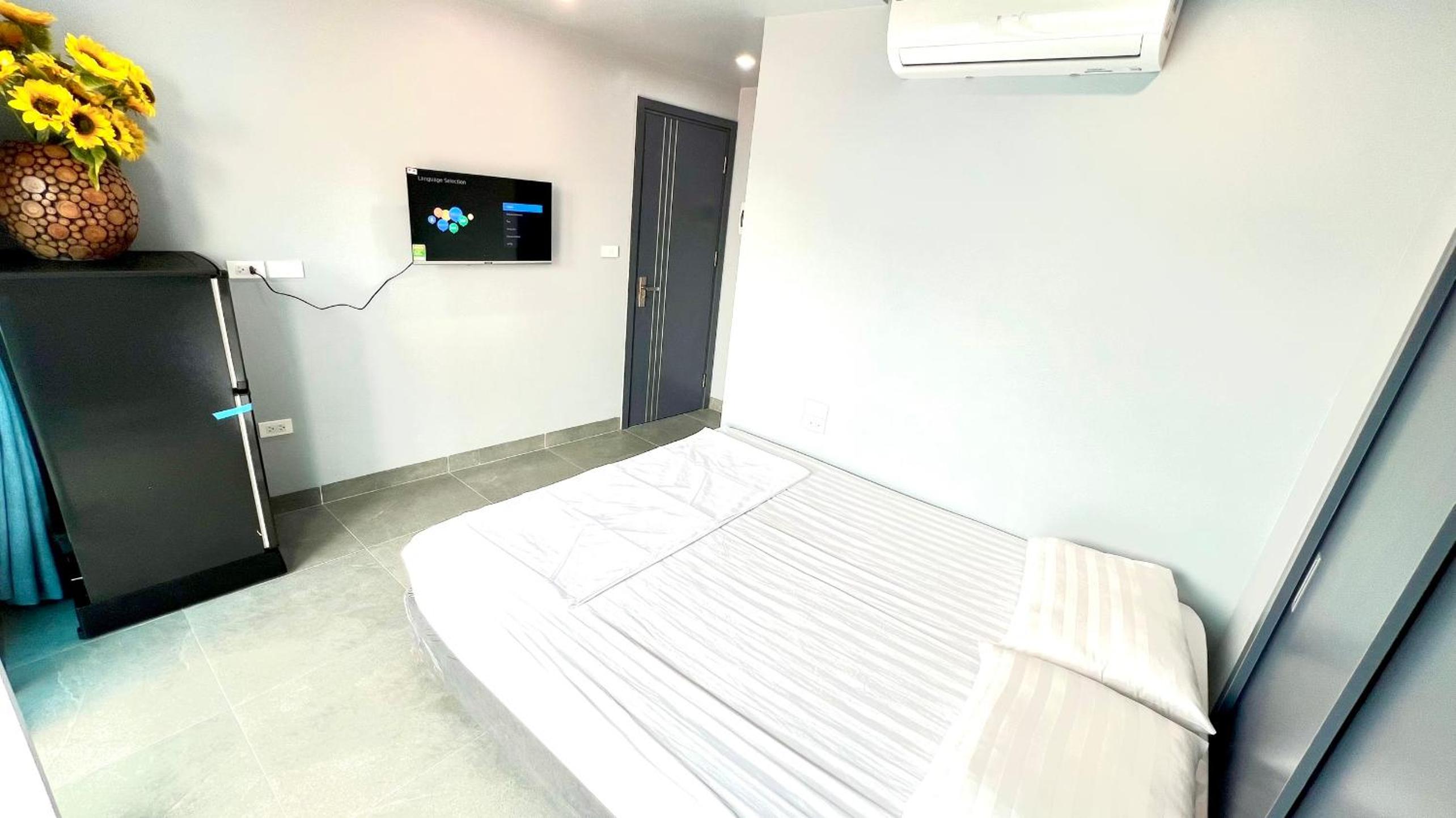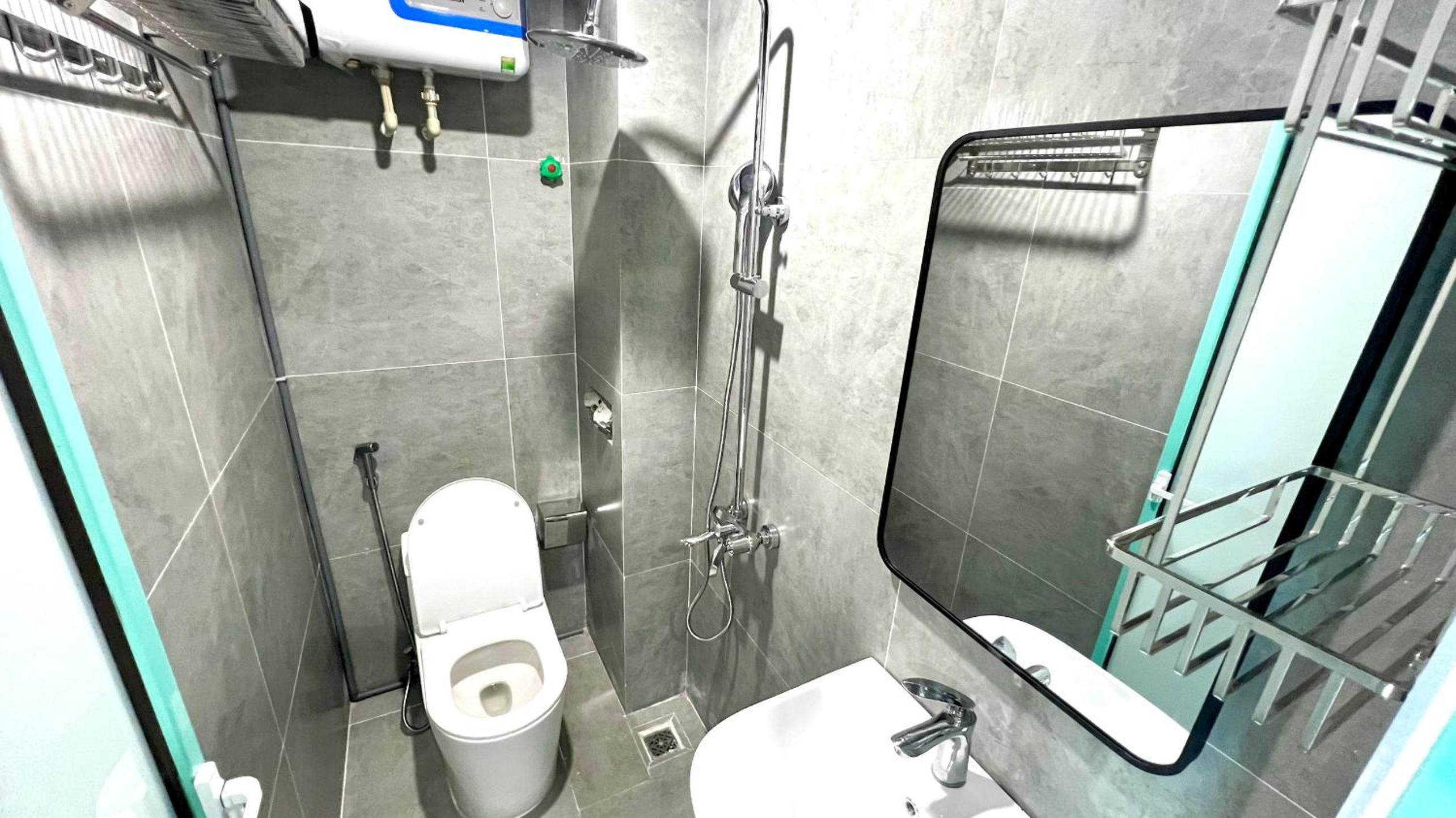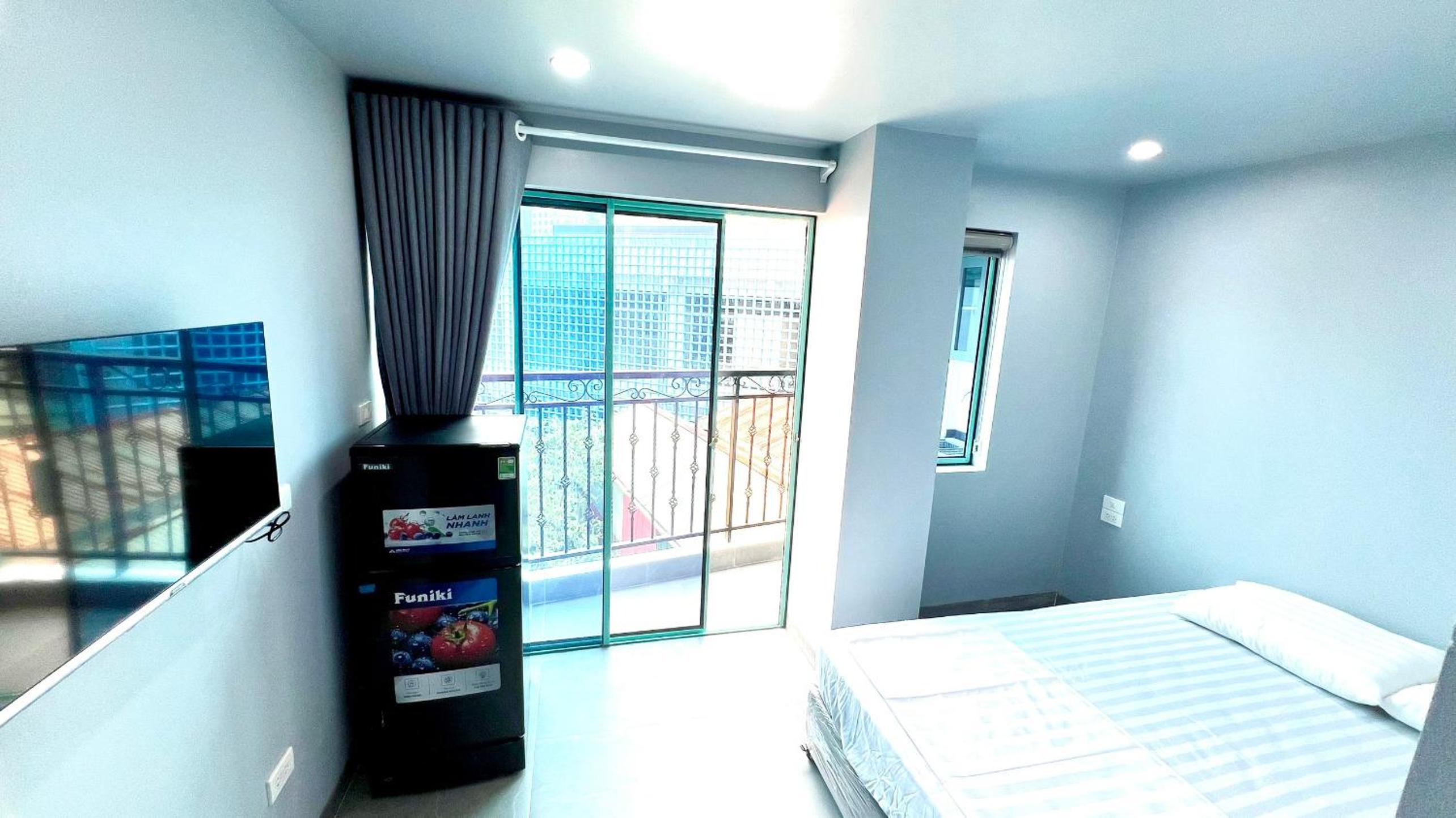 Phòng rộng, tiện nghi. Có tivi, 2 ghế đơn và giường rộng. Phòng tắm thiết kế hiện đại, sạch sẽ. Dễ dàng checkin.