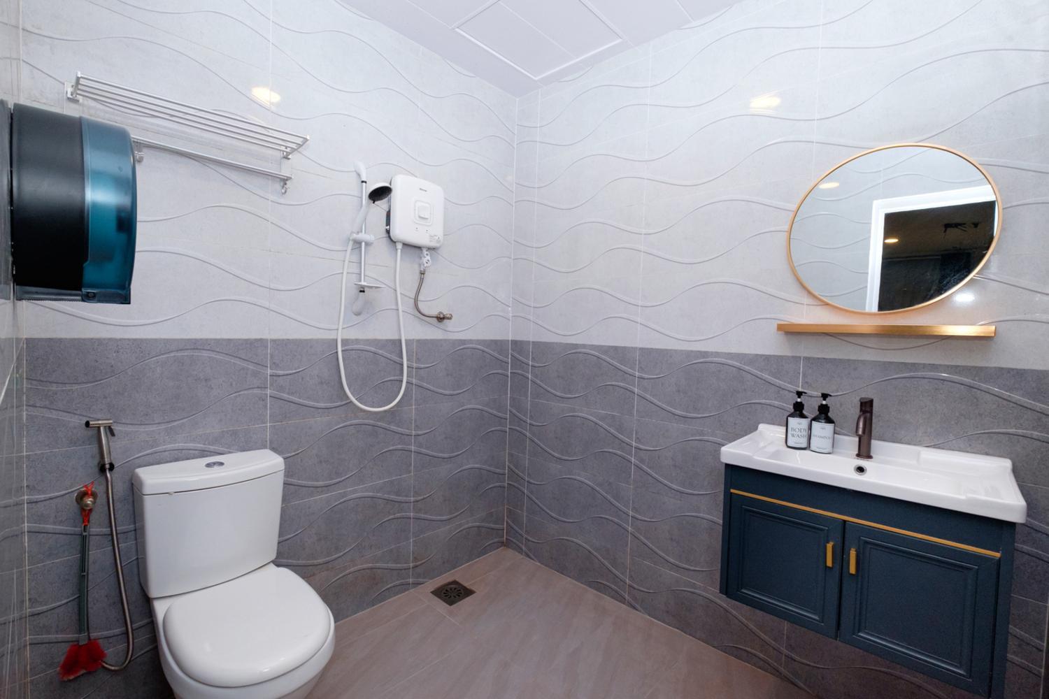 Shower panel broken, 1 door bathroom cupboard broken, tv not function well only can watch youtube but not netflix, tv remove not function well (most of the buttons cannot be pressed).