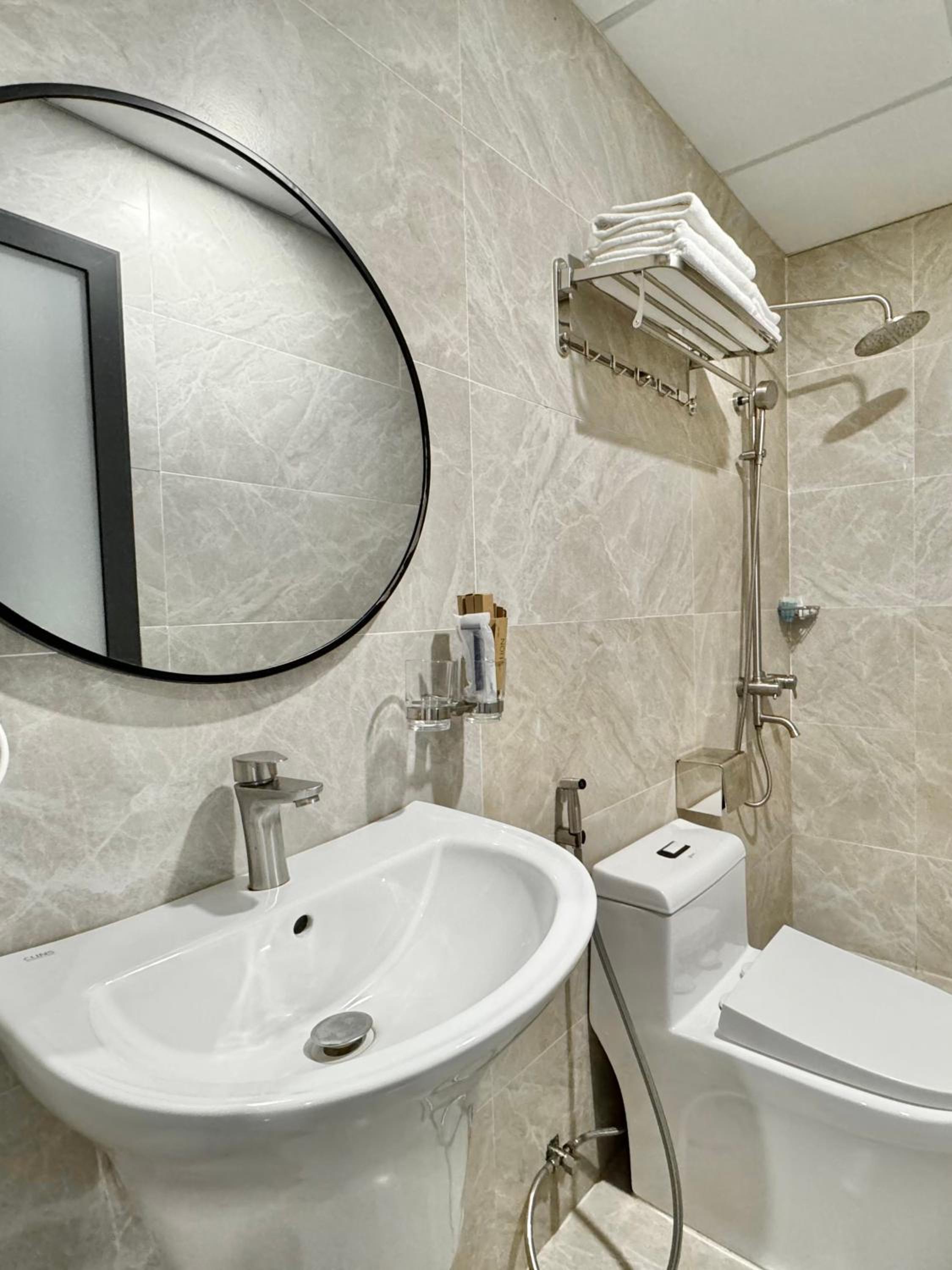 Hôtel récent, les chambres sont propres et (presque) bien équipées... (Il y a un bureau mais pas une chaise que j'ai dû pleurer via Google translator en vietnamien ; même en mimant, rien n'y faisait).
