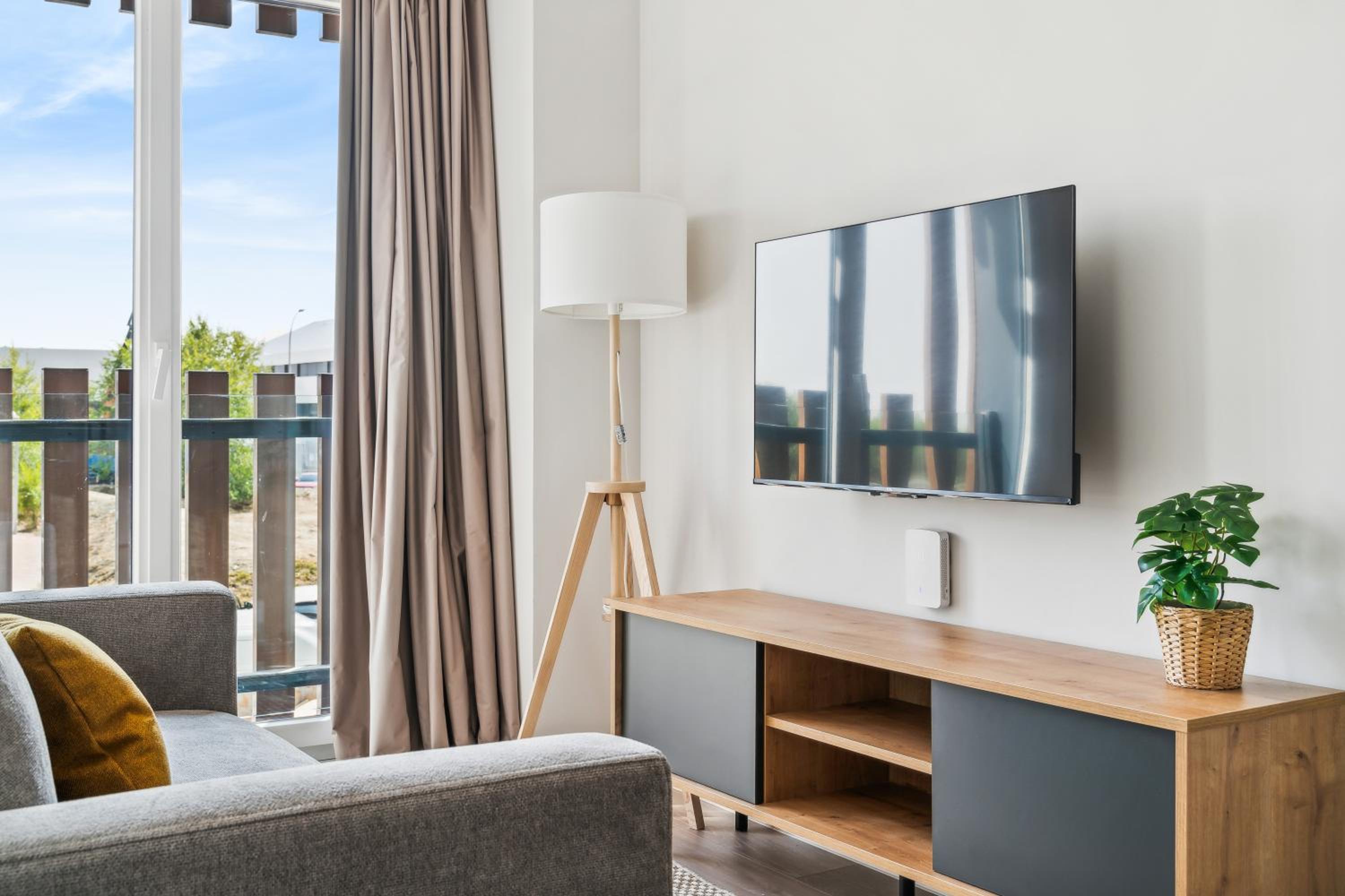 The apartment felt a bit small for two people, even though I had booked a one-bedroom unit. The kitchen was poorly equipped; in particular, the absence of a kettle and a toaster was inconvenient. Also, there were no blackout curtains in the living area.