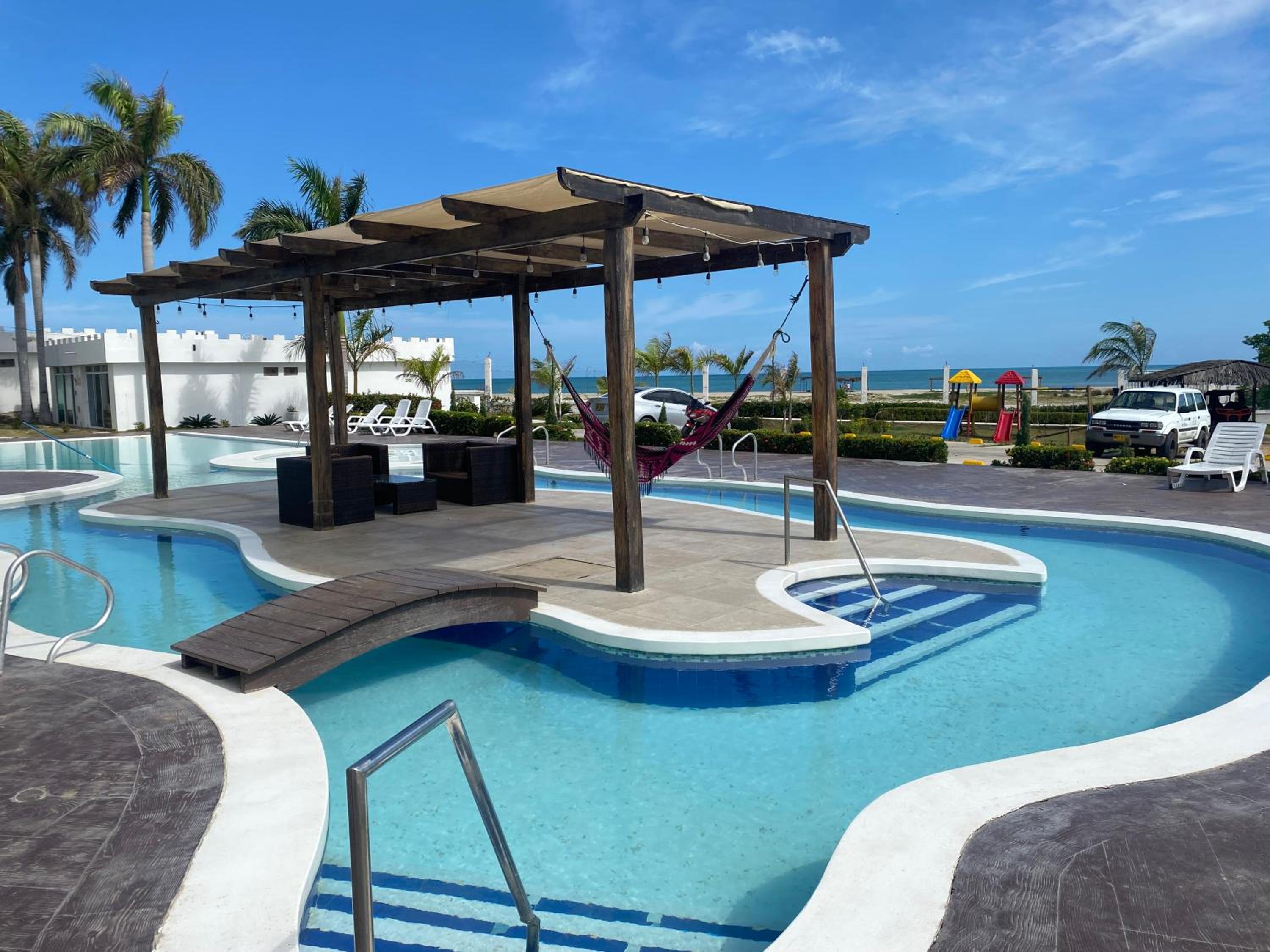 The pool needs alot of maintenance, not clean at all, beach acces was good but there were no place to sit once you went to it. No umbrellas. 👎 With a car takes a while for someone to open the gate, need a camera to see when vehicles are ready to enter or exit,