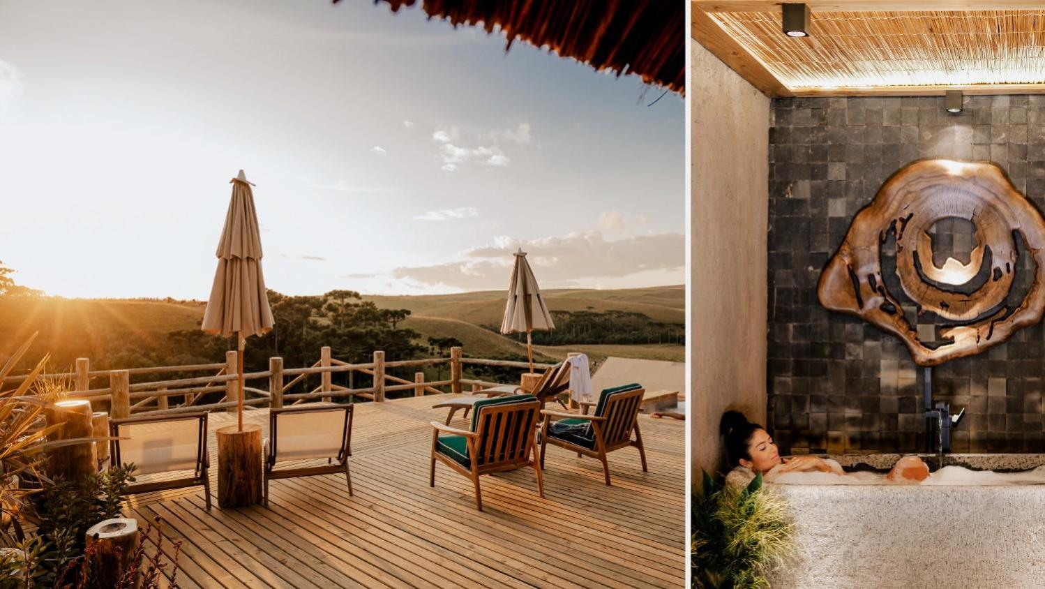 Experience the charm of rustic luxury in our uniquely designed heated chalets. Admire the timber furniture and relax in chalets featuring a spa bath, DVD player, and a private balcony overlooking the breathtaking Matas de Araucárias woods.