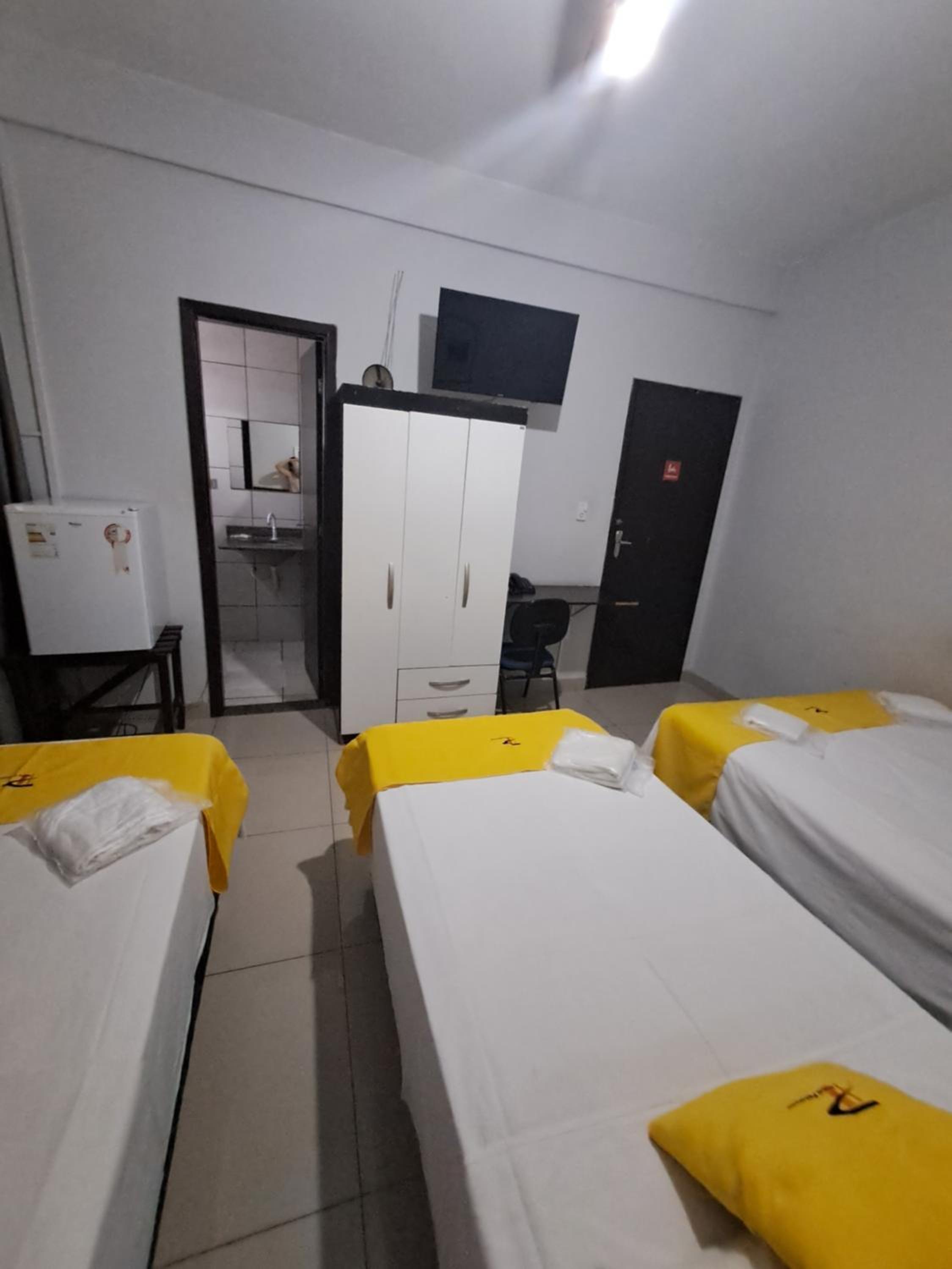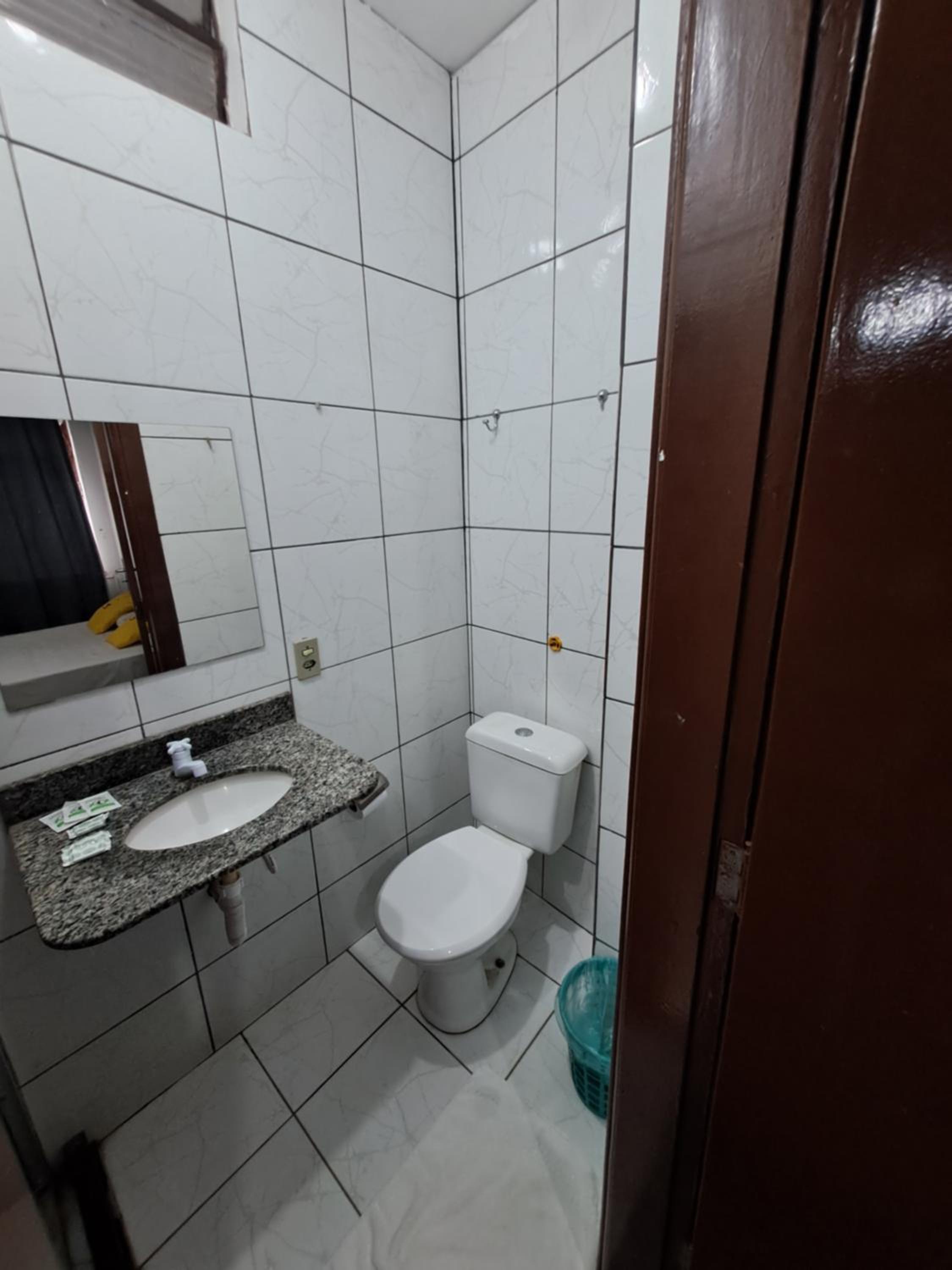 Quarto horroroso, cheio de infiltração, box da cama encardido, buraco no teto do banheiro pingando o tempo todo, piso encardido, sem a porta do box, porta do banheiro empenada.