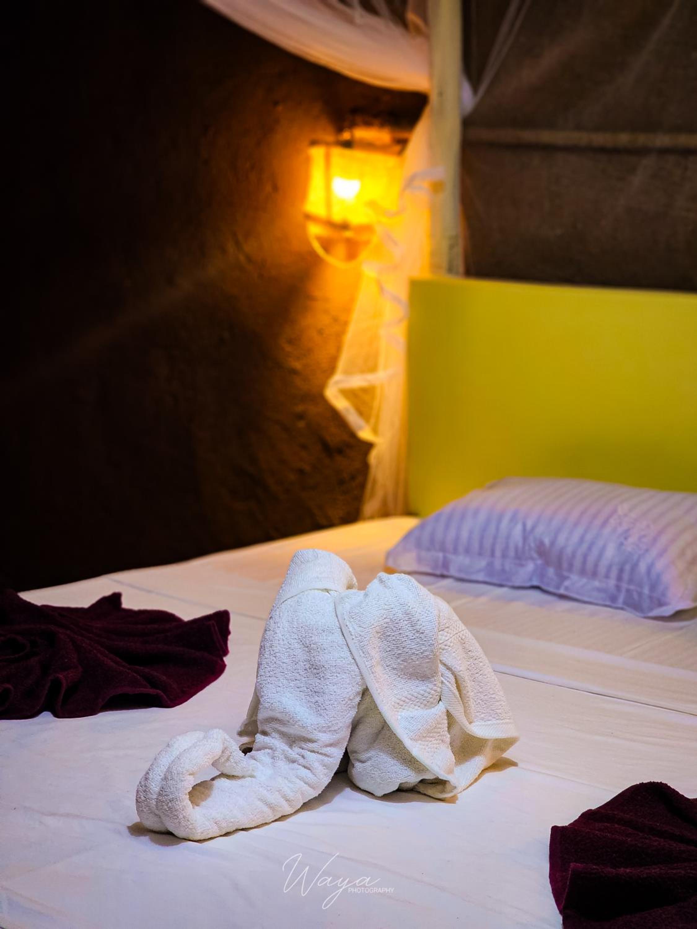 It was a beautiful place, quite quiet but very modest and everything you need, comfortable bed with mosquito net, pillows and sheet, desk with wobbly bench, kettle, tea, coffee, mugs, towels, hangers, laundry horse, warm shower, toilet roll, bins. We relaxed on the outside chairs and had a really nice breakfast of brown sugar coconut rotis and fruit, an amazing dinner of curry with vegetables and fruit for dessert and got greeted by a refreshing welcome juice when we arrived. The owner himself is very quiet and keeps to himself mostly but answers quickly to your requests and is a nice person, even got up at 5:30 to give us breakfast to take to our safari.