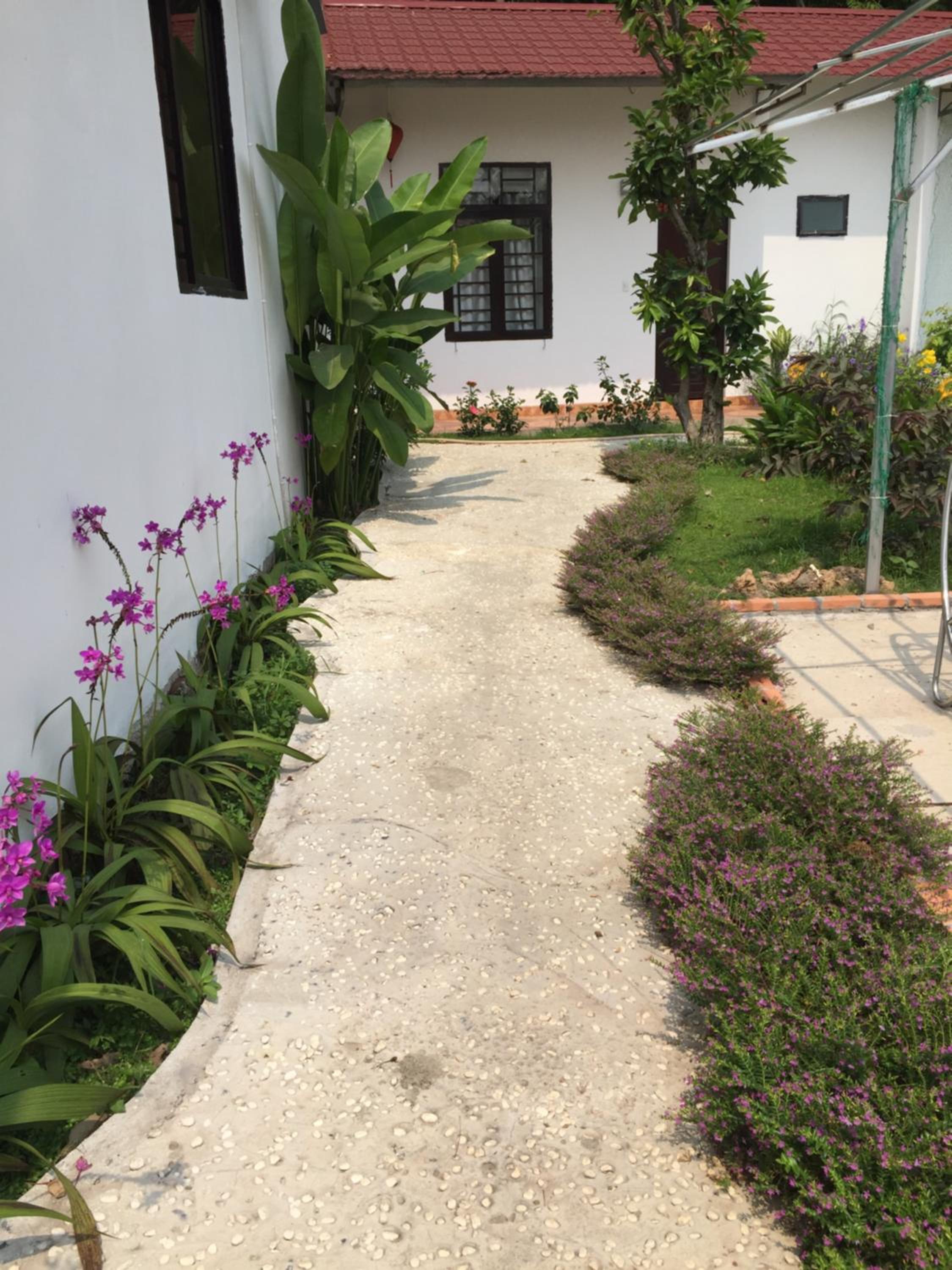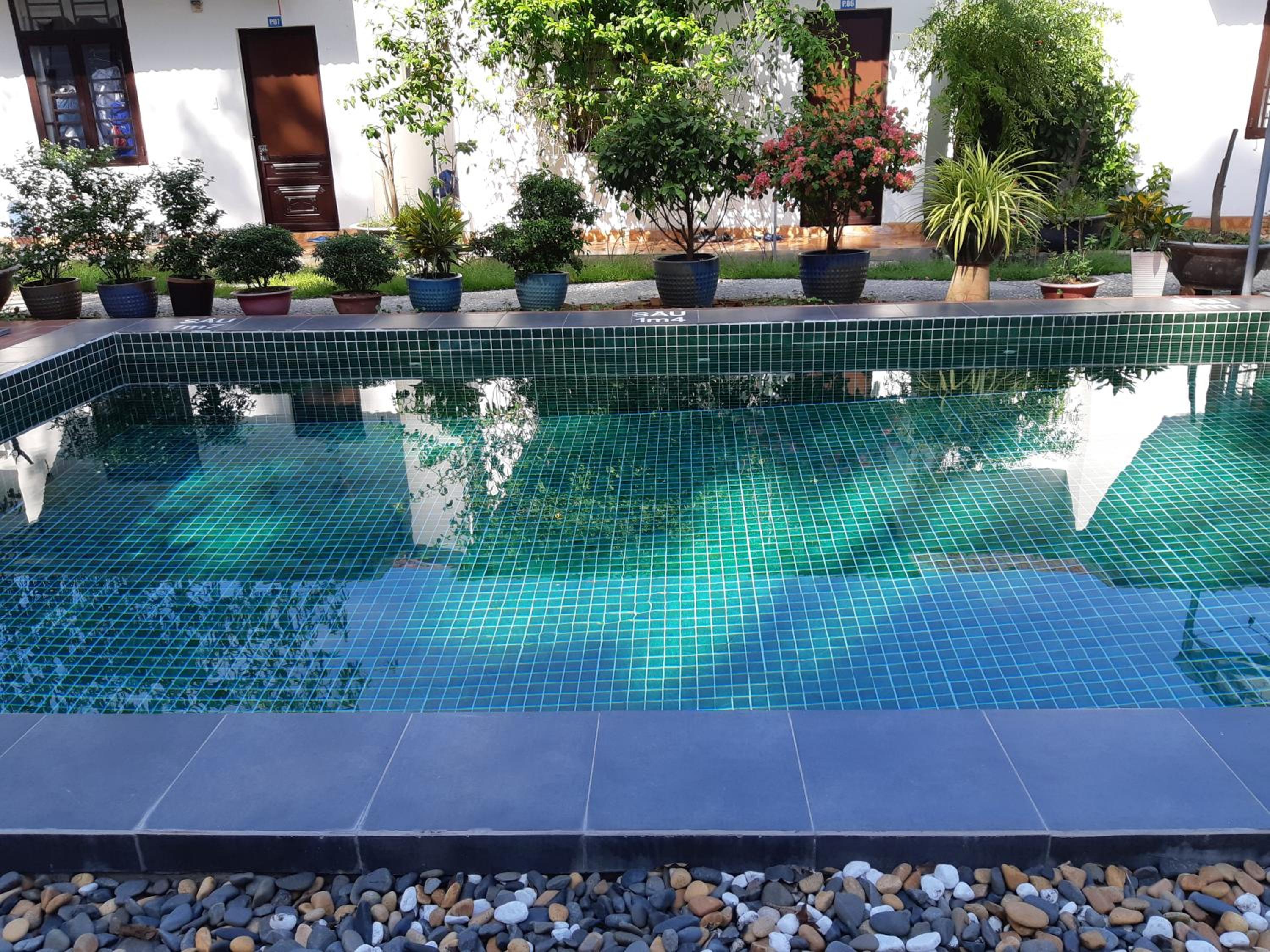 A small cozy place with bungalows and swimming pool. A lot of plants and flowers. Quiet surrounding. Big room. Close to HCMC. Great for short escape from busy city.