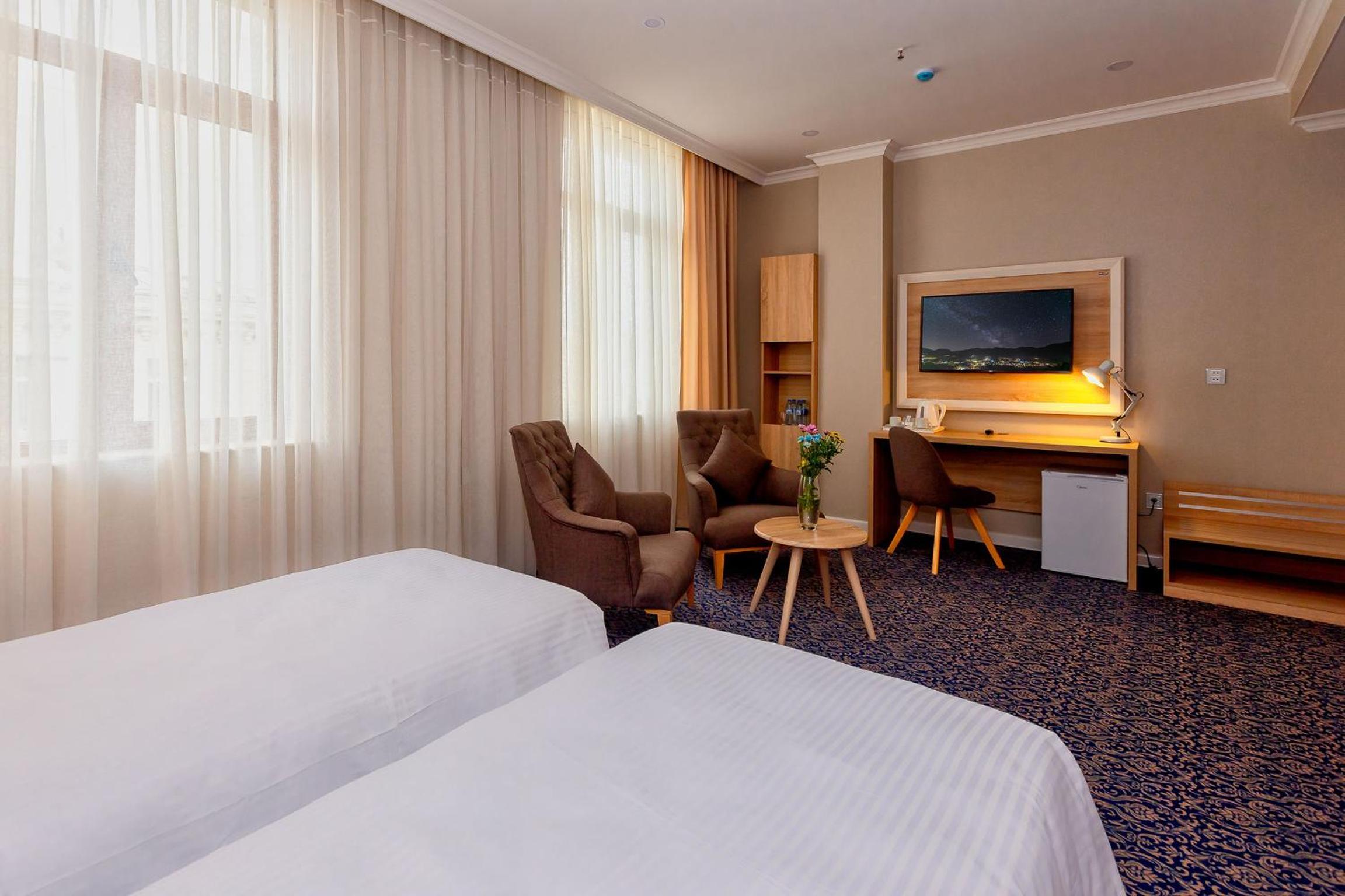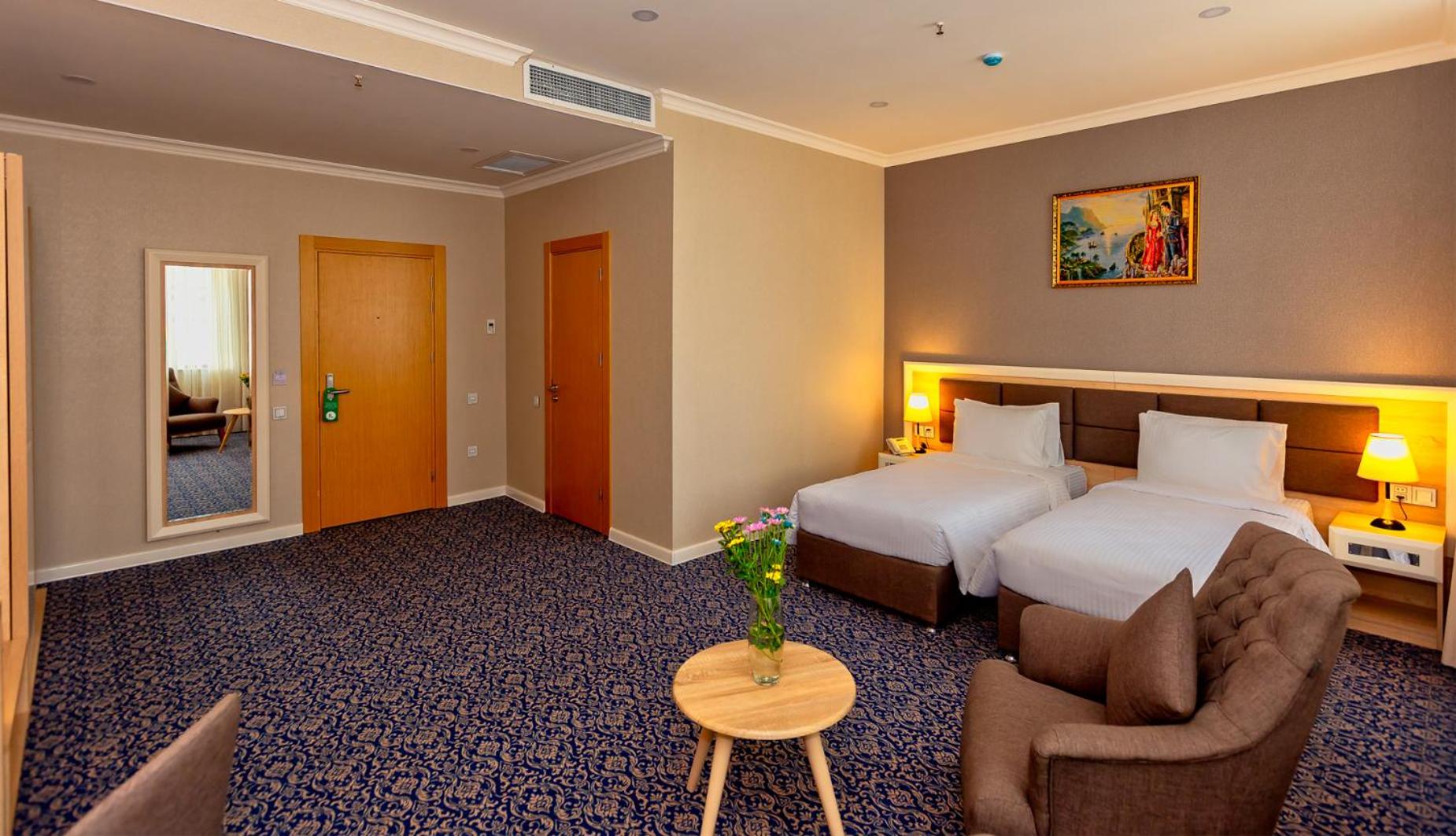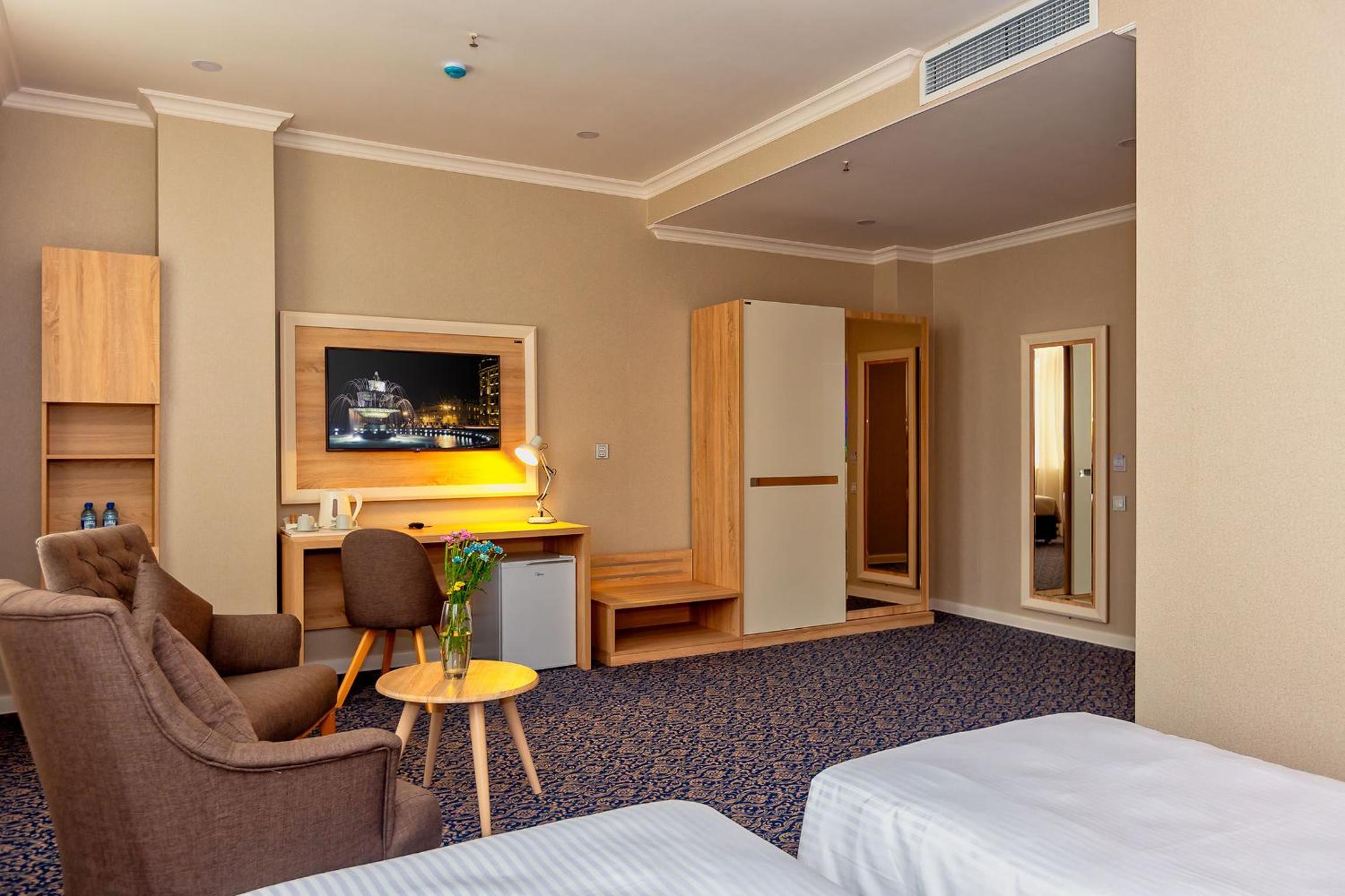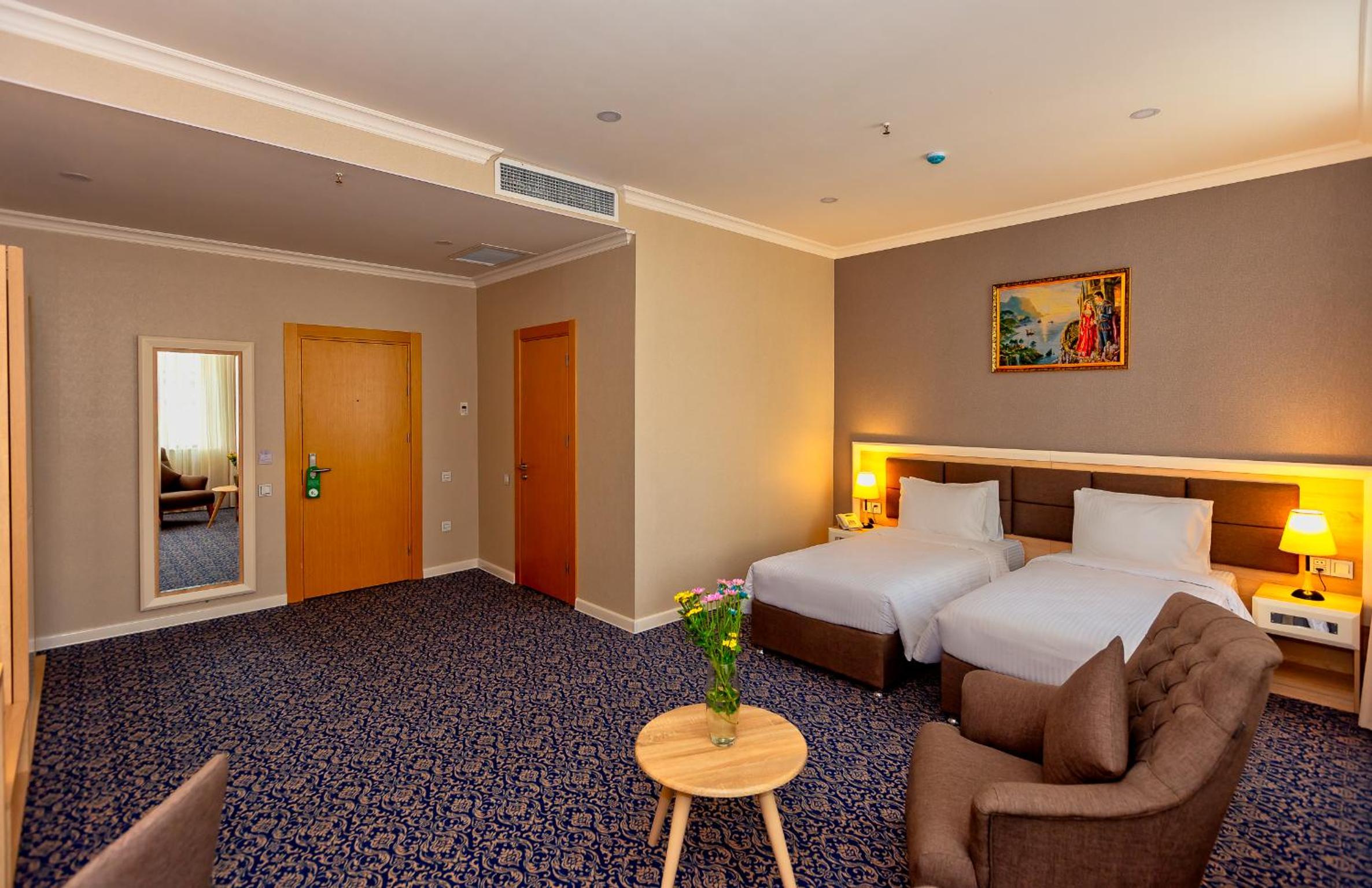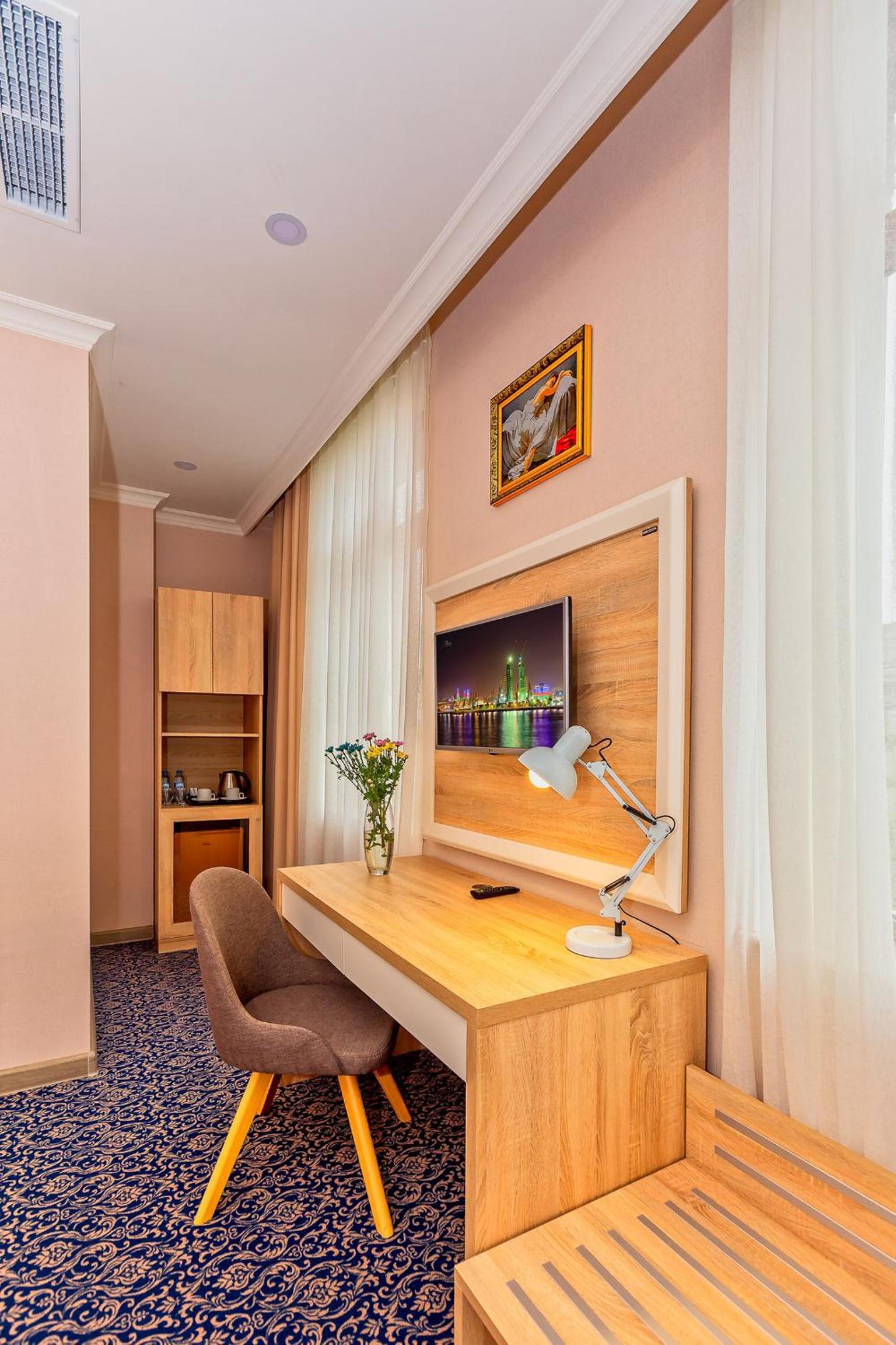 Központi helyen található nagyon kényelmes szállás és tiszta szállás. Metrótól pár perc és a Hayder Alijev Centertől is kényelmes sétatávolságra van. A személyzet nagyon kedves és segítőkész, recepciós hölgy nagyon felkészült és kedves volt. Továbbá jól felszerelt étterme van, minden felmerülő étkezési igényre fel vannak készülve. Az éttermi személyzet nagyon figyelmes és segítőkész volt, európai szemmel igazán szokatlan volt ez a fokú vendégszeretet. A tisztaság első rangú, a higiénia nagyon komolyan volt véve. Igazán ritka, de még meg is kérdezték tőlünk, hogy meg vagyunk-e elégedve és a takarítással és szükségünk van-e még valamire. A szoba tágas és felszerelt, kávé, tea, palackozott ásványvíz mindig ingyenes elérhető volt a szobában. Nem volt lehetőségünk sok időt az országban tölteni, legközelebbi látogatásunk során biztosan ide jövünk majd.