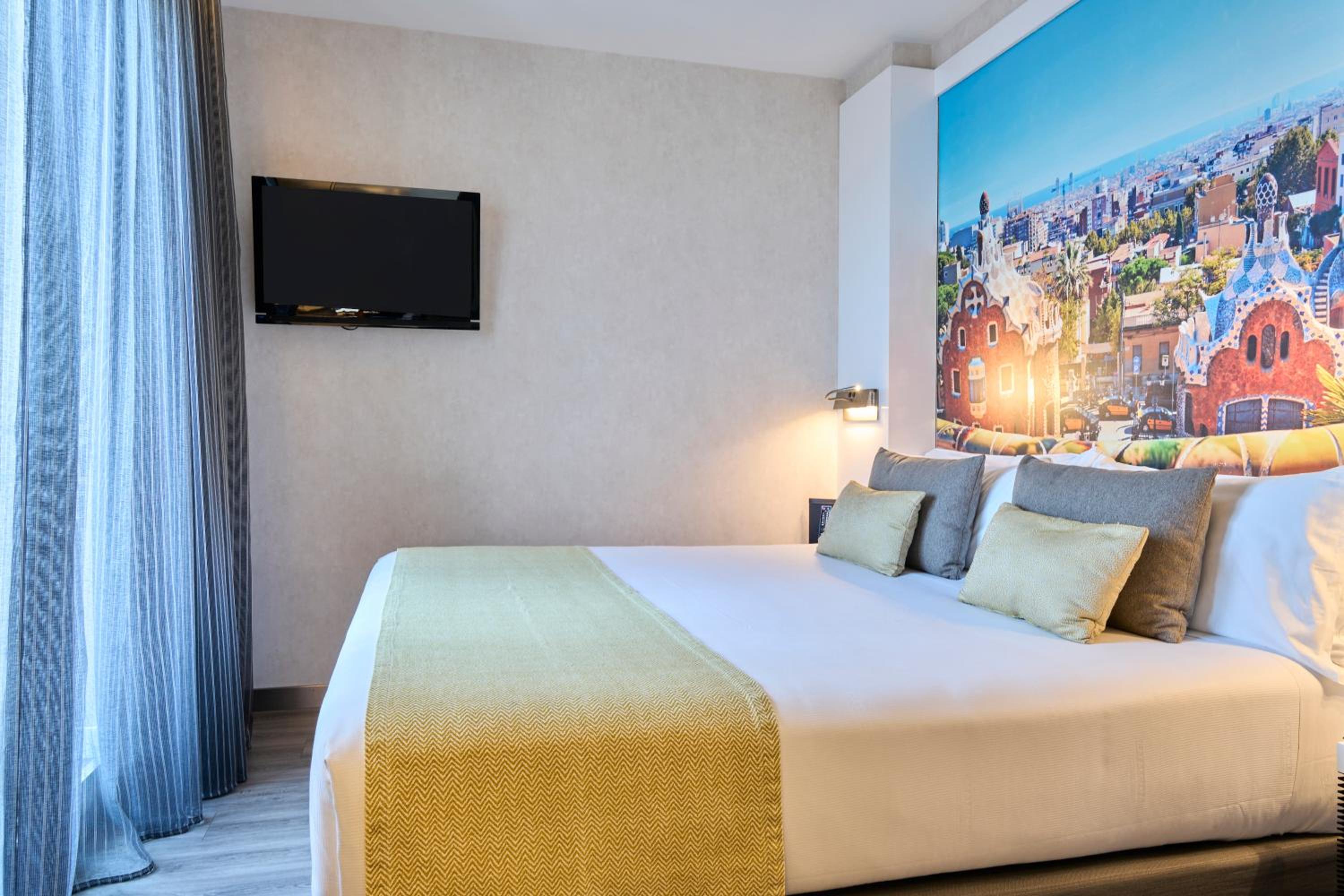 Catalonia Gran Via BCN offers modern rooms themed around different cities and air travel, equipped with flat-screen TVs and iPod docking stations for a comfortable stay.